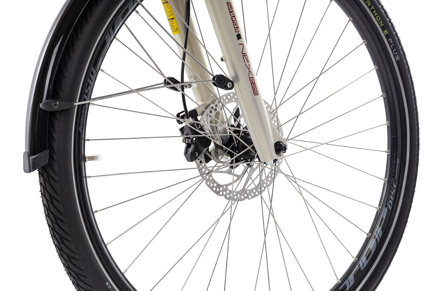 Aber auch der Komfort kommt bei diesem Modell der 2R Manufaktur nicht zu kurz: Die SR Suntour Federgabel hilft auf unebenen Strecken die Handgelenke zu entlasten., Komfortabel, robust, leistungsstark und dazu mit einem exzellenten Preis-/Leistungsverhältnis: Das 2R Manufaktur ELX 5., Auch der stabile, verstellbare Satori Lenkervorbau und die Schwalbe Energizer Plus Bereifung lassen dich lange Ausflüge mit dem ELX 5 angenehm erleben., Ein besonders leistungsstarkes City E-Bike für den Einsatz bei starkem Gefälle: Das 2R Manufaktur ELX 5 mit Bosch Performance Line Motor., Die 2R Manufaktur setzt bei ihrem ELX 5 auf ein Bosch Antriebspaket welches nicht nur in der Stadt mit besonders viel Leistung aufwartet., Bei der kraftvollen Motorunterstützung und bei einem Einsatz in hügeligeren Gegenden, ist diese standfeste Bremse eine gute Wahl., Um den leistungsstarken Bosch Motor in Kombination mit einer langlebigen Nabenschaltung verwenden zu