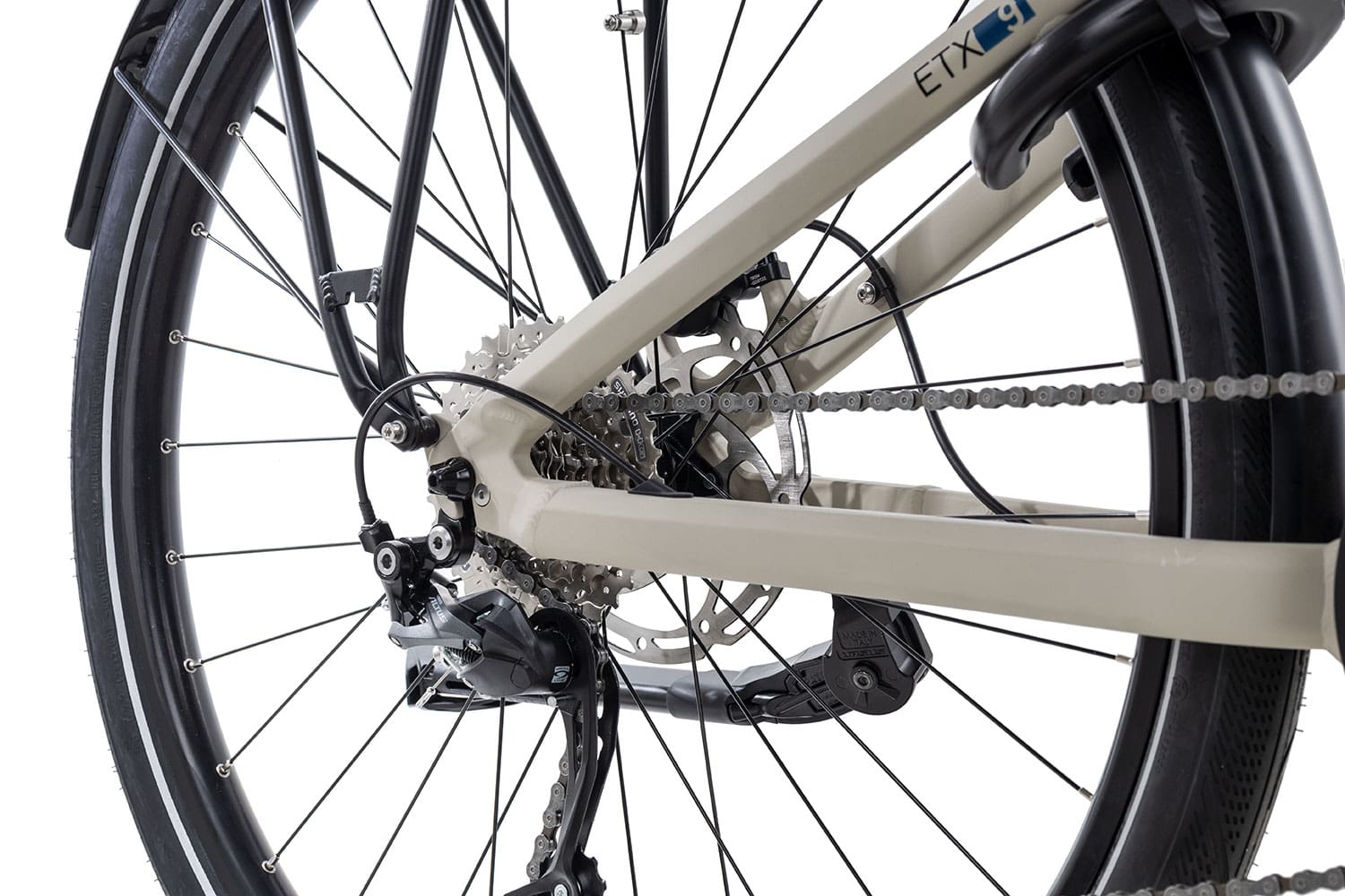 Beim 2R Manufaktur ETX 9 bekommst du eine angenehme Schaltleistung zu einem erschwinglichen Preis., Das große Intuvia Tourendisplay lässt sich dazu jederzeit gut ablesen., Die Shimano Altus Schaltung des ETX 9 E-Trekkingbikes liefert dir 9 wählbare Gänge, die sportlich per Shimano Altus Finger-Schalthebel durchgeschaltet werden., Der große 625 Wh Akku ist schön im Rahmen integriert und liefert jede Menge Energie für den Bosch Performance Line Motor., Die 80 mm RST Blaze Federgabel und die 50 mm breite Continental Bereifung ermöglichen dir zusammen mit diesem leistungsstarken Bosch E-Paket auch Touren mit Schotter- und Feldweg-Etappen., Und wenn du das ETX 9 E-Trekkingbike doch einmal verzögern willst, greifen die hydraulischen Tektro Scheibenbremsen kraftvoll und leicht dosierbar zu., Das praktikable 2R Manufaktur ETX 9 Trekking-E-Bike ermöglicht dir mit seinem ausgewogenen Bosch Antriebssystem besonders hohe, elektrisch unterstützte