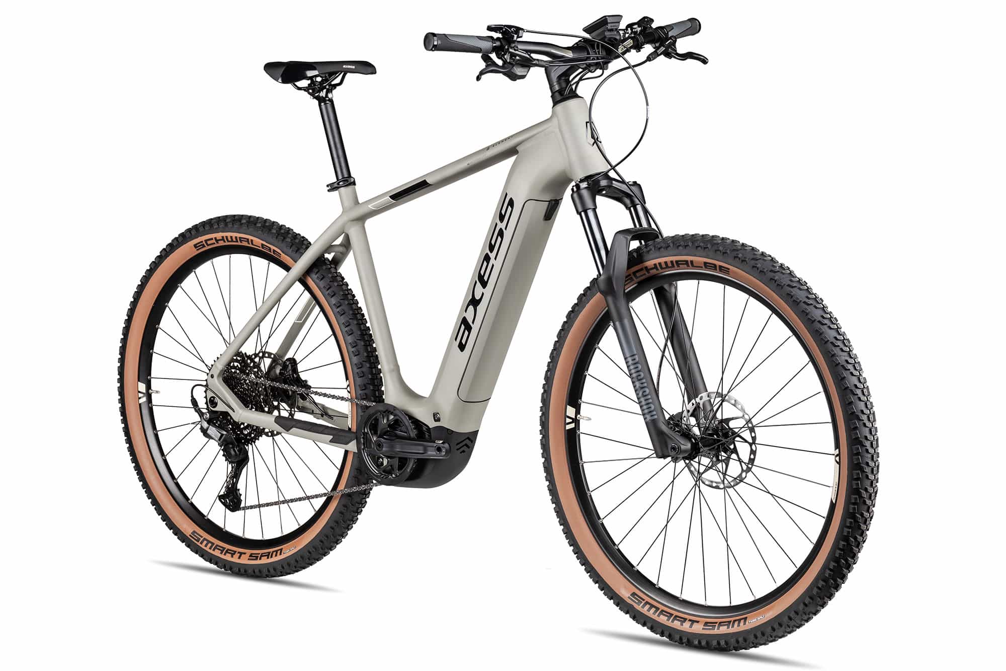 Und das zu einem top Preis-/Leistungsverhältnis!, Zusammen mit dem großen 800 Wh Akku und dem konnektiven Kiox 300 Farbdisplay entsteht ein smartes, dynamisches Antriebssystem, das effiziente Energieübertragung, große Reichweite und eine intuitive Bedienung bietet., Der wertige Shimano Cues 1×11 Antrieb garantiert präzises Schalten und hohe Haltbarkeit, während die kräftigen Shimano Scheibenbremsen für sichere Verzögerung in jeder Situation bereit sind., Mit seiner robusten Bauweise, moderner Bosch-Technologie und einer insgesamt ausgewogenen, wertigen Komponentenwahl präsentiert sich das Axess Element als klasse E-Mountainbike für Touren, Trails und Alltag., Das Axess Element E-Hardtail überzeugt als vielseitiges E-Mountainbike mit moderner Technik, sowie mit robuster und durchdachter Ausstattung., Dank remote-lockout, kannst du die Dämpfung der Gabel ganz bequem vom Lenker aus feststellen., Für Komfort und Kontrolle sorgen die