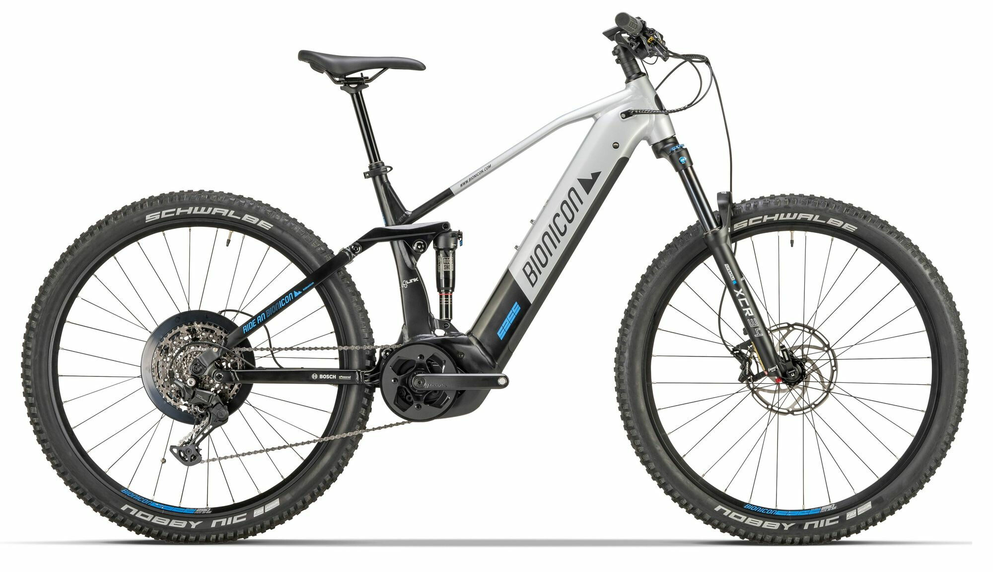 Versandkosten: 2 | Motorleistung (Nm): 85 | Motorhersteller: Bosch | Rücktritt/Freilauf: Freilauf | Rahmenmaterial: Aluminium | Bremsscheibe hinten (mm): 180 | Bremssystem: Scheibenbremse | Motorposition: Mittelmotor | Farbe: Silber | Schaltungstyp: Kettenschaltung | Gabelhersteller: SR Suntour | Ganganzahl: 10 | Schaltungshersteller: Shimano | Akkuposition: intube | Laufradgröße hinten: 27,5 | Rahmenform: Diamant | Laufradgröße vorne : 27,5 | Federung: luftgefedert | Bremsscheibe vorne (mm): 203 | Display: Bosch Kiox 300 | Federweg (mm): 150 | Maximales Gesamtgewicht (kg): 120 | Motor: Bosch Performance Line CX BES3 | Vorbau: BIONICON Stem 35 x 50 mm | Bremse: Tektro HD-M735 | Lenker: BIONICON 35 x 780 mm | Gabel: SR Suntour XCR34-Boost-Air-2CR-DS | Reifen: Schwalbe Smart Sam 27.5×2.6 | Kette: Shimano Cues 10 | Hersteller-Farbe: silver glossy / black matt | Kassette: Shimano Cues 10-fach, Linkglide 11-48T | Laufradsatz: BIONICON X20 Disc; 40 mm | Sattelstütze: Limotec A1, 150 mm | Schaltung: Shimano Cues 10-fach | Akku-Kapazität (Wh): 750 | Kurbelsatz: Miranda 38T | Dämpfer: RockShox Deluxe Select | Akku: Bosch PowerTube 750 | Rahmengröße: 49 cm