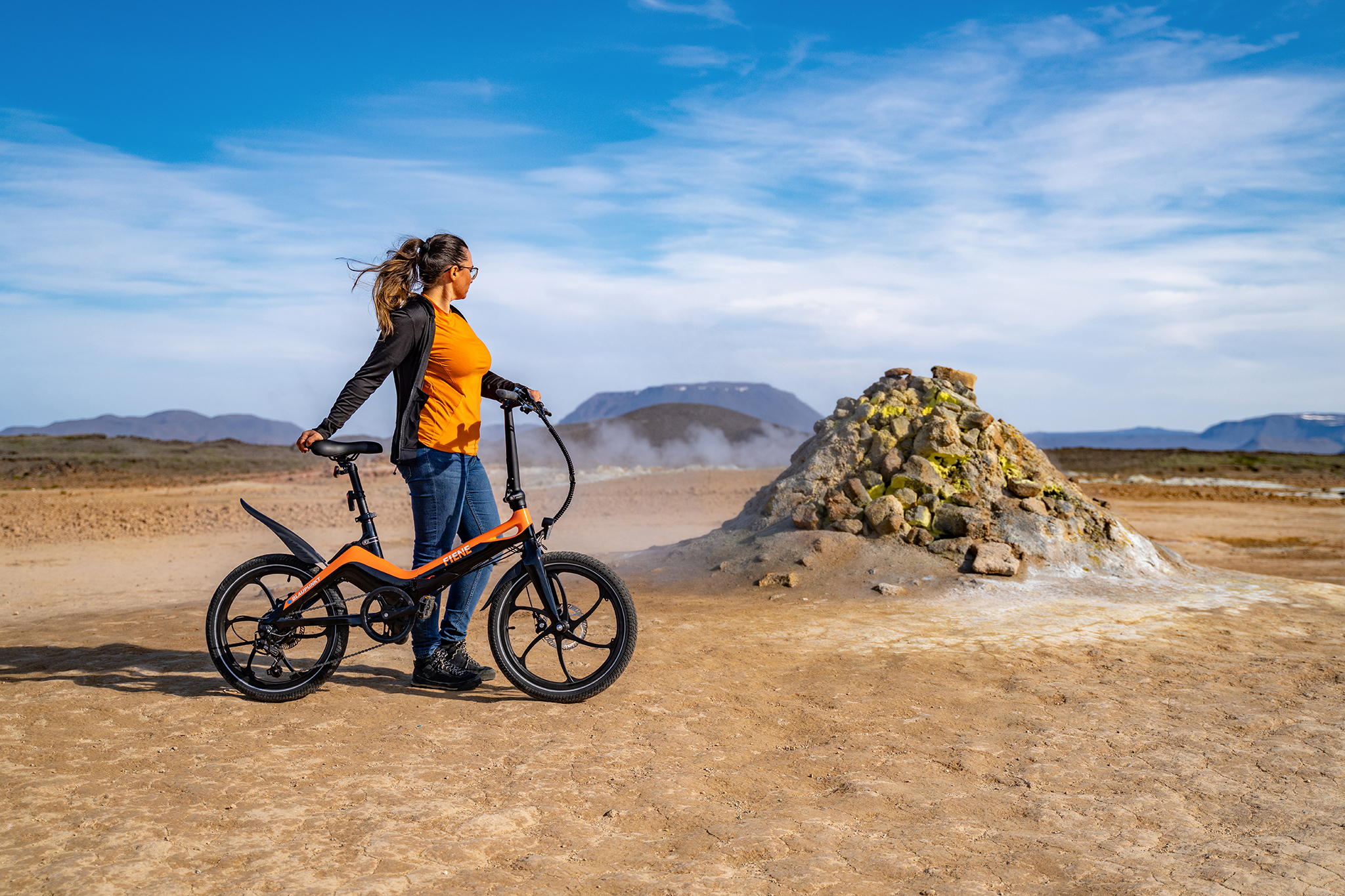 Das sportliche Design-E-Bike mit stabilem Magnesium-Rahmen, Klapp-Magnetverschluss und Transportrolle