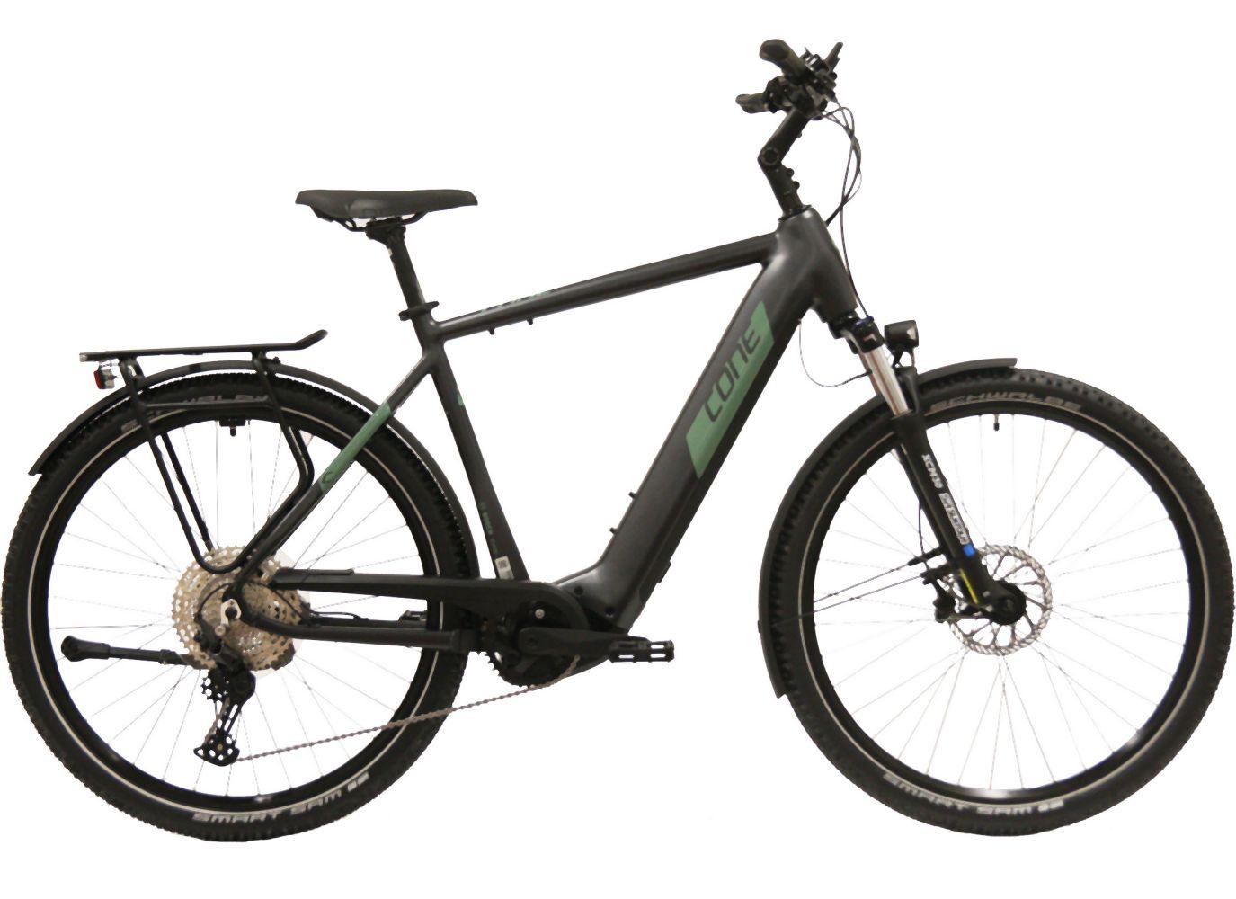 CONE eSUV IN 3.0 Gent 750Wh Anthrazit-Schwarz/Grün Das CONE eSUV IN 3.0 Gent 750 Wh ist ein hochwertiges E-Bike, das für den vielseitigen Einsatz konzipiert wurde, sowohl in der Stadt als auch auf leichteren Offroad-Strecken. Hier sind die Hauptmerkmale: Motor: Das Bike ist mit einem leistungsstarken Bosch Performance Line CX-Motor ausgestattet, der für ein kraftvolles Fahrerlebnis sorgt. Es bietet eine Unterstützung bis zu einer Geschwindigkeit von 25 km/h. Akku: Der herausnehmbare 750 Wh-Akku von Bosch bietet eine beeindruckende Reichweite, ideal für längere Fahrten und Pendelstrecken. Der Akku ist effizient und ermöglicht eine Reichweite von bis zu 150 km, abhängig vom Terrain und der Fahrweise. Rahmen: Der Rahmen des Gent-Modells ist besonders für Herren konzipiert, bietet Stabilität und eine ergonomische Sitzposition. Es hat einen sportlich-eleganten Look, der Komfort und Leistung vereint. Schaltung: Ausgestattet mit einer hochwertigen Shimano Deore 10-Gang-Schaltung, sorgt es für präzise und zuverlässige Gangwechsel, selbst auf anspruchsvollen Strecken. Display: Das Bosch Intuvia-Display zeigt alle wichtigen Informationen wie Geschwindigkeit, Reichweite und Unterstützungsmodus an. Es ist einfach zu bedienen und gut ablesbar, auch während der Fahrt. Das CONE eSUV IN 3.0 Gent 750 Wh ist ein vielseitiges und leistungsfähiges E-Bike, das sowohl für den täglichen Einsatz in der Stadt als auch für Freizeitfahrten in der Natur geeignet ist. Mit seiner starken Motorisierung, langen Akkulaufzeit und hochwertigen Komponenten ist es ein zuverlässiger Begleiter für aktive Radfahrer.
