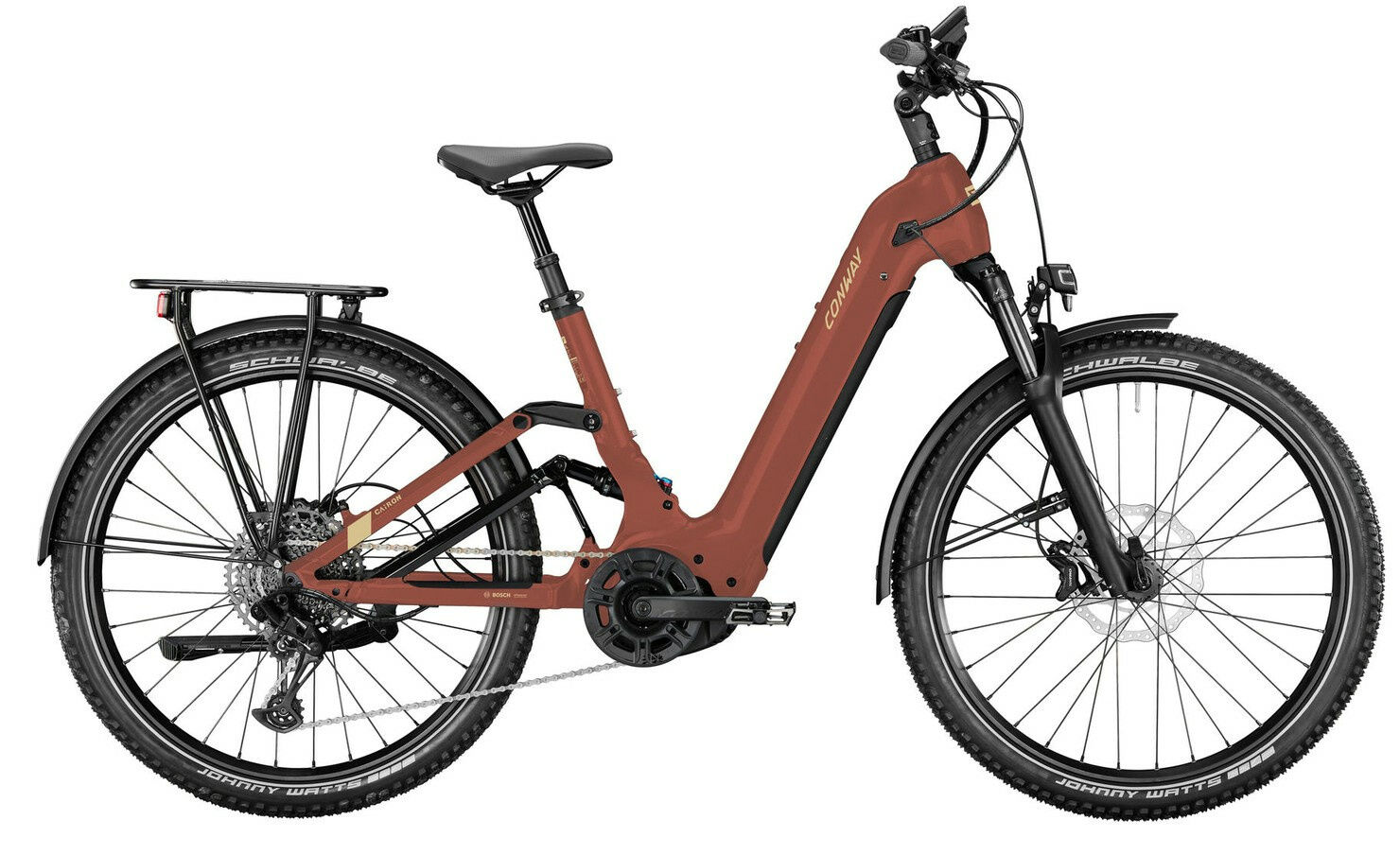 Versandkosten: 2 | Federweg (mm): 120 | Motorleistung (Nm): 85 | Motorhersteller: Bosch | Rücktritt/Freilauf: Freilauf | Rahmenmaterial: Aluminium | Bremssystem: Scheibenbremse | Motorposition: Mittelmotor | Schaltungstyp: Kettenschaltung | Gabelhersteller: SR Suntour | Schaltungshersteller: Shimano | Akkuposition: intube | Laufradgröße hinten: 27,5 | Federung: stahlgefedert | Ganganzahl: 9 | Laufradgröße vorne : 27,5 | Akku-Kapazität (Wh): 625 | Rahmenform: Wave | Kette: SHIMANO „CN-LG500“ | Display: BOSCH, „Intuvia 100“ | Griffe: CONTEC „MERGE Mountain Comfort“ | Naben vorne: SHIMANO „HB-TC500“, 15 x 110 mm | Steuersatz: ZS56 / ZS56, Block Lock | Gepäckträger: ATRAN „Cummute Pro“ | Felgen: RODI „TRYP 30“ | Reifen: SCHWALBE „Smart Sam“, 60-584, Reflex | Pedale: VP „VPE-527“ | Sattel: SELLE ROYAL „Vivo Athletic Ergo“, Damen | Akku: BOSCH „Powertube 625“, Lithium-Ionen mit BMS, 625 Wh, horizontal | Kassette: SHIMANO „CS-LG300-9“, 11-46 Z. | Kurbelsatz: ALU, 32 Z., 160 mm | Lenker: LEVEL 9 „Low Riser“, 31,8, 720 mm | Bremshebel: SHIMANO „Altus SL-M370“ | Schaltung: SHIMANO „Cues RD-U4000“, 9-speed | Schutzbleche: CURANA „Apollo 75“ | Ständer: URSUS „MOOI Plus“, 40 mm | Rückleuchte: AXA „Juno E-Bike“, Brake Light | Gabel: SUNTOUR „XCM34 LOR DS“ | Naben hinten: SHIMANO „FH-TC500“, 12 x 142mm | Schalthebel: SHIMANO „CUES SL-U4010-9R“ | Hersteller-Farbe: rustred | Motor: BOSCH Mittelmotor Gen.4 „Performance CX“, 36 V, 250 W | Vorbau: LEVEL 9 „Adjustable“ | Sattelstütze: ONE Sport, 27,2 mm | Bremse: SHIMANO „BR-MT200“ | Dämpfer: FOX „Float DPS“ | Speichen: Stahl schwarz | Farbe: Rot | Scheinwerfer: CONTEC „DLUX 50 E+“ | Rahmengröße: 42 cm