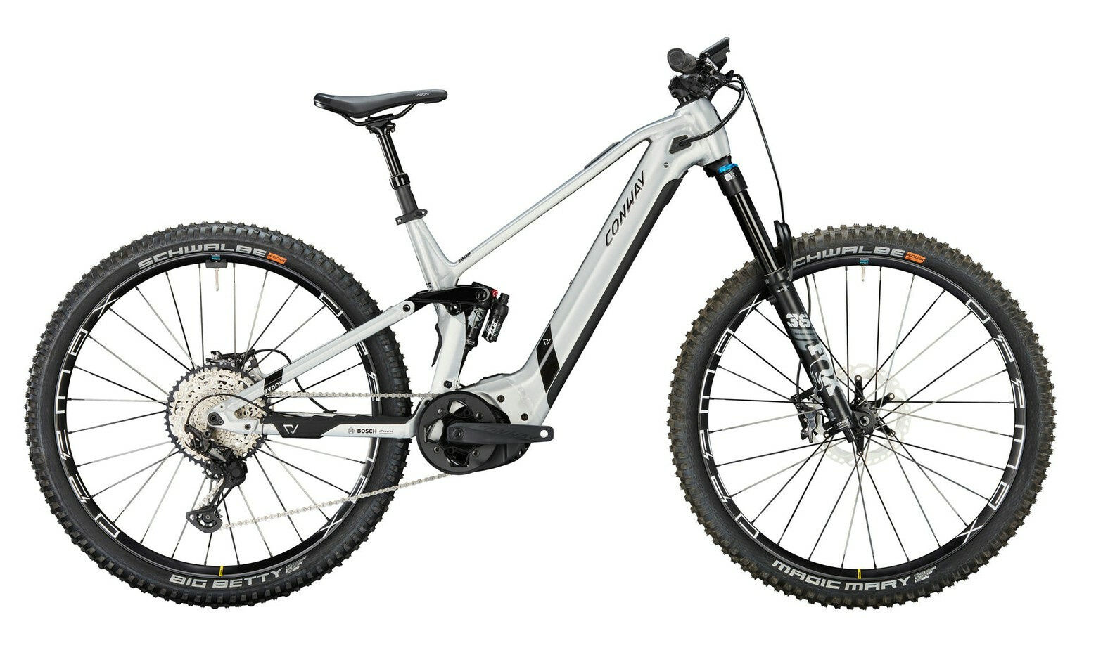 Versandkosten: 2 | Ganganzahl: 12 | Motorleistung (Nm): 85 | Rahmenform: Diamant | Rücktritt/Freilauf: Freilauf | Rahmenmaterial: Aluminium | Bremssystem: Scheibenbremse | Motorposition: Mittelmotor | Federung: luftgefedert | Laufradgröße vorne : 29 | Schaltungshersteller: Shimano | Akkuposition: intube | Federweg (mm): 150 | Schaltungstyp: Kettenschaltung | Motorhersteller: Bosch | Bremsscheibe vorne (mm): 180 | Laufradgröße hinten: 29 | Gabelhersteller: Fox | Bremsscheibe hinten (mm): 180 | Rahmengröße: 43 cm | Akku-Kapazität (Wh): 750 | Display: BOSCH „Kiox 300“ | Motor: BOSCH „Performance Line CX“ Gen. 4, BES3 | Akku: BOSCH „PowerTube 750″, 750 Wh, BES3, horizontal | Steuersatz: ACROS ZS56/28,6 / ZS56/40, 1 1/8“ | Gewicht ca. (kg): 26.9 | Maximales Gesamtgewicht (kg): 130 | Speichen: Niro | Reifen: SCHWALBE „Magic Marry“ Evolution Line, 62-622, Super Gravity | Sattel: FIZIK „Terra Aidon X5“, Unisex, Typ 2, Regular, schwarz | Lenker: LEVELNINE „Race Riser“, 780 mm, 31,8 mm | Griffe: SQLAB „70X“ | Bremshebel: SHIMANO „Deore XT SL-M8130“, LINKGLIDE, 11-fach | Farbe: Raw | Sattelstütze: CONWAY, 31,6 mm | Vorbau: LEVELNINE „A-Head“ | Gabel: FOX RACING SHOX „36 Float Performance“ | Felgen: MAVIC “ E-Demax“ | Bremse: SHIMANO „Deore XT BR-M8120 | Kette: SHIMANO „SLX CN-M7100“ | Hersteller-Farbe: aluminium raw matt / black metallic | Kassette: SHIMANO „SLX CS-M7100“, 12-fach, 10-51 Zänhe, Micro Spline | Kurbelsatz: MIRANDA „Classic“, Boost, 170 mm, 36 Zänhe | Schalthebel: SHIMANO „Deore XT SL-M8100“, I-Spec, 12-fach | Schaltung: SHIMANO „Deore XT RD-M8100“ | Dämpfer: FOX „Factory Float X“