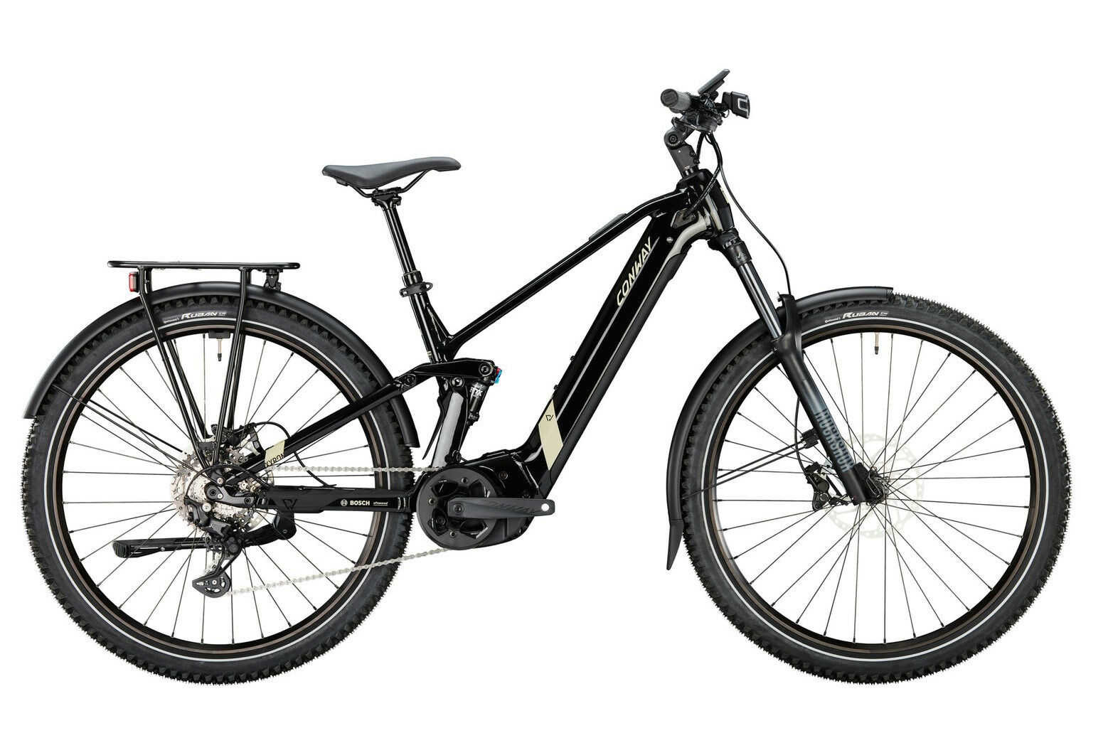 Versandkosten: 2 | Motorleistung (Nm): 85 | Gabelhersteller: RockShox | Rahmenform: Diamant | Rücktritt/Freilauf: Freilauf | Rahmenmaterial: Aluminium | Bremssystem: Scheibenbremse | Motorposition: Mittelmotor | Federung: luftgefedert | Laufradgröße vorne : 29 | Farbe: Schwarz | Schaltungshersteller: Shimano | Akkuposition: intube | Federweg (mm): 150 | Schaltungstyp: Kettenschaltung | Bremsscheibe vorne (mm): 160 | Bremsscheibe hinten (mm): 160 | Motorhersteller: Bosch | Laufradgröße hinten: 29 | Ganganzahl: 10 | Akku-Kapazität (Wh): 625 | Vorbau: LEVELNINE „Adjustable“ | Griffe: CONTEC „MERGE Mountain Straight“ | Motor: BOSCH „Performance Line CX“ Gen. 4, BES3 | Gepäckträger: ATRANVELO „Commute Pro“, AVS-System | Schutzbleche: CURANA „Apollo 75“, Aluminium, 75 mm, schwarz | Ständer: URSUS „R81 – Wave Rear“ | Rückleuchte: CONTEC „TL-335 E-Stop“ | Felgen: RODI „Ready 30“ | Hersteller-Farbe: black metallic / desert matt | Akku: BOSCH „PowerTube 625″, 625 Wh, BES3, horizontal | Steuersatz: ACROS ZS56/28,6 / ZS56/40, 1 1/8“ | Lenker: LEVELNINE „Low Riser“, 720 mm, 31,8 mm | Maximales Gesamtgewicht (kg): 130 | Kette: SHIMANO „CN-LG500“, LINKGLIDE | Kassette: SHIMANO „CS-LG600“, LINKGLIDE, 10-fach, 11-43 Zänhe | Schalthebel: SHIMANO „Deore SL-M5130-R10“, LINKGLIDE, 10-fach | Schaltung: SHIMANO „Deore RD-M5130-GS“, LINKGLIDE, mittellanger Käfig | Dämpfer: FOX „Float DPS“ | Display: BOSCH „Intuvia 100“ | Reifen: CONTINENTAL „Ruban“, 58-622, Reflex | Rahmengröße: 49 cm | Naben hinten: SHIMANO „Alivio FH-MT400-B“, 12 x 148 mm, Center Lock, 8/9/10-fach (11-fach MTB) | Gabel: ROCKSHOX „Recon Silver RL“ | Sattel: SELLE ROYAL „2315HRN“, Unisex, Athletic, schwarz | Kurbelsatz: MIRANDA „Epsilon“, 165 mm, für Bosch Gen. 4, ISIS, schwarz | Naben vorne: SHIMANO „HB-MT410-B“, 15 x 110 mm, Center Lock, 32 Loch | Sattelstütze: CONWAY Variosattelstütze „Droper Post“, 30,9 mm | Bremshebel: SHIMANO „Deore SL-M5130-R10“, LINKGLIDE, 10-fach | Scheinwerfer: CONTEC „DLUX 120 E+“, 120 Lux | Bremse: SHIMANO BR-MT420 | Speichen: Niro, schwarz | Gewicht ca. (kg): 29.5