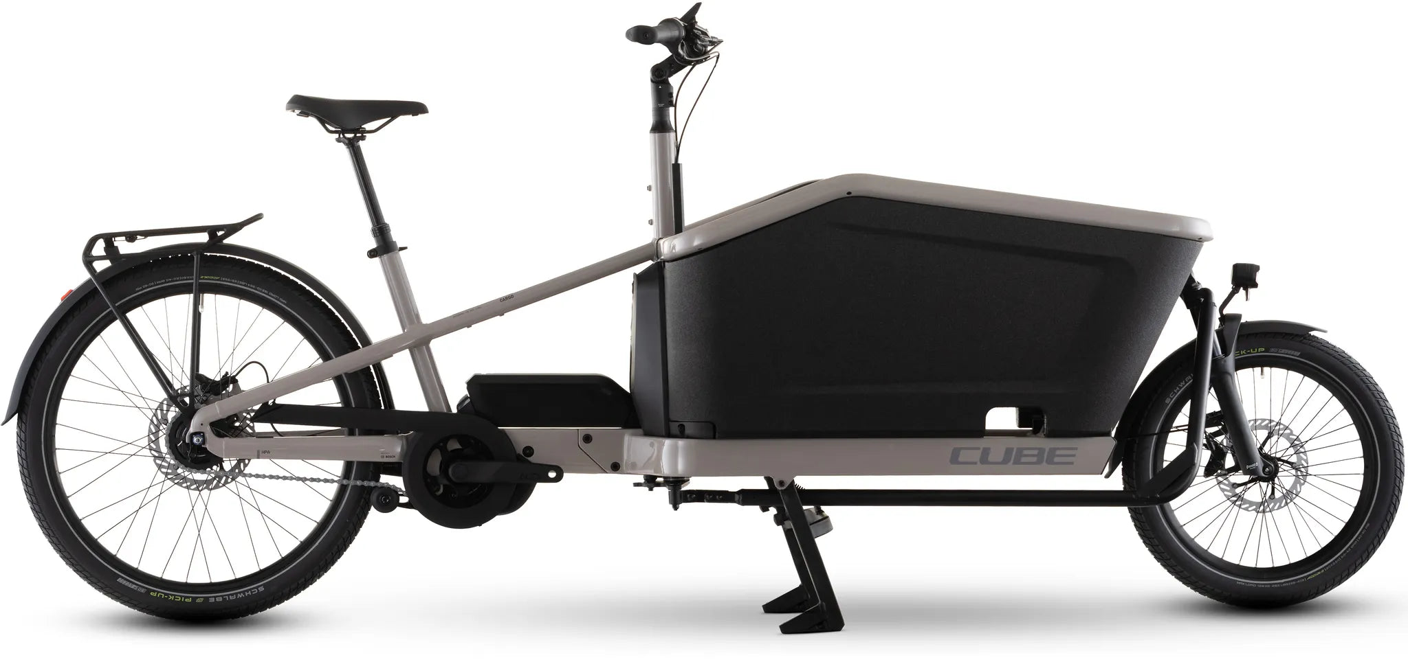 Cube Cargo Hybrid Comfort Pro 800 oatgrey´n´reflex 2026Für Transporte in der City braucht’s ein Auto? Nicht, wenn das Cargo Hybrid Comfort Pro 800 zum Einsatz kommt. Sein kraftvoller Bosch Cargo Line Motor mit bis zu 100 Nm Drehmoment wird von einem 800 Wh starken Akku gespeist und arbeitet zuverlässig mit der einfach bedienbaren, wartungsarmen 5-Gang Shimano Nabenschaltung Hand in Hand. So wird jede Fahrt zum Spaziergang. Erstklassigen Grip bringen die breiten Schwalbe Reifen mit, für tollen Fahrkomfort sorgt eine Lasten-spezifische Suntour Federgabel. Die kraftvoll zupackenden hydraulischen Shimano Scheibenbremsen bieten Kontrolle und Bremskraft bei jedem Wetter. Stark: In der stabilen, flexiblen Cargobox aus EPP-Schaum reist Ladung mit bis zu 200 kg Systemgewicht sicher von A nach B. Außerdem lässt sich das Bike dank verstellbarem Vorbau schnell und einfach auf die jeweilige KörperGröße einstellen. Als Extra ist viel praktisches Zubehör dabei: Schutzbleche, ein stabiler und einfach zu bedienender Mittelbauständer sowie LED-Front- und Rücklichter. So gehen Lastentransporte in der City heute!