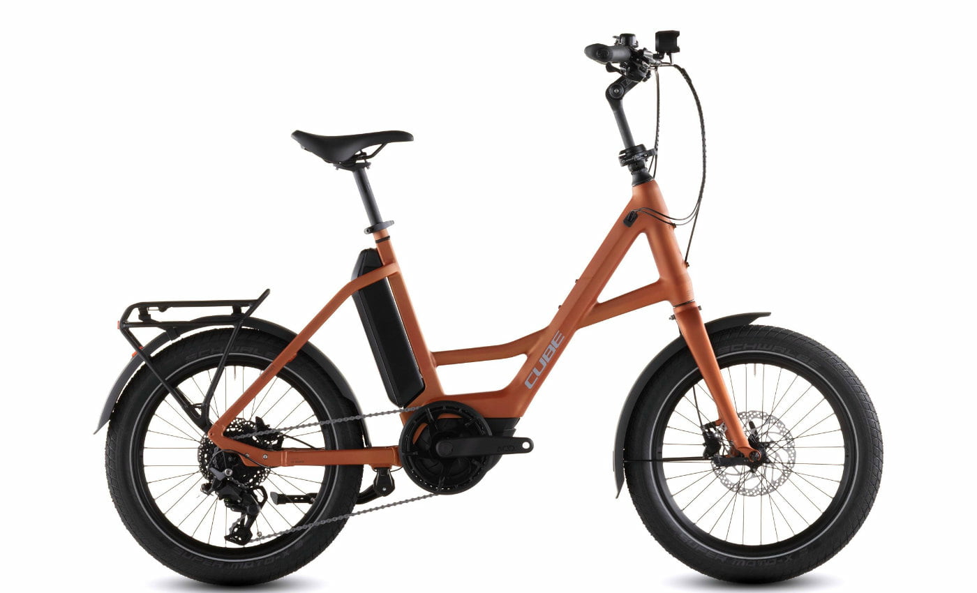 Cube Compact Hybrid 545 – rustorange´n´reflex Der Cube Compact Hybrid 545 ist der perfekte Alltagsbegleiter für Pendeln, Einkäufe, Freizeit und Ausflüge. Sein praktischer Tiefeinsteiger-Rahmen mit Tragegriff erleichtert Auf- und Absteigen und passt auf fast alle Körpergrößen. Dank Bosch Performance Motor, Smart System und 545 Wh Akku geht’s auf allen Strecken kraftsparend vorwärts. Sattel- und Lenkerhöhe lassen sich schnell verstellen, optionaler Front-Gepäckträger ist montierbar. Rahmen: Aluminium Superlite, Comfort Ride Geometry, Semi-Integrated Carrier, Double Butted, Front-Carrier Ready, Slider Dropout, Tiefeinsteiger mit Tragegriff Größe: One Size Motor & Akku: Bosch Drive Unit Performance Line 75 Nm, Bosch PowerPack 545, Smart System, Remote Bosch Purion 200 mit integriertem Display, Ladegerät 2 A Federgabel: Starrgabel Aluminium Rigid Fork, 20″ Bremsen: Shimano BR-MT200, Hydr. Disc Brake (180/160 mm) Schaltung: Shimano Cues RD-U4010, 9-Gang, Schalthebel SL-U4010 Rapidfire-Plus, Kurbel ACID Trekking Hybrid 44T, Kassette Shimano CS-LG300 11-36T, Kette KMC eGlide Lenker & Vorbau: CUBE Comfort Trail Bar 680 mm, Vorbau BySchulz Speedlifter Twist Pro SDS T15, lange Steuerrohr für präzises Lenken Laufräder & Reifen: ACID EX30 Felgen 32H, Tubeless Ready, Vorderrad Shimano HB-QC300 QR, Hinterrad Shimano FH-QC300-HM QR, Reifen Schwalbe Super Moto-X 62-406 Sattel & Sattelstütze: ACID Sequence Pro 160, Newmen Evolution 27,2 mm, höhenverstellbar Beleuchtung & Zubehör: ACID Front Light PRO-E 60 X-Connect, ACID Mudguard Rear Light PRO-E, Pedale ACID PP Trekking, Schutzbleche ACID 75, CUBE CenterStand, Easy Bell, ACID 20″ Semi-Integrated Carrier Gepäckträger, optionaler Front-Gepäckträger montierbar Steuersatz: Cube H835D3, Semi-Integrated, Sealed bearing Gewicht: 23,3 kg Max. Systemgewicht: 142 kg Max. Fahrergewicht: 100 kg Farbe: rustorange´n´reflex Das Cube Compact Hybrid 545 kombiniert Komfort, kompakte Bauweise und praktische Features wie Licht, Schutzbleche, Gepäckträger und Seitenständer. Bosch Performance Motor, Smart System und 545 Wh Akku machen es zum idealen, treuen Begleiter für alle Alltags- und Freizeitaktivitäten.