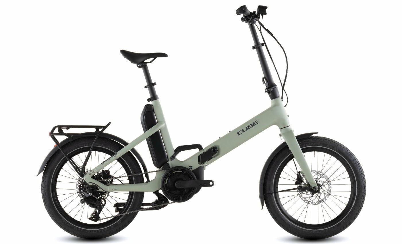 Cube Fold Hybrid 545 – pea´n´reflex Das Cube Fold Hybrid 545 ist ein faltbares E-Bike für maximale Flexibilität und Mobilität. Dank integriertem Tragegriff und cleverem Faltmechanismus lässt es sich kompakt verstauen und einfach transportieren. Bosch Performance Motor, Smart System und 545 Wh Akku sorgen für kraftsparendes Fahren, während Sattel- und Lenkerhöhe auf fast alle Körpergrößen angepasst werden können. Schutzbleche, Gepäckträger und superstabiler Seitenständer machen das Bike alltagstauglich, optional ist ein Front-Gepäckträger nachrüstbar. Rahmen: Aluminium Superlite, Comfort Ride Geometry, Semi-Integrated Carrier, Front-Carrier Ready, Slider Dropout, Integrated Folding Technology, Carrying Handlebar Größe: One Size Motor & Akku: Bosch Drive Unit Performance Line 75 Nm, Bosch PowerPack 545, Smart System, Remote Bosch Purion 200 mit integriertem Display, Ladegerät 2 A Federgabel: Aluminium Rigid Fork, 20″ Bremsen: Shimano BR-MT200, Hydr. Disc Brake (180/180 mm) Schaltung: Shimano Cues RD-U4010, 9-Gang, Schalthebel SL-U4010 Rapidfire-Plus, Kurbel ACID Trekking Hybrid 42T, Kassette Shimano CS-LG300 11-36T, Kette KMC eGlide Lenker & Vorbau: CUBE Comfort Trail Bar 680 mm, Cube Folding Stem, verstellbare Länge 25,4 mm Laufräder & Reifen: ACID EX30 Felgen 32H, Tubeless Ready, Vorderrad Shimano HB-QC300 QR, Hinterrad Shimano FH-QC300-HM QR, Reifen Schwalbe Super Moto-X 62-406 Sattel & Sattelstütze: ACID Sequence 160, Satori Sorata 34,9 mm, teleskopische Sitzstütze 280–440 mm Beleuchtung & Zubehör: ACID Front Light PRO-E 60 X-Connect, ACID Mudguard Rear Light PRO-E, faltbare Aluminium-Pedale, Schutzbleche ACID 75, Two Leg Kickstand, Easy Bell, ACID 20″ Semi-Integrated Carrier Gepäckträger, optionaler Front-Gepäckträger montierbar Steuersatz: ACROS AZF-1038, Top Zero-Stack 1 1/8″ (ZS 44 mm), Bottom Zero-Stack 1 1/2″ (ZS 56 mm) Gewicht: 25,3 kg Max. Systemgewicht: 142 kg Max. Fahrergewicht: 95 kg Farbe: pea´n´reflex Das Cube Fold Hybrid 545 vereint kompaktes Design, cleveren Faltmechanismus und praktisches Zubehör wie Licht, Schutzbleche, Gepäckträger und Seitenständer. Perfekt für Stadt, Pendeln und flexiblen Transport, überall dort, wo Platz begrenzt ist.