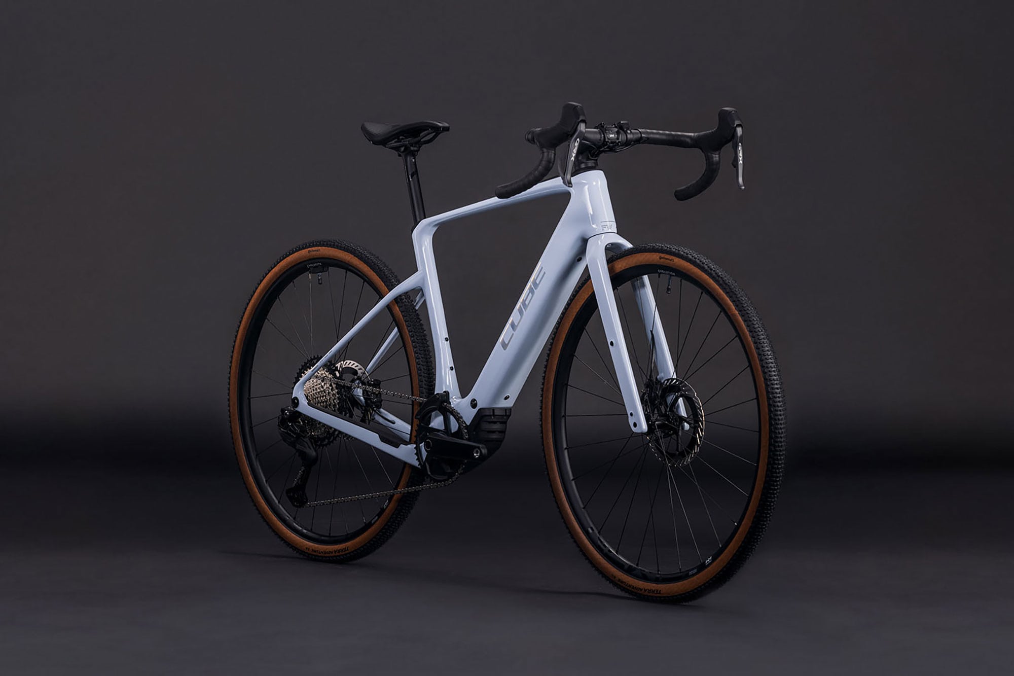 Die Steuerung erfolgt dezent über den System Controller am Oberrohr und eine kleine Remote-Einheit am Lenker., Das exzellent ausgestattete Cube E-Gravelbike Nuroad Hybrid C:62 SLX 400X lässt dich Schotterwegabenteuer mit Bosch-Rückenwind erleben., Dank umfangreicher Befestigungsoptionen, ist diese Cube Gravel-E-Bike sowohl für Touren als auch für den täglichen Einsatz einfach aufrüstbar., Im Unterrohr sitzt der kompakte 400 Wh Akku, der sich bei Bedarf durch einen optionalen Range Extender um weitere 250 Wh ergänzen lässt., Der Bosch SX Motor mit bis zu 600 Watt Spitzenleistung sorgt für kraftvolle Unterstützung., Ab Werk rollt das Cube Nuroad Hybrid C:62 SLX 400X auf 45 mm breiten Continental Terra Adventure Reifen, montiert auf stabilen Newmen Evo Laufrädern, die bis zu 50 mm Reifenfreiheit erlauben., Für präzises Schalten und sicheres Verzögern setzt Cube auf die elektronische Shimano GRX Gruppe mit 12-fach Schaltung und hydraulische