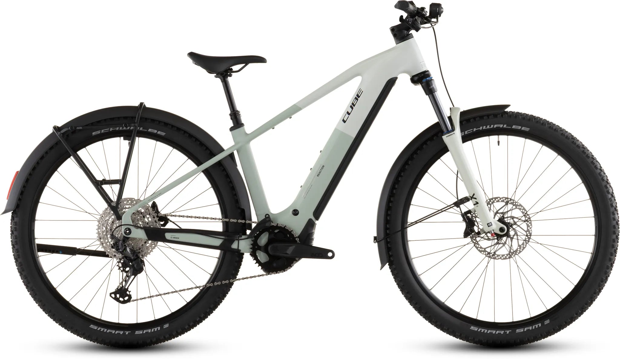 Cube Reaction Hybrid Pro 800 FE desertstone´n´driedherbs 2026Das Beste aus zwei Welten: Das Reaction Hybrid Pro FE kombiniert die Vielseitigkeit eines voll ausgestatteten Tourers mit der Robustheit eines Mountainbikes und dem Support durch einen E-Motor. Dabei hat das Bike neben Schutzblechen, Gepäckträger, Seitenständer und Lichtern noch weitere Highlights auf Lager. Dank dem leistungsstarken Bosch CX Motor und 800 Wh starken Akku sind jede Menge Power und Reichweite garantiert, und zwar auf jeder Route, ob über Asphalt oder im Gelände. Dabei macht die einfach bedienbare Shimano XT 12-fach Schaltung selbst steile Anstiege zum Kinderspiel. Bergab packen die hydraulischen 4-Kolben-Scheibenbremsen von Shimano kraftvoll zu und verzögern die griffigen Schwalbe 2.6 Zoll Reifen zuverlässig und sicher. Für eine Extraportion Fahrkomfort und Kontrolle auf ruppigeren Strecken haben wir eine Luftfedergabel mit 120 mm Federweg (100 mm bei kleinen RahmenGrößen und allen Tiefeinsteiger-Modellen) und eine versenkbare Sattelstütze verbaut.