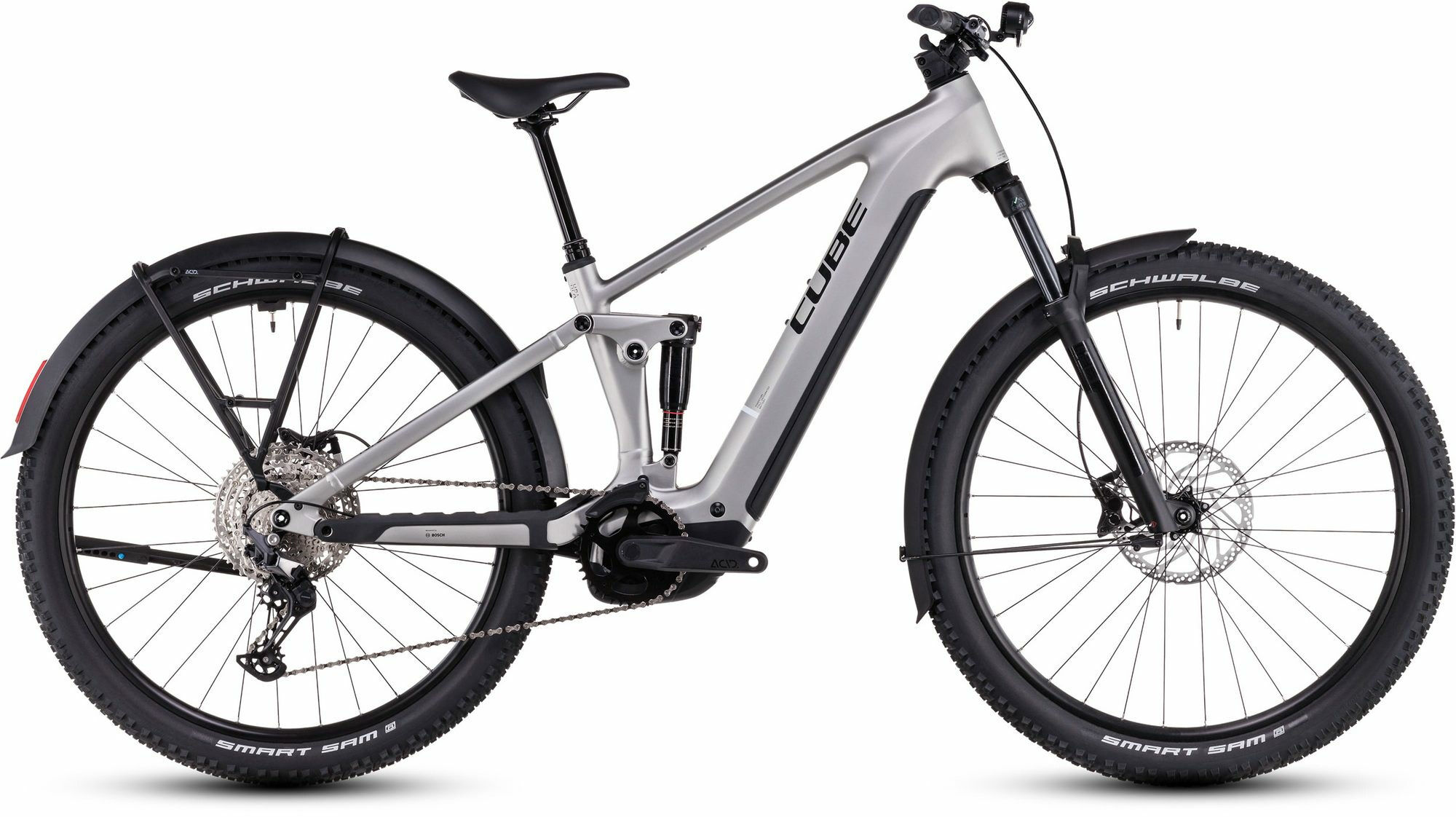 Versandkosten: 2 | Motorleistung (Nm): 85 | Gabelhersteller: RockShox | Rahmenform: Diamant | Rücktritt/Freilauf: Freilauf | Rahmenmaterial: Aluminium | Bremssystem: Scheibenbremse | Motorposition: Mittelmotor | Federung: luftgefedert | Laufradgröße hinten: 29 | Schaltungstyp: Kettenschaltung | Laufradgröße vorne : 29 | Schaltungshersteller: Shimano | Akkuposition: intube | Motorhersteller: Bosch | Bremsscheibe vorne (mm): 203 | Ganganzahl: 12 | Akku-Kapazität (Wh): 800 | Maximales Gesamtgewicht (kg): 150 | Rahmengröße: M | Akku: Bosch PowerTube 800 | Vorbau: CUBE Performance Stem E-MTB 35, FPI-Link | Kette: KMC e12 | Lenker: CUBE Rise Trail Bar 35 | Sattelstütze: CUBE Dropper Post, Handlebar Lever, Internal Cable Routing, 31.6mm | Kassette: Shimano Deore CS-M6100, 10-51T | Motor: Bosch Performance Line CX, Smart System | Bremsscheibe hinten (mm): 203 | Sattel: ACID Sequence Pro 160 | Steuersatz: ACROS AZF-1034, ICR | Kurbelsatz: ACID MTB Hybrid Pro, 38T | Gepäckträger: ACID Carrier SIC 2.0 Rail Boost | Scheinwerfer: ACID Front Light PRO-E 150 X-Connect, 12V, DC | Ständer: ACID FM Pure Kickstand | Naben vorne: CUBE Engineered By Newmen, 15mm, Boost, Centerlock | Naben hinten: CUBE Engineered By Newmen, 12mm, Boost, Centerlock | Pedale: ACID PP MTB | Reifen: Schwalbe Smart Sam, Active, 2.6 | Griffe: ACID Hybrid Perform | Rückleuchte: ACID Mudguard Rear Light PRO-E, 12V, DC | Felgen: CUBE EX30, 32H, Disc, Tubeless Ready | Klingel: ACID Alpha | Gabel: RockShox Psylo Silver RC Air | Schaltung: Shimano Deore RD-M6100-SGS, ShadowPlus, 12-Speed | Bremse: Shimano BR-MT420 | Hersteller-Farbe: silver´n´black | Farbe: Silber | Gewicht ca. (kg): 28.3 | Schalthebel: Shimano Deore SL-M6100-IR, Direct Attach, Rapidfire-Plus | Schutzbleche: ACID 65 | Dämpfer: RockShox Deluxe Select R | Federweg (mm): 120
