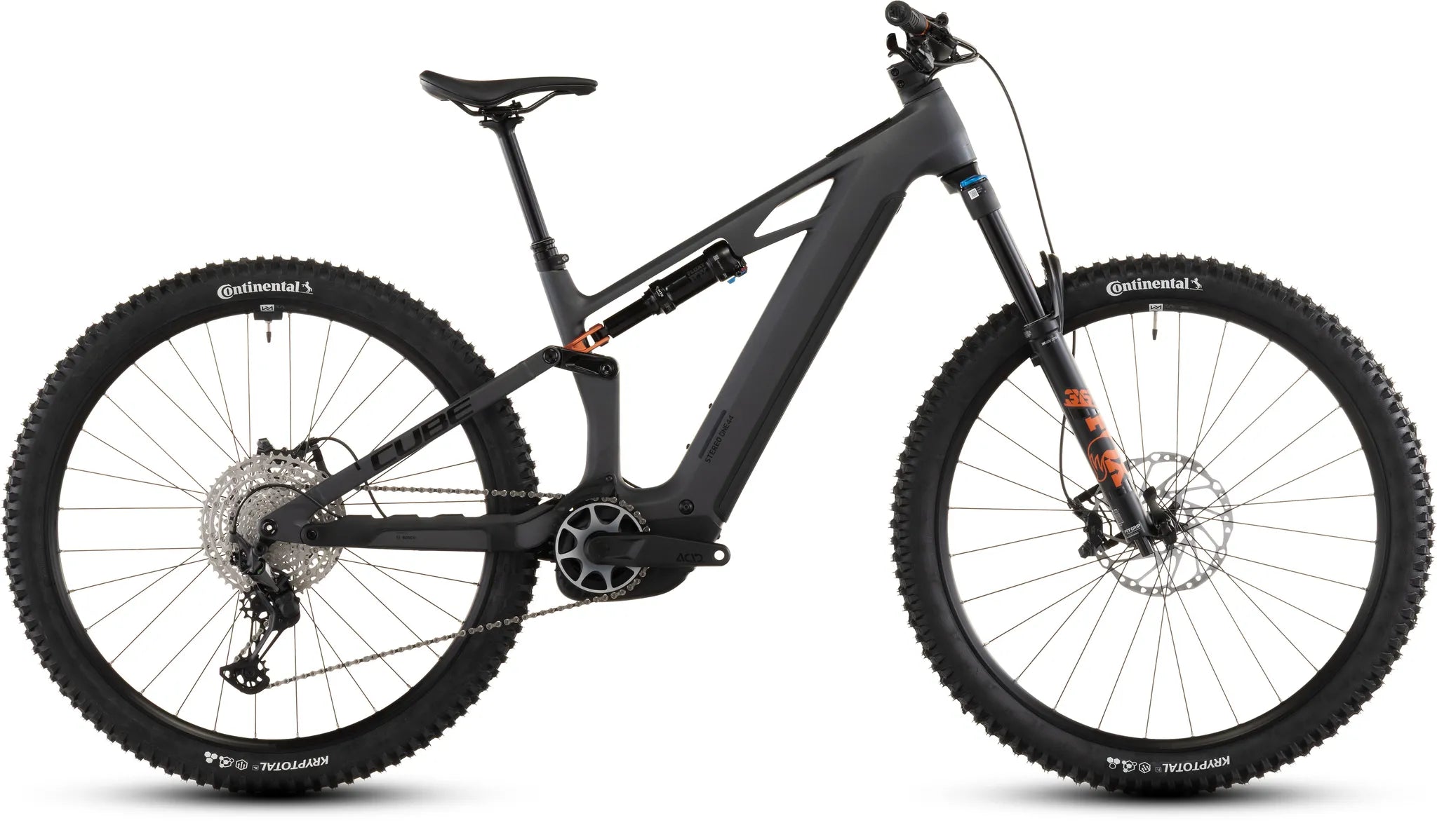 Cube Stereo Hybrid ONE44 HPC SLX 800 slabgrey´n´orange 2026Ein richtig gutes Bike ist eins, das alles mit- und vor allem mega Spaß macht – so wie das Stereo Hybrid ONE44 HPC SLX 800 mit seiner Fox 36 Float 36 Rhythm Federgabel und dem dazu passenden Float Performance Dämpfer mit 150 mm und 140 mm Federweg. Außerdem mit Newmen Performance 30 Laufrädern, auf die wir Continental Kryptotal 2.4 Zoll Pneus aufgezogen haben. Das Ergebnis: 1a-Performance und ein Fahrgefühl wie auf Wolken. In Sachen Vortrieb und Reichweite spielen der Bosch CX Motor (mit bis zu 100 Nm Drehmoment und Kiox 400C Display für den perfekten Überblick) und der 800 Wh Akku ihre Trümpfe aus. Diese Power top dosiert auf den Trail bringt die leichtgängige, superzuverlässige XT 12-fach Schaltung von Shimano. So viel Schub will aber auch top kontrolliert werden – das Spezialgebiet der bissigen, progressiv und sicher verzögernden hydraulischen Shimano XT 4-Kolben-Scheibenbremsen mit 203 mm Rotoren. Eigentlich klar, dass wir dieser Trail-Maschine auch eine versenkbare Sattelstütze mitgegeben haben. Abenteuermodus an und los!