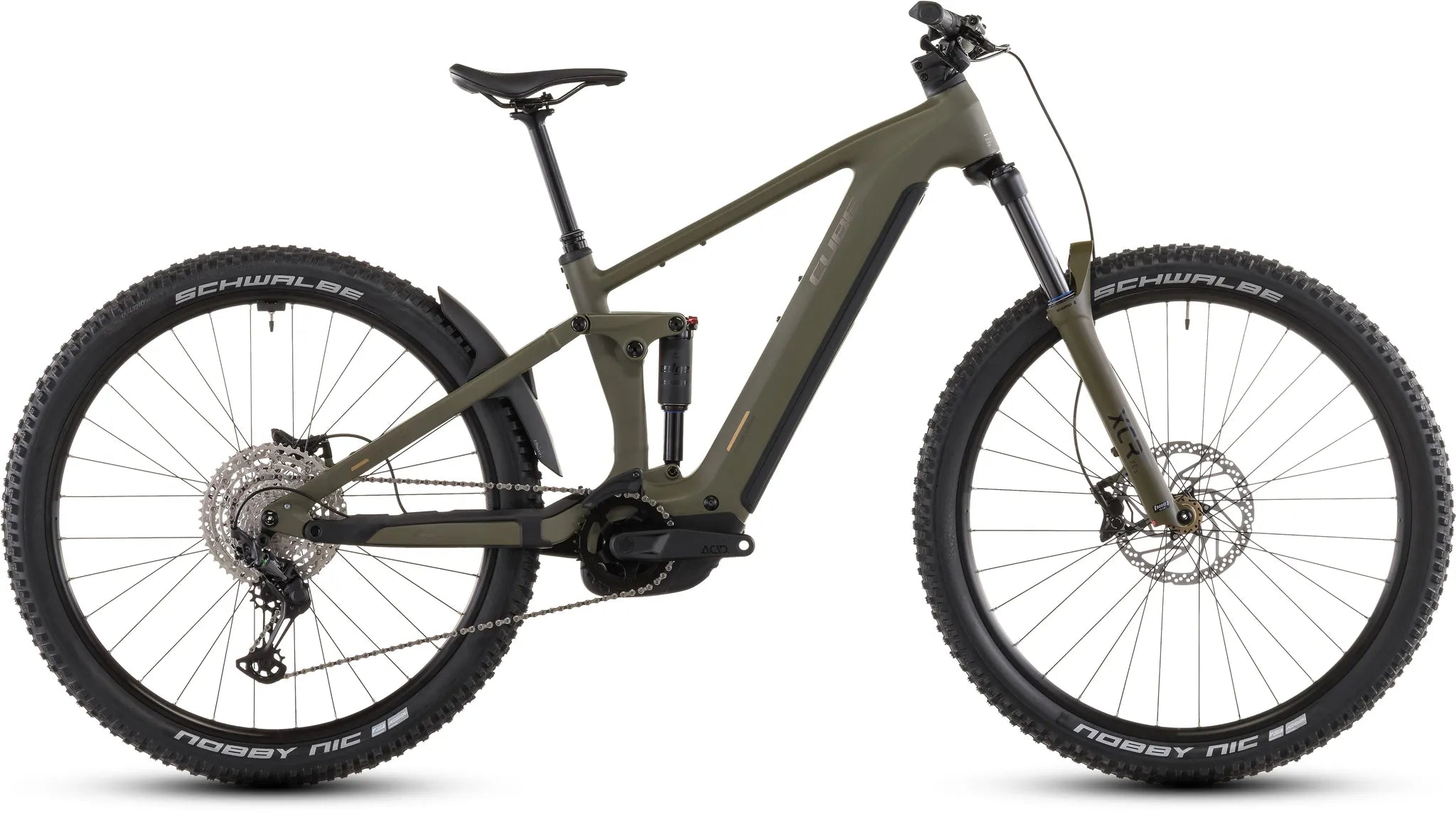 Cube Stereo Hybrid ONE44 Pro 800 dustolive´n´gold 2026Wer anspruchsvolle Trails im Sinn hat, hat vermutlich das Stereo Hybrid ONE44 Pro 800 unterm Sattel. Dank seiner 140 mm Luftfedergabel und dem passenden Dämpfer aus dem Hause Suntour kleben die geschmeidig rollenden Schwalbe Nobby Nic 2.6 Zoll Pneus förmlich auf dem Trail. Für den starken Vorwärtsdrang dieser Bergziege ist der Bosch CX Motor mit 800 Wh Akku und bis zu 100 Nm Drehmoment verantwortlich. Mit ihren 12 Gängen bringt die legendäre Shimano XT Schaltung diese Power top organisiert auf den Trail. Kraftvoll und präzise gebremst wird mit hydraulischen 4-Kolben-Shimano Scheibenbremsen mit 203 mm Rotoren. Clever: Dank Size Split finden alle die richtige Passform für sich und ihre Anforderungen. Außerdem gibt’s für einfaches Umrüsten – zum Pendeln und für entspannte Radtouren am Wochenende – diverse SIC 2.0 Aufnahmepunkte.