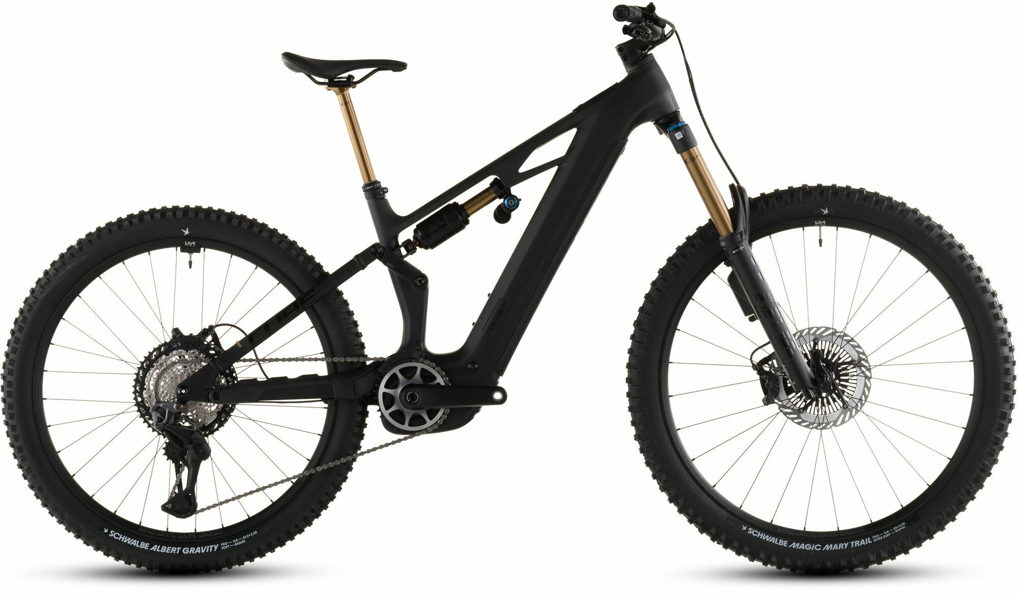 Akku: Bosch PowerTube 800 | Vorbau: CUBE Performance Stem E-MTB 35, FPI-Link | Versandkosten: 2 | Laufradgröße hinten: 27,5 | Ganganzahl: 12 | Gabelhersteller: Fox | Akku-Kapazität (Wh): 800 | Motorhersteller: Bosch | Rücktritt/Freilauf: Freilauf | Pedale: ACID PP MTB | Motorposition: Mittelmotor | Federung: luftgefedert | Schaltungshersteller: Shimano | Bremsscheibe hinten (mm): 203 | Akkuposition: intube | Bremsscheibe vorne (mm): 203 | Schaltungstyp: Elektronische Kettenschaltung | Rahmenform: Diamant | Rahmenmaterial: Carbon | Laufradgröße vorne : 29 | Farbe: Schwarz | Rahmengröße: L | Bremssystem: Scheibenbremse, hydraulisch | Federweg (mm): 170 | Motorleistung (Nm): 100 | Motor: Bosch Drive Unit Performance Line CX max. 100Nm (BDU38) | Maximales Gesamtgewicht (kg): 160 | Bremse: Shimano XT BR-M8220, Hydr. Disc Brake w/ Front ABS (203/203) | Schalthebel: Shimano XT Di2 SW-M8250-IR, Direct Attach | Schaltung: Shimano XT Di2 RD-M8260-SGS, 12-Speed, Electronic Shifting System | Kassette: Shimano XT CS-M8100, 10-51T | Sattel: ACID Venec EMTB Trail 140 | Steuersatz: ACROS AZF-675, ICR (Integrated Cable Routing), Top Zero-Stack 1 1/2″ (ZS 56mm), Bottom Zero-Stack 1 1/2″ (ZS 56mm), Fiber Inserts for Angle Adjustment, X-Connect Interface | Sattelklemmung: CUBE Semi-Integrated | Display: Bosch Kiox 400C | Griffe: ACID Disrupt, Soft Compound | Gewicht ca. (kg): 24.7 | Laufradsatz: Newmen Beskar 30 base/strong, 28/32 Spokes, 15x110mm/12x148mm, Tubeless Ready | Kurbelsatz: ACID MTB Hybrid Carbon, 36T | Hersteller-Farbe: carbon´n´gold | Lenker: Race Face ERA 35 | Dämpfer: Fox Float X2 Factory, 230x65mm, Adjustable HSC/LSC/HSR/LSR w/ 2-Pos. Lever | Gabel: Fox 38 Float Factory GRIPX2, Tapered, 15x110mm, E-Bike Optimized, 170mm | Reifen: Schwalbe Magic Mary Trail Pro, Addix Ultrasoft, Kevlar, 2.5 / Schwalbe Albert Gravity Pro, Addix Soft, Kevlar, 2.5 | Kette: Shimano XT CN-M8100 | Sattelstütze: Fox Transfer Factory 31.6mm, Kashima Coated