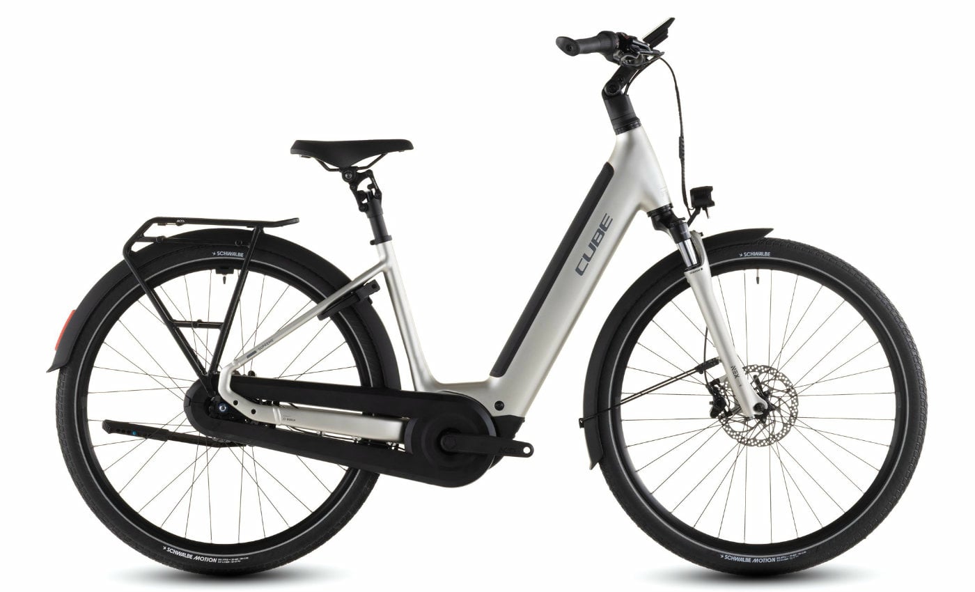 Cube Supreme RT Hybrid Comfort EXC 600 – champagne´n´grey Mit dem Cube Supreme RT Hybrid Comfort EXC 600 holst du dir ein E-Bike, das Komfort, Sicherheit und moderne Bosch-Technologie perfekt verbindet. Der leichte Aluminium Superlite Rahmen mit tiefem Einstieg macht das Auf- und Absteigen kinderleicht, während die cleane Kabelführung für eine elegante Optik sorgt. Im Zentrum steht der Bosch Performance Line PX Motor mit 90 Nm Drehmoment, der dich kräftig beim Treten unterstützt. Der 600 Wh PowerTube Akku ist vollständig im Unterrohr integriert und liefert zusammen mit dem Bosch Kiox 500 Display die nötige Power und smarte Kontrolle für tägliche Wege oder lange Touren. Dank Shimano Nexus 5-Gang Nabenschaltung mit Drehgriff schaltest du komfortabel und wartungsarm. Für zusätzliche Sicherheit sorgt die Kombination aus hydraulischen Shimano Scheibenbremsen und der klassischen Rücktrittbremse. Die 50 mm breiten Schwalbe Big Apple Reifen, die gefederte Sattelstütze von SR Suntour und die NEX-E25 Federgabel mit 50 mm Federweg garantieren hohen Fahrkomfort, auch auf unebenen Straßen. Praktische Extras wie der ACID Gepäckträger, Schutzbleche und die hochwertige Beleuchtung runden das Rundum-sorglos-Paket ab. Motor: Bosch Performance Line PX, 90 Nm Akku: Bosch PowerTube 600 Wh, integriert Schaltung: Shimano Nexus 5-Gang Nabenschaltung mit Rücktritt Bremsen: Shimano Alfine hydraulische Scheibenbremsen + Rücktritt Federgabel: SR Suntour NEX-E25, 50 mm Reifen: Schwalbe Big Apple, 50-622 Gewicht: 29,4 kg Max. Systemgewicht: 140 kg Das Cube Supreme RT Hybrid Comfort EXC 600 in champagne´n´grey vereint Alltagstauglichkeit, Komfort und höchste Sicherheit – ein elegantes und zuverlässiges E-Bike für Stadt und Tour.