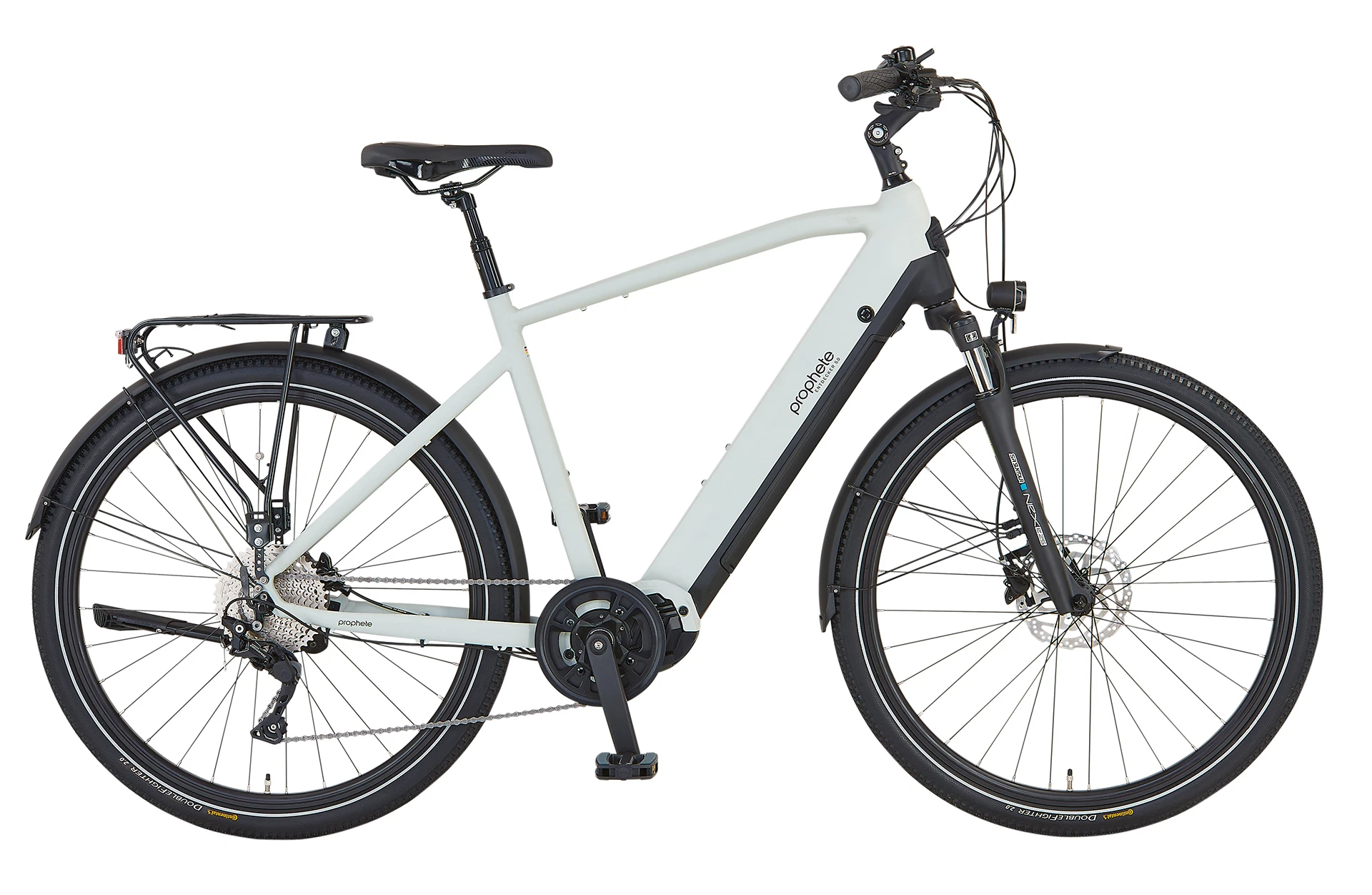 Das Top-Modell unter den Prophete Trekking E-Bikes ist das Prophete Entdecker 5.0 mit 28“ Bereifung. Trekking auf einem neuen Level mit stylischer Optik, hoher Funktionalität und hochwertiger Ausstattung – hier wurde an keinem Ende gespart. Sei gerüstet für alltägliche Touren durch die Stadt und abseits der eingefahrenen Wege. Der neudesignte Diamantrahmen mit einer Rahmenhöhe von 54 cm integriert das patentierte Akkusystem von Prophete. Der leistungsstarke 15 Ah Lithium-Ionen-Akku (720 Wh) „verschwindet“ vollständig im Unterrohr und fügt sich nahtlos in die Rahmenarchitektur ein. Von dort aus versorgt er den kraftvollen 48 Volt Mittelmotor mit Energie. Der AEG SportDrive II bringt satte 250 Watt Leistung auf die Strecke bei einem maximalen Drehmoment von 100 Nm. Reichweiten von bis zu 220 km sind je nach Fahrweise und Untergrund möglich.