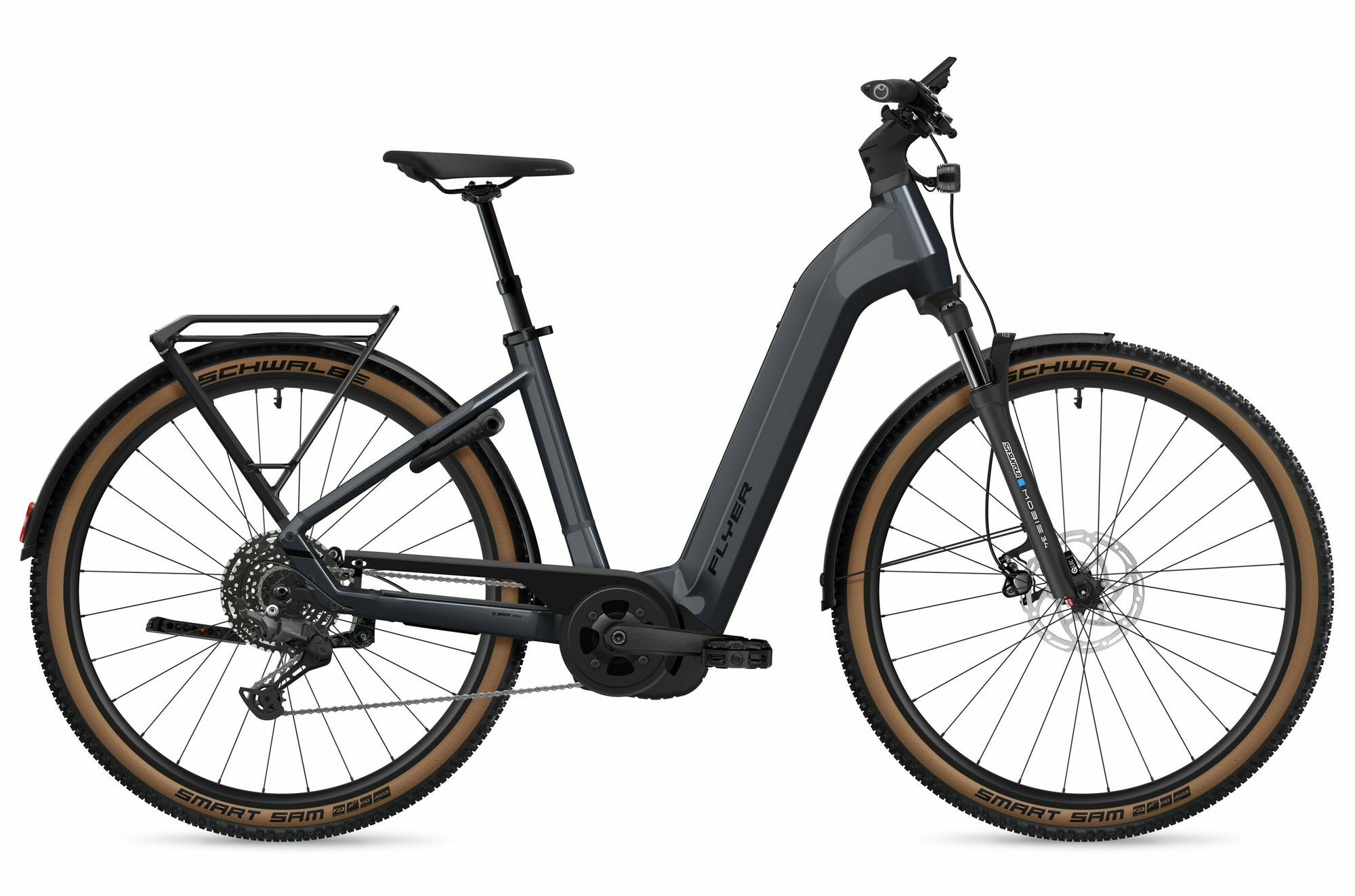 Bremssystem: Scheibenbremse, hydraulisch | Versandkosten: 2 | Rücktritt/Freilauf: Freilauf | Rahmenmaterial: Aluminium | Motorposition: Mittelmotor | Schaltungstyp: Kettenschaltung | Akkuposition: intube | Rahmengröße: S | Motorhersteller: Bosch | Bremsscheibe vorne (mm): 180 | Schaltungshersteller: Shimano | Rahmenform: Wave | Bremsscheibe hinten (mm): 180 | Gabelhersteller: SR Suntour | Ganganzahl: 10 | Laufradgröße hinten: 29 | Laufradgröße vorne : 29 | Farbe: Anthrazit | Federung: luftgefedert | Lenker: Ergotec Ergo XXL, 700 mm, 16°, 30 mm | Kettenschutz: ja | Motorleistung (Nm): 85 | Rückleuchte: FLYER RL-2 | Maximales Gesamtgewicht (kg): 150 | Sattelstütze: FLYER Alloy, 30.9 mm x 350 mm | Gabel: SR Suntour Mobie34 Air, 15 x 100 mm | Felgen: Mach1 Trucky 30, 30 mm | Vorbau: FLYER CI Stem, 31.8 x 95 mm, adjustable angle | Reifen: SCHWALBE Smart Sam, 57-622, 29 x 2,35 | Bremse: TEKTRO HD-T280, 2 piston | Griffe: Ergon GA31 | Motor: Bosch Performance Line CX GEN4 (Smart System) | Speichen: DT SWISS Champion 2.0 x 294 mm | Schloss: Abus Amparo 4750 XL, Rahmen und Batterieschloss, gleichschliessend | Kassette: SHIMANO CS-LG400 Cues, 10 speed, 11-48t | Kurbelsatz: SAMOX EC40 | Schutzbleche: Sunny Wheel, 75 mm | Naben hinten: SHIMANO Deore FH-M6000 CL, 32h | Schalthebel: SHIMANO SL-U6000 CUES, 10 speed | Naben vorne: SHIMANO Deore HB-M6010BX CL, 32h | Ständer: URSUS Mooi | Sattelklemmung: FLYER FY-CV3, 30.9mm QR | Bremshebel: TEKTRO HD-T280 | Schaltung: SHIMANO Cues U6000, 10 speed | Display: Bosch Intuvia 100 | Akku-Kapazität (Wh): 750 | Steuersatz: VP CI Tapered Set | Scheinwerfer: SUPERNOVA Mini 2 | Hersteller-Farbe: Cold Anthracite Gloss | Gepäckträger: FLYER Versatile Rack, MonkeyLoad, inkl. Federklappe | Gewicht ca. (kg): 32 | Kette: SHIMANO CN-LG500 | Sattel: SELLE ROYAL Essenza Moderate | Akku: Bosch PowerTube 750 | Pedale: FLYER Wellgo | Federweg (mm): 80