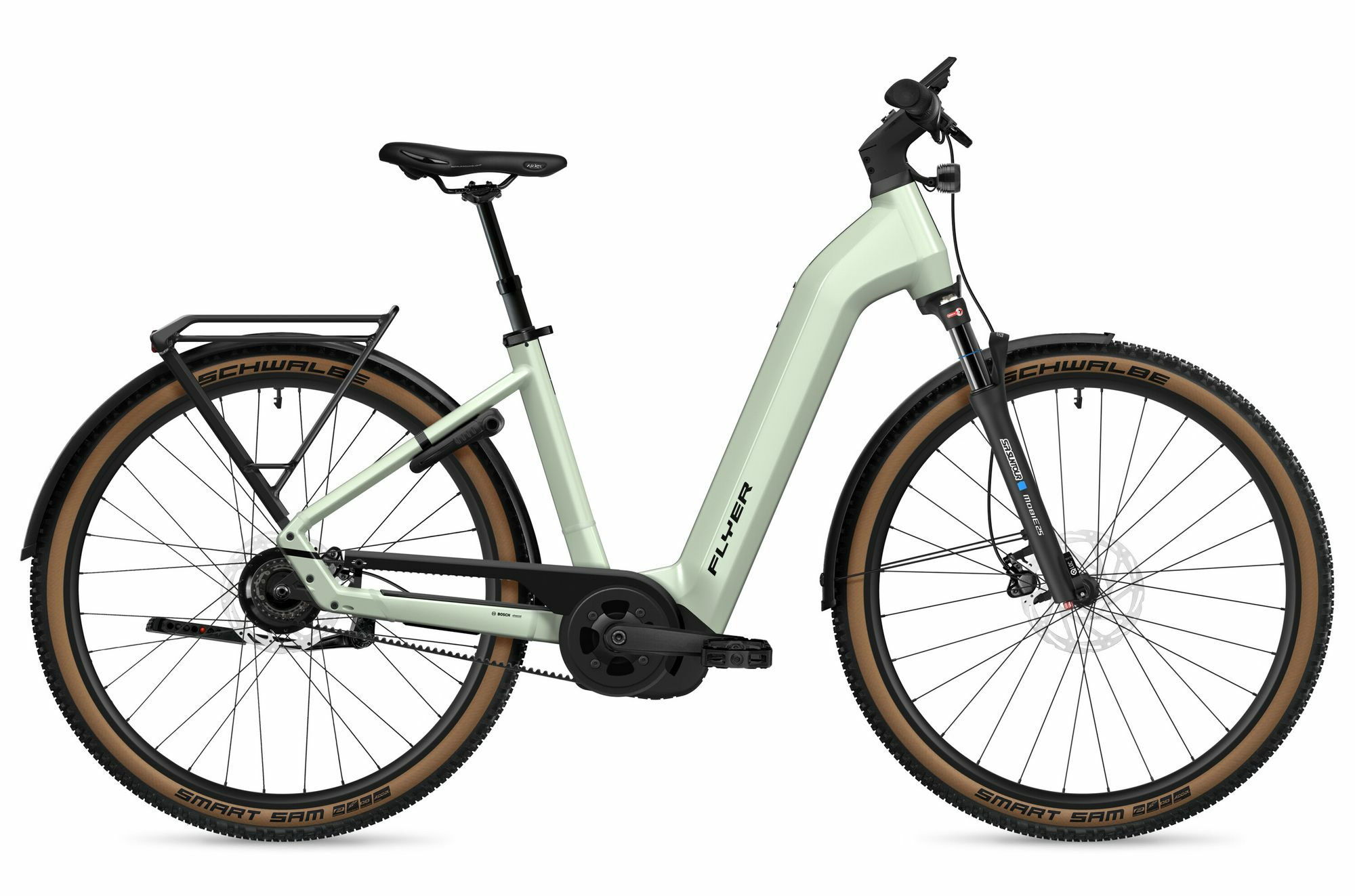 Bremssystem: Scheibenbremse, hydraulisch | Versandkosten: 2 | Rücktritt/Freilauf: Freilauf | Rahmenmaterial: Aluminium | Motorposition: Mittelmotor | Akkuposition: intube | Rahmengröße: S | Motorhersteller: Bosch | Bremsscheibe vorne (mm): 180 | Schaltungstyp: Nabenschaltung | Rahmenform: Wave | Bremsscheibe hinten (mm): 180 | Gabelhersteller: SR Suntour | Laufradgröße hinten: 29 | Laufradgröße vorne : 29 | Federung: luftgefedert | Federweg (mm): 75 | Lenker: Ergotec Ergo XXL, 700 mm, 16°, 30 mm | Kettenschutz: ja | Motorleistung (Nm): 85 | Maximales Gesamtgewicht (kg): 150 | Griffe: FLYER Comfort | Sattelstütze: FLYER Alloy, 30.9 mm x 350 mm | Felgen: Mach1 Trucky 30, 30 mm | Vorbau: FLYER CI Stem, 31.8 x 95 mm, adjustable angle | Reifen: SCHWALBE Smart Sam, 57-622, 29 x 2,35 | Bremse: TEKTRO HD-T280, 2 piston | Motor: Bosch Performance Line CX GEN4 (Smart System) | Speichen: DT SWISS Champion 2.0 x 294 mm | Schloss: Abus Amparo 4750 XL, Rahmen und Batterieschloss, gleichschliessend | Kurbelsatz: SAMOX EC40 | Schutzbleche: Sunny Wheel, 75 mm | Naben vorne: SHIMANO Deore HB-M6010BX CL, 32h | Ständer: URSUS Mooi | Sattelklemmung: FLYER FY-CV3, 30.9mm QR | Bremshebel: TEKTRO HD-T280 | Display: Bosch Intuvia 100 | Akku-Kapazität (Wh): 750 | Steuersatz: VP CI Tapered Set | Gepäckträger: FLYER Versatile Rack, MonkeyLoad, inkl. Federklappe | Gewicht ca. (kg): 32 | Akku: Bosch PowerTube 750 | Pedale: FLYER Wellgo | Gabel: SR Suntour Mobie25 Air, 15 x 100 mm | Kette: GATES CDX 128T | Sattel: SELLE ROYAL Ariel | Kassette: Gates CDX Rear Sprocket, 26T | Naben hinten: ENVIOLO TR CVP, 32h | Schaltung: ENVIOLO TR Mech | Hersteller-Farbe: Frosty Sage Gloss | Rückleuchte: Busch & Müller 2C | Farbe: Hellgrün | Schalthebel: ENVIOLO Twist Display Pro | Scheinwerfer: Herrmans MR8 | Schaltungshersteller: Enviolo | Ganganzahl: stufenlos