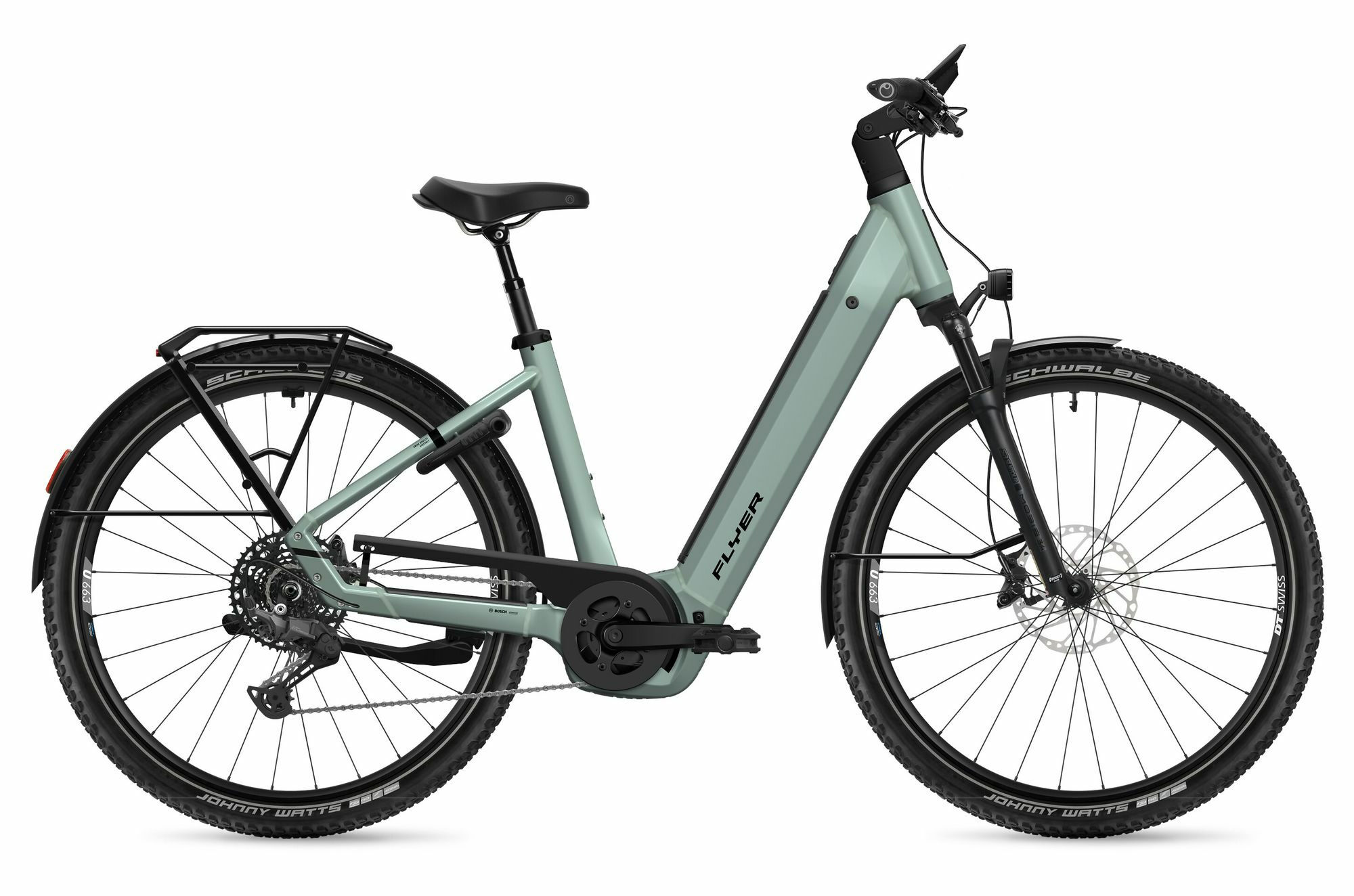 Bremssystem: Scheibenbremse, hydraulisch | Versandkosten: 2 | Rücktritt/Freilauf: Freilauf | Rahmenmaterial: Aluminium | Motorposition: Mittelmotor | Schaltungstyp: Kettenschaltung | Akkuposition: intube | Federweg (mm): 100 | Motorhersteller: Bosch | Schaltungshersteller: Shimano | Rahmenform: Wave | Bremsscheibe hinten (mm): 180 | Gabelhersteller: SR Suntour | Laufradgröße hinten: 29 | Laufradgröße vorne : 29 | Federung: luftgefedert | Felgen: DT Swiss U 663, 30 mm | Bremse: SHIMANO BR-MT420 4 Piston | Schutzbleche: HEBIE Alumee FLYER Design, 72 mm | Lenker: Ergotec Ergo XXL, 700 mm, 16°, 30 mm | Sattelstütze: Satori Xopic2 Suspension, 31.6 mm | Scheinwerfer: FLYER HL-2 | Kettenschutz: ja | Motorleistung (Nm): 85 | Akku-Kapazität (Wh): 800 | Bremshebel: SHIMANO BL-M4100 | Rückleuchte: FLYER RL-2 | Maximales Gesamtgewicht (kg): 150 | Griffe: FLYER Comfort | Bremsscheibe vorne (mm): 203 | Vorbau: FLYER CI Stem, 31.8 x 95 mm, adjustable angle | Kurbelsatz: SAMOX EC40 | Steuersatz: VP CI Tapered Set | Pedale: FLYER Wellgo | Farbe: Hellgrün | Display: Bosch Kiox 500 | Akku: Bosch PowerTube 800 | Gabel: SR Suntour Mobie34, 15 x 110 mm | Hersteller-Farbe: Green Shading Gloss | Motor: Bosch Performance Line CX GEN5 (Smart System) | Sattel: SELLE ROYAL ON Relaxed | Speichen: DT Swiss Champion, 2.0 x 292 mm | Gepäckträger: FLYER Sport Rack III, MonkeyLoad, Ortlieb QL 3.1, inkl. Federklappe | Schloss: Abus Amparo 4750 XL, frame & battery lock, gleichschliessend | Kassette: SHIMANO CS-LG400 CUES, 11 speed, 11-50t | Naben hinten: Formula FCL-435, 32h | Schalthebel: SHIMANO SL-U6000 CUES, 11 speed | Naben vorne: Formula CL-811, 32h | Ständer: Ursus Mooi+ U-Mount | Sattelklemmung: FY-CV3 38.6/30.9mm | Schaltung: SHIMANO Cues U6000, 11 speed | Gewicht ca. (kg): 34 | Ganganzahl: 11 | Rahmengröße: XL