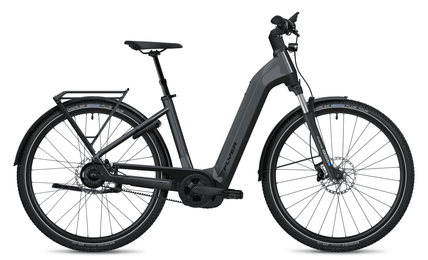 Flyer Gotour 5.43 CX – Cold Anthracite Gloss Das Flyer Gotour 5.43 CX in Cold Anthracite Gloss ist ein E-Bike für alle, die Wert auf Komfort, Langlebigkeit und harmonische Unterstützung legen. Mit seiner aufrechten Sitzposition, der robusten Nabenschaltung und dem leistungsstarken Bosch Performance Line CX Motor bietet es ideale Voraussetzungen für ausgedehnte Touren und den Alltagseinsatz. Der Bosch CX Motor liefert mit 85 Nm Drehmoment eine gleichmäßige und kräftige Unterstützung, während der 750 Wh Akku für ausdauernde Reichweite sorgt. Die wartungsarme Shimano Nexus 5-Gang-Nabenschaltung bietet zuverlässige Gangwechsel, perfekt abgestimmt auf die Motorleistung. Ergänzt wird das Ganze durch eine gefederte Gabel und eine bequeme Sattelstütze, die Unebenheiten spürbar abmildern. Bosch Performance Line CX Motor (Smart System) mit 85 Nm 750 Wh Akku für große Reichweite und lange Touren Wartungsarme Shimano Nexus 5-Gang-Nabenschaltung Hydraulische Scheibenbremsen für präzise Kontrolle Komfortable, aufrechte Sitzposition und ergonomische Griffe Schwalbe Marathon Plus Bereifung für Pannenschutz und Stabilität Integrierte Beleuchtung und MonkeyLoad-Gepäckträger Zulässiges Gesamtgewicht: 150 kg Gewicht: ca. 32 kg Mit dem Flyer Gotour 5.43 CX genießt du höchste Verlässlichkeit, mühelose Bedienung und erstklassigen Komfort – das ideale E-Trekkingbike für lange Strecken und tägliche Fahrten mit Stil.
