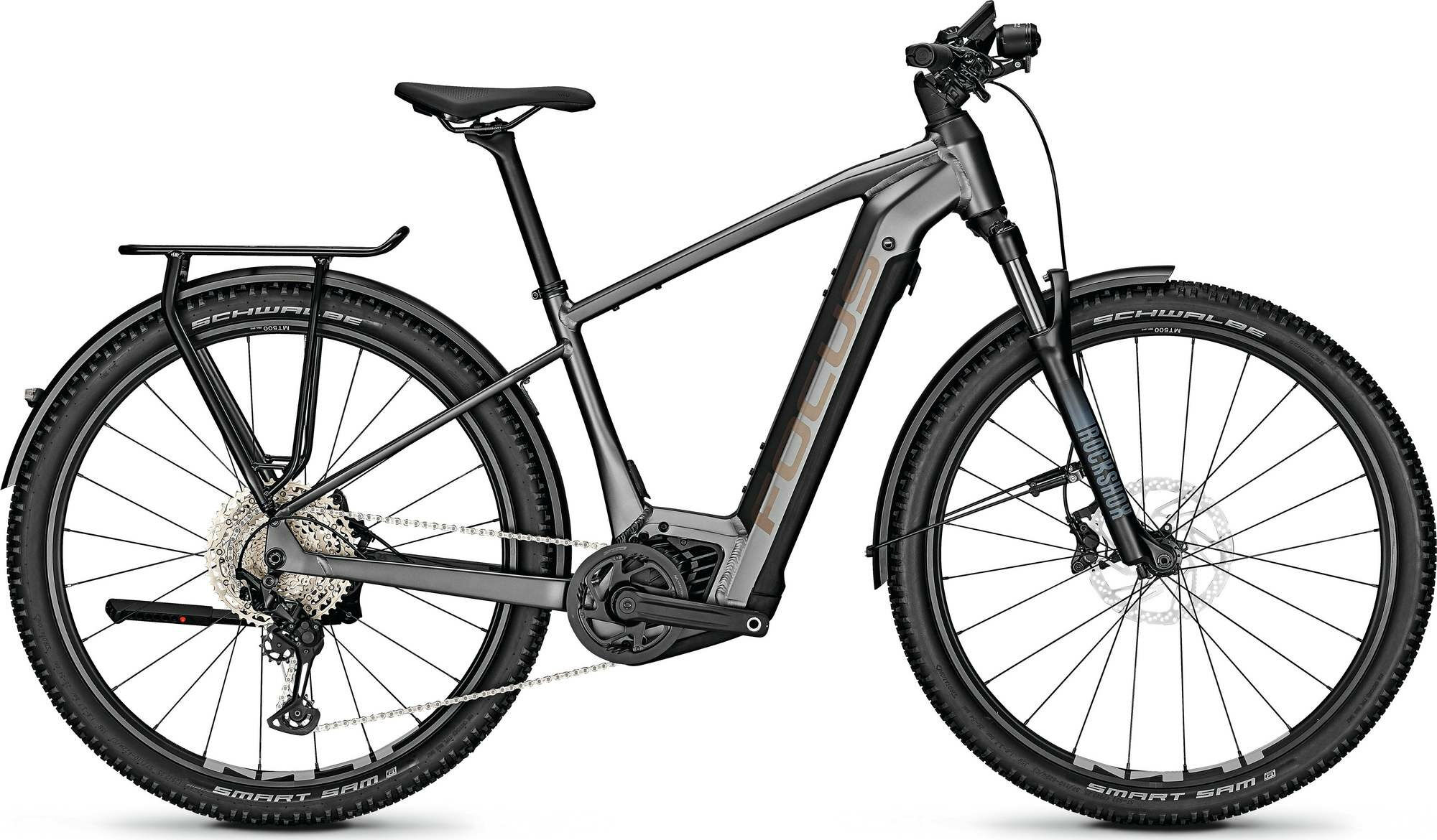 Versandkosten: 2 | Motorleistung (Nm): 85 | Rahmenform: Diamant | Rahmenmaterial: Aluminium | Bremssystem: Scheibenbremse | Motorposition: Mittelmotor | Federung: luftgefedert | Schaltungstyp: Kettenschaltung | Laufradgröße vorne : 29 | Schaltungshersteller: Shimano | Akkuposition: intube | Motorhersteller: Bosch | Gabelhersteller: SR Suntour | Maximales Gesamtgewicht (kg): 150 | Laufradgröße hinten: 29 | Akku-Kapazität (Wh): 625 | Bremsscheibe hinten (mm): 180 | Ganganzahl: 12 | Farbe: Schwarz | Rahmengröße: S | Bremsscheibe vorne (mm): 203 | Federweg (mm): 100 | Akku: Downtube, integrated Li-Ion 36 V/17,4 Ah | Pedale: MTB, with reflector | Kassette: Shimano Deore CS-M6100, 12-speed | Display: Bosch LED Remote + Kiox 300 | Kette: Shimano CN-LG50 | Schaltung: Shimano Deore XT M8100, 12-speed | Motor: Bosch Performance CX Smart, 85 Nm, 250 W | Schalthebel: Shimano Deore M6100, 12-speed | Sattel: Selle Royal Vivo | Schutzbleche: Büchel, aluminium, 60 mm, powder-coated | Sattelstütze: Aluminium, 31.6 mm | Lenker: Aluminium, 760 mm, flatbar, backsweep: 9°, 35,0 mm | Gepäckträger: Racktime Snap-It carrier, 2-leg, 25 kg max. load | Kurbelsatz: FSA CK-320, aluminium | Rückleuchte: Herrmans H-Trace Mini | Reifen: Schwalbe Smart Sam 2.25, 57-622 | Vorbau: FOCUS C.I.S. integrated, 60 mm, 30°, 35 mm, aluminium | Modell: AVENTURA² 6.9 | Bremse: Shimano MT420, 4-piston, hydraulic disc brake | Gabel: SR Suntour Raidon 34 LOR AIR, 110×15 mm | Hersteller-Farbe: Diamondblack | Laufradsatz: Shimano WH-MT501, 24-622, 15×110 mm / 12×148 mm | Bremshebel: Shimano BR-MT420 | Scheinwerfer: Litemove AE130, high-beam, 130 LUX