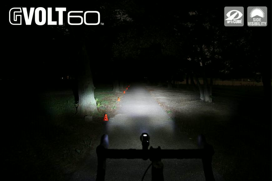 Die kompakte GVolt60 ist ein per USB aufladbares Frontlicht mit beeindruckenden 60 Lux und cleverster Ausleuchtung, die durch die Vereinigung vier verschiedener Optiken in nur einer kleiner Linse erreicht wurde.. Die 60 Lux werden von einer einzigen LED a