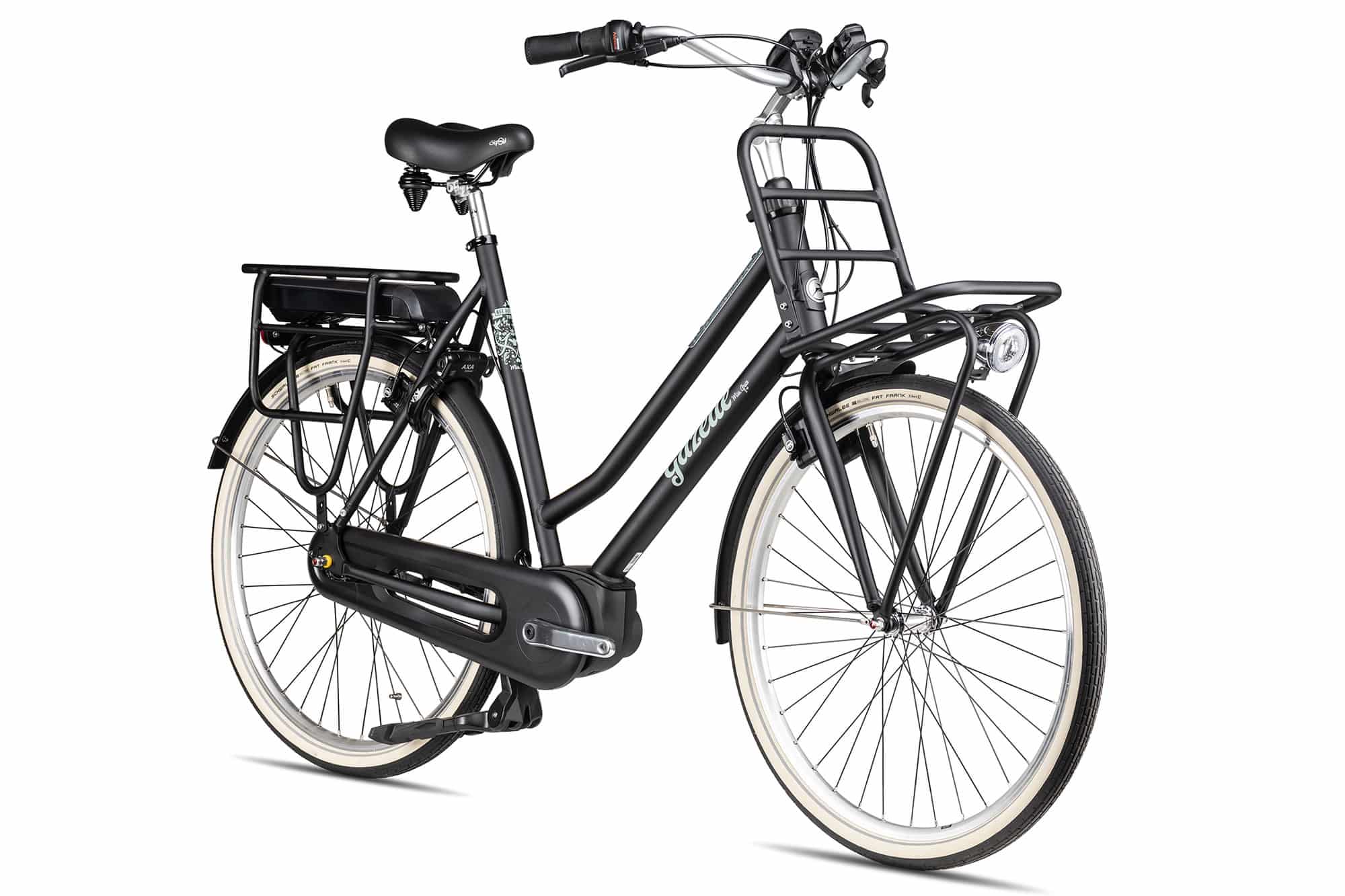 Dadurch dass der Akku platzsparend unter dem Gepäckträger integriert wurde, verfügt das Gazelle Miss Grace über eine angenehm stabile Gewichtsverteilung., Die rundum alltagstaugliche Ausstattung wird durch viele wertige Details wie eine hydraulische Magura HS11 Felgenbremse + Rücktrittbremse, das AXA Rahmenschloss oder die LED Lichtanlage abgerundet., Taschen und Einkaufskörbe finden somit auf dem Heckgepäckträger als auch auf dem Frontgepäckträger ihren Platz., Ein stylisches City-E-Bike mit Front-Gepäckträger, Bosch Active Line PLUS Motor und Rücktrittbremse: Das Gazelle Miss Grace E-Cityrad in der Ausstattungsvariante C7+ HMB R7H., Das stylische Gazelle Miss Grace C7+ HMB R7H E-Citybike, ist mit seiner wunderbaren Kombination aus Gazelle typischen Design, wartungsarmen Komponenten und einem angenehm unterstützenden Bosch-Antrieb eine moderne Alternative in der City., Das Bosch E-Paket des stylischen Gazelle City-Flitzers wird von dem