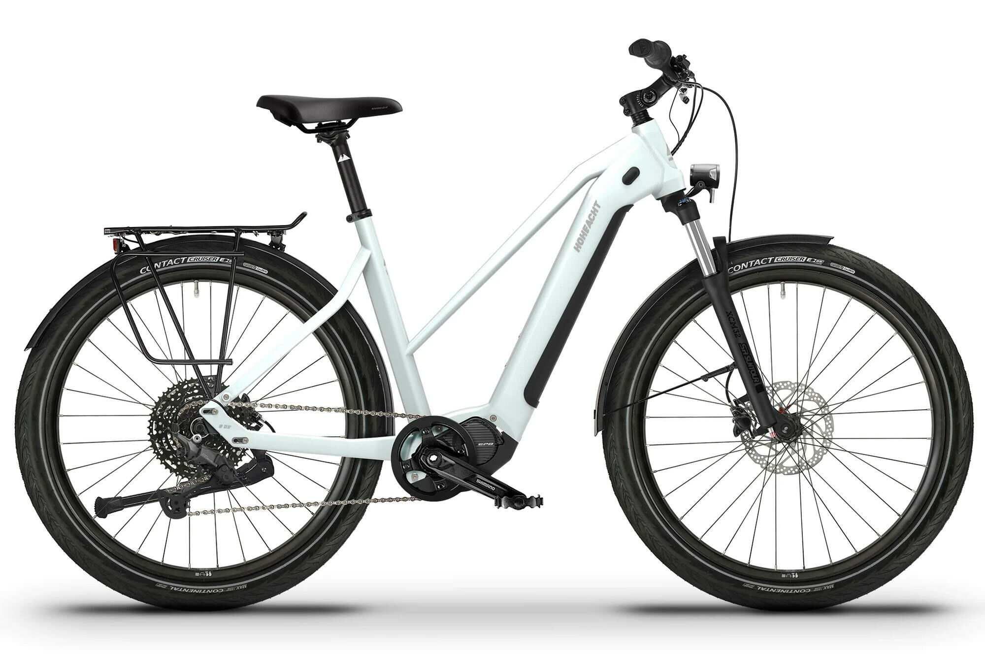 Versandkosten: 2 | Ganganzahl: 12 | Motorleistung (Nm): 85 | Rücktritt/Freilauf: Freilauf | Rahmenmaterial: Aluminium | Maximales Gesamtgewicht (kg): 150 | Bremssystem: Scheibenbremse | Motorposition: Mittelmotor | Schaltungstyp: Kettenschaltung | Schaltungshersteller: Shimano | Akkuposition: intube | Rahmengröße: L | Bremsscheibe vorne (mm): 180 | Display: Shimano Steps, SC-EN600, Bluetooth, ANT Private | Griffe: Herrmans, Line, 125 mm / 125 mm | Akku: Shimano Steps BT-EN806 | Kurbelsatz: Shimano Steps, SM-CRE80, 36T, Stahl/Alu / Shimano Steps, FC-EM600, 170mm | Lenker: Kalloy – HoheAcht, 31,8mm, Aluminium, schwarz | Rückleuchte: Herrmans, H-Cargo E-Bike 6-12 V, 4 LEDs, 0.6W, Standlicht, BR-12 Reflektor | Gepäckträger: AtranVelo, Tour 365 BS H-Cargo, 334 mm , 27 kg Zuladung | Schutzbleche: ChingChern, Aluminium, gepulvert | Laufradgröße hinten: 27,5 | Speichen: Mach1, Edelstahl, 2,0 mm, schwarz | Pedale: Marwi, SP-828 Black SBL, Aluminium mit PP | Bremsscheibe hinten (mm): 180 | Motorhersteller: Shimano | Laufradgröße vorne : 27,5 | Ständer: Ursus, R81 Wave, KSA 40 mm, rear | Gabelhersteller: SR Suntour | Akku-Kapazität (Wh): 630 | Felgen: Mach1, Trucky 30, 27,5“, Aluminium, schwarz | Federweg (mm): 100 | Gabel: SR Suntour XCM32 | Kette: YBN, S12e S2 | Motor: Shimano Steps DU-EP600 | Naben hinten: Formula, ECT-148S, Disc, 12 x 148 mm, industriegelagert, Boost | Sattelstütze: Kalloy – HoheAcht, Seatpost 2D, 31,6x 350mm, 10mm Offset, Alu | Scheinwerfer: Herrmans, H-Black MR8 E-Bike 6-12V, LED, 3.3W, 180lm, Reflektor | Bremshebel: Shimano, BL-MT200, Stahl, 3-Finger | Federung: stahlgefedert | Kassette: SRAM, Eagle, CS-PG-1210, 12-fach, 11-50 Zähne | Schaltung: Shimano Deore RD-M6100 | Naben vorne: Formula, CL-81, Disc, 15 x 100 mm, industriegelagert | Reifen: Schwalbe, Super Moto-X, 27.5“ x 2.4“ (62-584), Reflex | Bremse: Shimano BR-MT200 | Schalthebel: Shimano, Deore, SL-M6100-R, 12-fach, Gang-Anzeige | Hersteller-Farbe: Schneesturm | Farbe: Hellblau | Sattel: Selle Royal, Essenza Plus, Female | Schloss: ABUS, BLO SHI IT2 XPlus | Rahmenform: Trapez | Vorbau: Kalloy – HoheAcht, 31,8 mm, 95 mm, 0-60°, Aluminium, schwarz | Steuersatz: ACROS, zs44, zs56, industriegelagert, Stem Cap Angle SP-Connect | Gewicht ca. (kg): 25.5