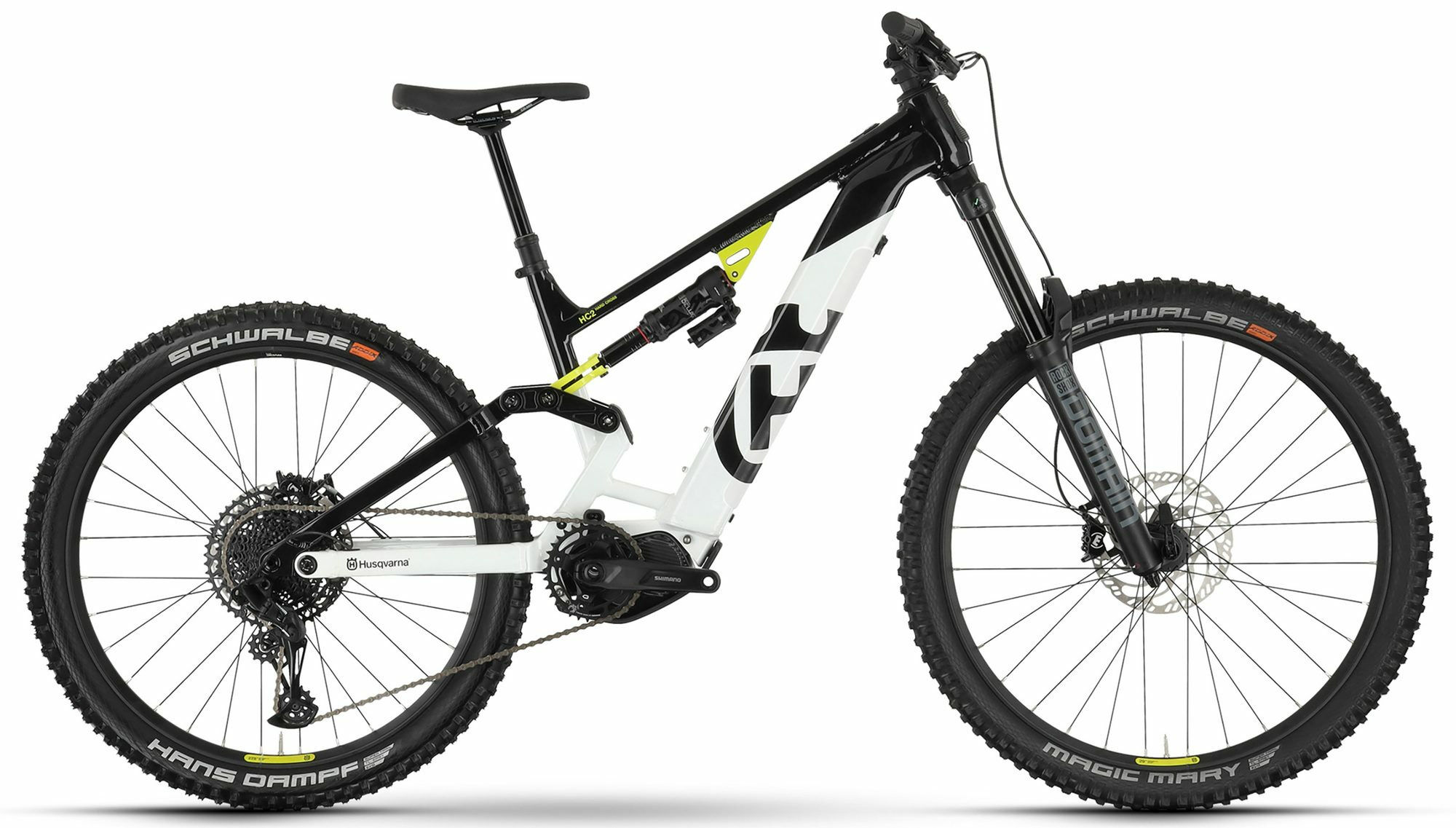 Versandkosten: 2 | Rücktritt/Freilauf: Freilauf | Rahmenmaterial: Aluminium | Bremssystem: Scheibenbremse | Motorposition: Mittelmotor | Federung: luftgefedert | Laufradgröße vorne : 29 | Farbe: Schwarz | Rahmengröße: M | Akkuposition: intube | Ganganzahl: 12 | Motorleistung (Nm): 85 | Gabelhersteller: RockShox | Rahmenform: Diamant | Schaltungstyp: Kettenschaltung | Bremsscheibe vorne (mm): 200 | Schaltungshersteller: SRAM | Laufradgröße hinten: 27,5 | Bremsscheibe hinten (mm): 200 | Maximales Gesamtgewicht (kg): 130 | Akku-Kapazität (Wh): 630 | Vorbau: Husqvarna 35, 0°, Ahead, Länge: 50 mm | Akku: Core S1+ | Kurbelsatz: Shimano FC-EM600, Alu geschmiedet, Shimano EP24, SRAM X-Sync Eagle, 34T | Naben hinten: Husqvarna DA210R, 6-Loch, 12 x 148 mm, Steckachse | Naben vorne: Husqvarna DA210F, 6-Loch, 15 x 110 mm, Steckachse | Schaltung: SRAM SX Eagle, 12-Gang | Lenker: Husqvarna Riser, 35 mm, Breite: 780 mm, Sweep: 9°, Rise: 20 mm | Gabel: RockShox Domain R, DebonAir, tapered | Reifen: Schwalbe Magic Mary/Hans Dampf, Evolution, 62-622, 29 x 2,4“/65-584, 27,5 x 2,6“ | Felgen: Ryde Disc30/35, geöst, Tubeless Ready | Dämpfer: RockShox Super Deluxe Select+, 230×65 mm, 170mm travel | Sattelstütze: Husqvarna Pro, 31,6 mm, Dropper Post | Sattel: Husqvarna MTB | Motor: Shimano EP6 | Gewicht ca. (kg): 25.1 | Griffe: Husqvarna MTB, Schraubgriffe | Bremse: SRAM DB8, 4-Kolben | Pedale: Husqvarna, Aluminium | Kassette: SRAM PG-1230, 11-50T | Schalthebel: SRAM SX Eagle, Single Click | Motorhersteller: Shimano | Steuersatz: Acros ICR, blocklock, ZS56/ZS56 | Hersteller-Farbe: black / white | Kette: SRAM SX Eagle | Display: Shimano SC-EN600, LCD-Display, Bluetooth | Federweg (mm): 180