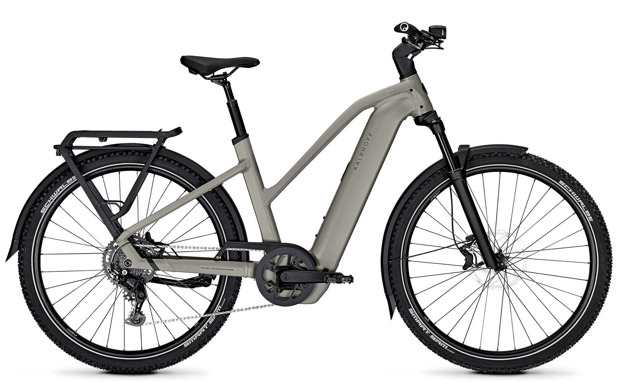 Bremssystem: Scheibenbremse, hydraulisch | Versandkosten: 2 | Akku-Kapazität (Wh): 800 | Motorhersteller: Bosch | Rücktritt/Freilauf: Freilauf | Rahmenmaterial: Aluminium | Motorposition: Mittelmotor | Federung: luftgefedert | Laufradgröße hinten: 29 | Schaltungstyp: Kettenschaltung | Farbe: Grau | Laufradgröße vorne : 29 | Schaltungshersteller: Shimano | Akkuposition: intube | Bremsscheibe vorne (mm): 203 | Rahmengröße: S | Gabelhersteller: SR Suntour | Gepäckträger: MIK HD Rear Carrier, max. load 27kg | Kassette: Shimano Cues Linkglide | Sattelstütze: Aluminium, suspension | Motorleistung (Nm): 100 | Rückleuchte: Trelock COB Line, with brake light, LED | Speichen: Niro | Kurbelsatz: Aluminium | Motor: Bosch Performance Line CX Smart System | Kette: Shimano CN-LG500 | Display: Bosch Purion 200 color display with walk assist | Ganganzahl: 9 | Akku: Bosch PowerTube 800 | Schutzbleche: Aluminium, extra long, with splash guard | Naben hinten: Shimano TC500, 12x148mm thru axle | Vorbau: Cockpit 2.0, adjustable, 65mm | Gabel: SR Suntour Mobie34, 110×15 mm thru axle | Felgen: Mach1 Trucky, Aluminium | Bremse: Tektro T535, 4-Piston | Naben vorne: Shimano TC500, 15×100 mm Steckachse | Bremsscheibe hinten (mm): 180 | Hersteller-Farbe: moonstonegrey matt | Griffe: Ergon GS10 Evo | Lenker: Allroad Riser | Scheinwerfer: Herrmans MR9, LED | Reifen: Schwalbe Smart Sam Black Reflex 57-622 | Modell: ENTICE 5+ MOVE | Schaltung: Shimano Cues, 9-speed | Rahmenform: Trapez | Sattel: Selle Royal Vivo | Pedale: MTB Flat, aluminium, with reflector | Maximales Gesamtgewicht (kg): 170 | Federweg (mm): 120