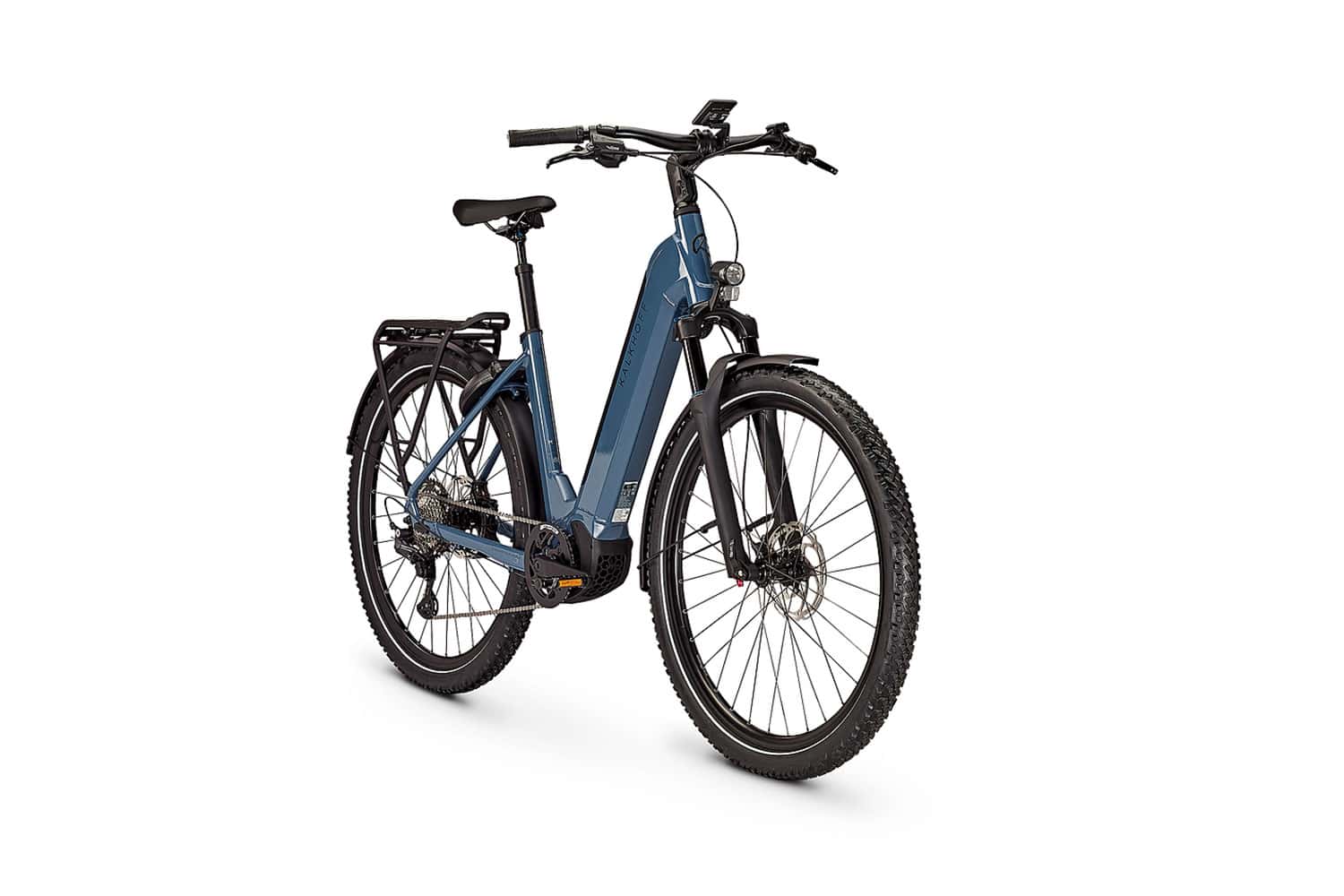 Das elektrische Antriebspaket des Kalkhoff Entice 5 Move+ kombiniert den stärksten Bosch Motor (CX) mit dem großen 625 Wh Akku und dem feinen Intuvia 100 Display., Natürlich ist das Kalkhoff Entice 5 Move+ Trekking-E-Bike nach StVZO verkehrssicher ausgerüstet und dank ab Werk montiertem Rahmenschloss und MIK Systemgepäckträger, bekommst du hier einen hohen zusätzlichen Alltagsnutzen., Das + steht hierbei für ein maximal mögliches Gesamtgewicht von 170 kg., Das moderne Kalkhoff Entice 5 Move+ Trekking-E-Bike mixt On- und Offroad-Eigenschaften., Dazu bietet dir die hochwertige Shimano Deore Schaltung 10 Übersetzungsstufen um jederzeit angenehm zu pedalieren., Ein klasse Antriebspaket für anspruchsvolle Fahrten mit vielen Steigungen., So dürftest du keine Probleme mit vollen Packtaschen, Anhänger und Co., bekommen., Mit der SR Suntour Mobie34 Luft-Federgabel, den hydraulischen Tektro 4-Kolben Scheibenbremsen und der breiten CST Gripper