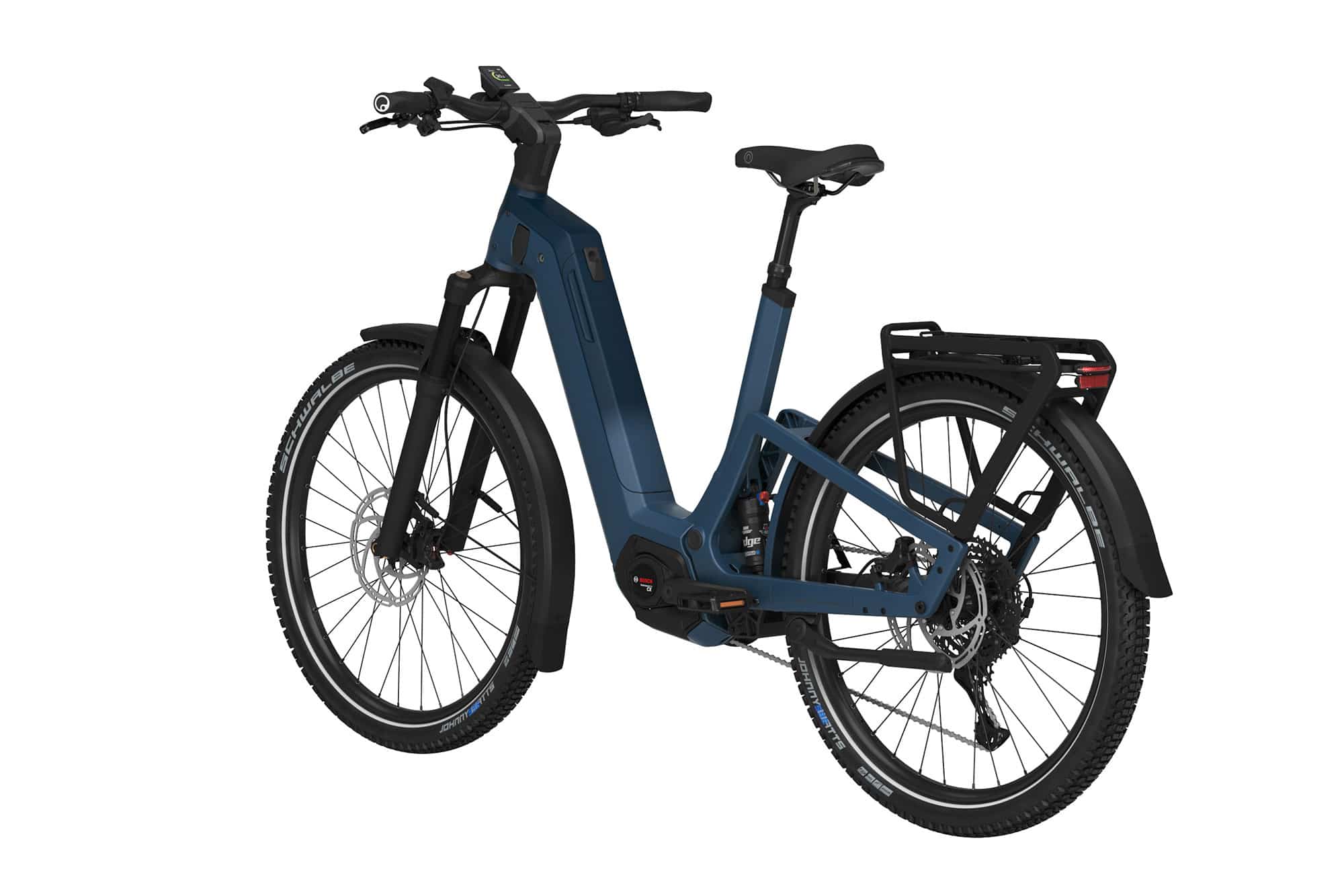 Der Akku des Kalkhoff Entice 7+ Advance ist leicht zugänglich und kann auch außerhalb des E-Bikes geladen werden., Ein smarter Bosch Kiox 300 Bordcomputer liefert dir alle wichtigen Informationen auf einen Blick., Das vollgefederte Kalkhoff Entice 7+ Advance Trekking-E-Fully verbindet Komfort und Leistung auf hervorragende Weise, Das hochwertige Kalkhoff Entice 7+ Advance E-SUV Bike bietet eine bemerkenswerte Kombination aus Komfort und Kraft, perfekt für alle, die nach einem komfortablen E-Bike suchen, das sowohl für entspannte Alltagsfahrten als auch für anspruchsvollere Touren geeignet ist., Für eine präzise Bremsung sorgen die hydraulischen 203 mm Tektro Scheibenbremsen, während die breite Schwalbe Bereifung für guten Grip und leichte Offroadperformance sorgt., Die Kombination aus einem Bosch Performance Line CX Motor und einem großen 800 Wh PowerTube-Akku gibt dir elektronische Tretkraftunterstützung, um auch anspruchsvolle