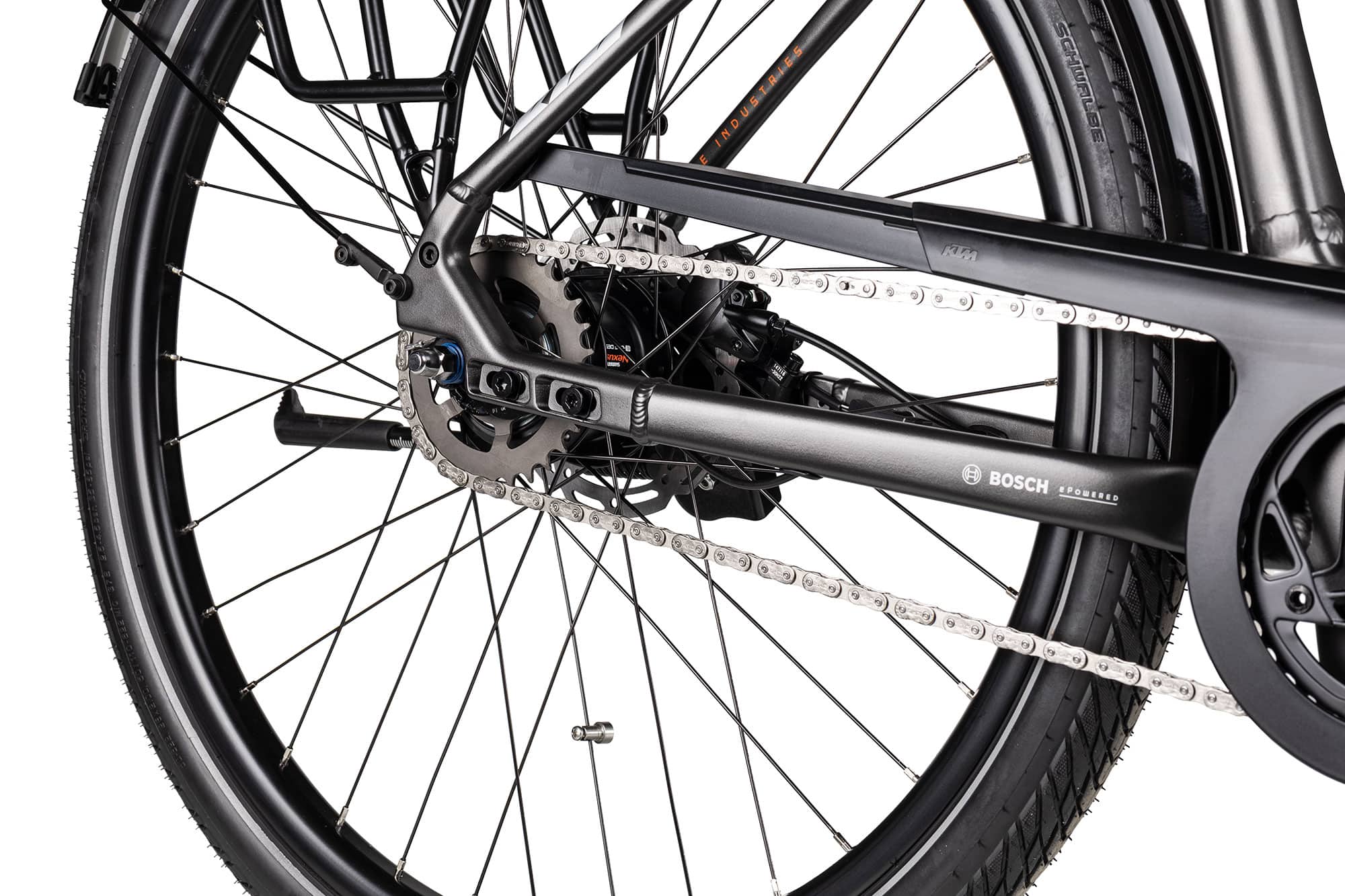 Das Gesamtgewicht des Macina City 610 XL E-Bikes gibt KTM mit 170 kg an., Gebremst wird das Macina City 610 XL von hydraulischen Scheibenbremsen aus dem Hause Tektro., Die langlebige und wartungsarme Nexus Nabenschaltung von Shimano bietet dir mit ihren 5 Gängen genügend Schaltleistung., Und unter dem Selle Royal Sattel, liefert die by., Schulz Parallelogramm-Sattelstütze eine erheblich bessere Federleistung gegenüber klassischen, gefederten Sattelstützen., Für das Macina City 610 XL City-E-Bike, kombiniert KTM ein kraftvolles Bosch Antriebspaket aus dem leistungsstarken Performance Line CX Mountainbike-Motor, einem 625 Wh Akku und dem gut ablesbaren Intuvia 100 Bordcomputer., Somit ist es ideal für größere und/oder schwerere Fahrer geeignet., Und damit du auch unter Last sicher und komfortabel reisen kannst, sind stimmige und Leistungsstarke Komponenten mit an Bord., Das KTM Macina City 610 XL E-Bike bietet dir hohen Komfort,