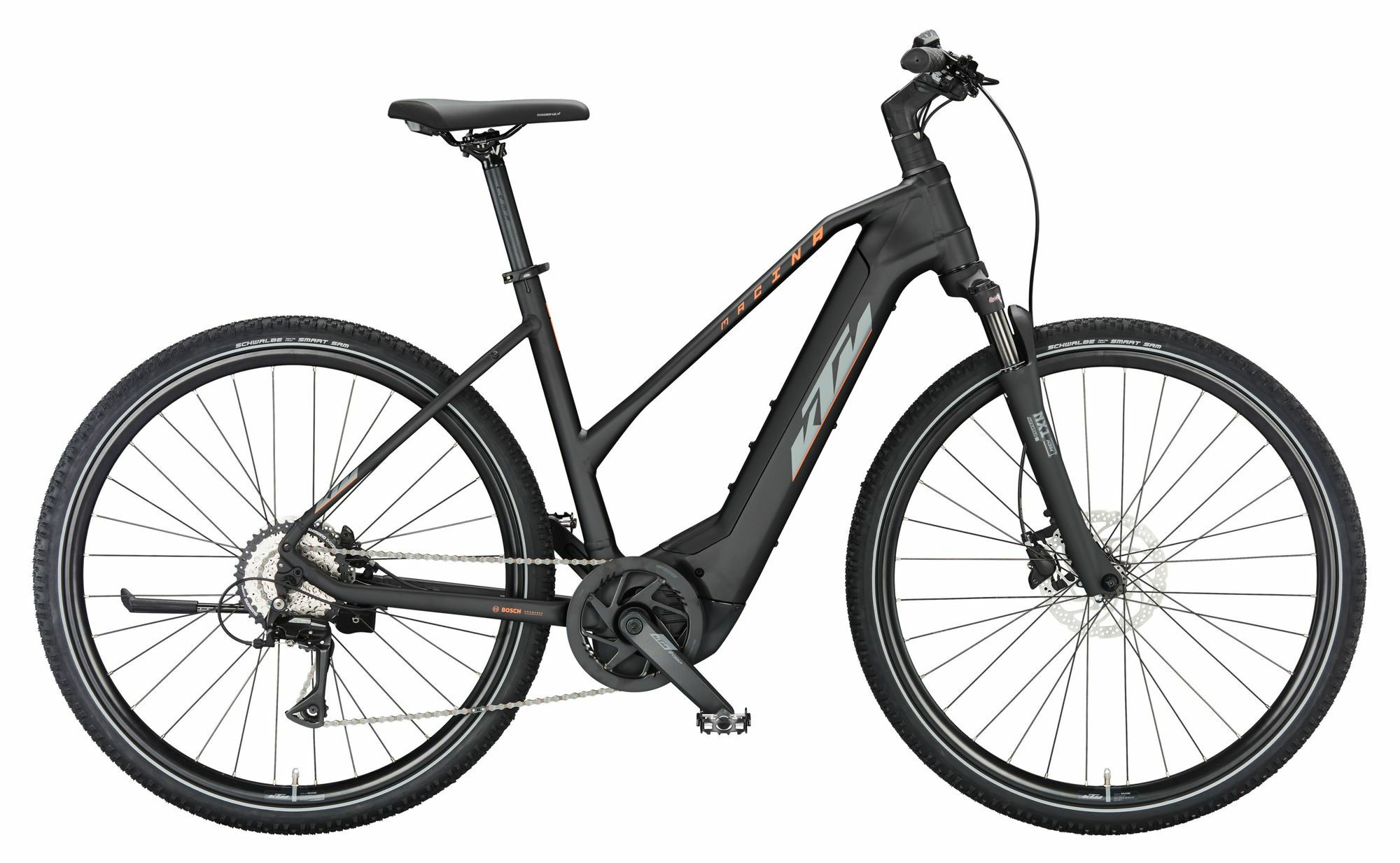 Motor: Bosch Performance CX Gen4 Smart System | Versandkosten: 2 | Federung: stahlgefedert | Steuersatz: Acros AICR internal 1.1/8″-1.5″ angle limit | Motorleistung (Nm): 85 | Motorhersteller: Bosch | Kurbelsatz: KTM E-COMP ISIS 170mm Q16 | Rücktritt/Freilauf: Freilauf | Rahmenmaterial: Aluminium | Bremsscheibe hinten (mm): 180 | Bremssystem: Scheibenbremse | Motorposition: Mittelmotor | Schaltungstyp: Kettenschaltung | Gabelhersteller: SR Suntour | Schaltungshersteller: Shimano | Bremsscheibe vorne (mm): 160 | Akkuposition: intube | Ständer: KTM 28″ adjustable | Sattelklemmung: KTM Line JD-SC99 – 34,9mm | Rahmenform: Trapez | Rahmengröße: 46 cm | Laufradgröße hinten: 28 | Bremse: Shimano MT200 / MT200 2-Piston | Laufradgröße vorne : 28 | Federweg (mm): 63 | Display: Bosch LED remote SMART SYSTEM | Akku-Kapazität (Wh): 500 | Griffe: KTM Comp Ergo Lock | Farbe: Schwarz | Reifen: Schwalbe Smart Sam 47-622 RT | Akku: Bosch PowerTube 500 Smart System | Schalthebel: Shimano Altus M315-8 display | Reifen hinten: Schwalbe Smart Sam 47-622 RT | Lenker: KTM COMP II low rizer 640mm | Gewicht ca. (kg): 23.2 | Ganganzahl: 8 | Kette: Shimano HG40-8 | Sattel: Selle Royal Essenza Athletic | Vorbau: KTM +20° ICR | Gabel: Suntour NX1 coil LO 63mm | Hersteller-Farbe: black matt (grey+orange) | Sattelstütze: KTM COMP II 30.9/350 | Pedale: MTB-Pedal VP-195E alloy | Maximales Gesamtgewicht (kg): 142 | Reifen vorne: Schwalbe Smart Sam 47-622 RT | Schaltung: Shimano Acera M3020-8 SGS