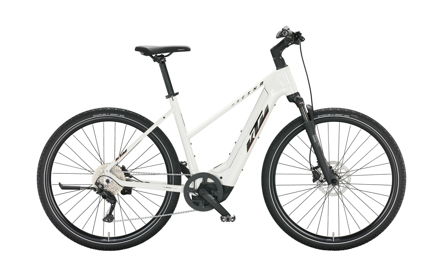 KTM MACINA CROSS 720 metallic white (black+orange) 28″ 750 Wh Trapez