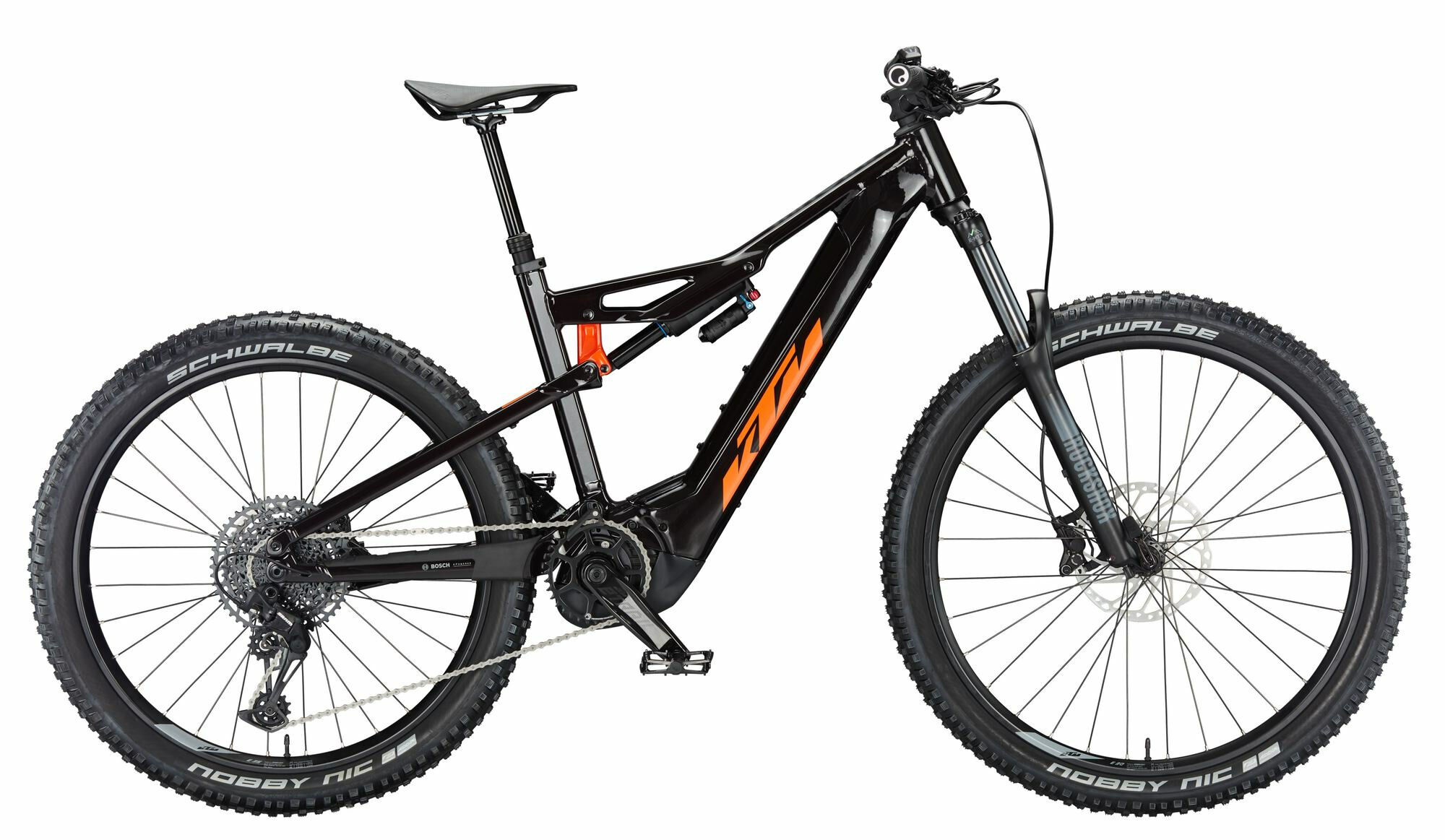 Versandkosten: 2 | Ganganzahl: 12 | Motorleistung (Nm): 85 | Motorhersteller: Bosch | Gabelhersteller: RockShox | Rahmenform: Diamant | Rücktritt/Freilauf: Freilauf | Rahmenmaterial: Aluminium | Bremssystem: Scheibenbremse | Motorposition: Mittelmotor | Federung: luftgefedert | Schaltungstyp: Kettenschaltung | Laufradgröße vorne : 29 | Bremsscheibe hinten (mm): 203 | Akkuposition: intube | Akku-Kapazität (Wh): 750 | Bremsscheibe vorne (mm): 180 | Laufradgröße hinten: 27,5 | Farbe: Schwarz | Gewicht ca. (kg): 27.6 | Schaltungshersteller: SRAM | Federweg (mm): 160 | Display: Bosch LED remote SMART SYSTEM | Reifen: Schwalbe Nobby Nic Perf. Folding 65-622/70-584 | Motor: Bosch Performance CX Gen4 Smart System | Akku: Bosch PowerTube 750 Smart System | Reifen vorne: Schwalbe Nobby Nic Perf. Folding 65-622 | Sattelklemmung: KTM Line JD-SC140A – 35,0mm | Bremse: Shimano M4100 / MT420 4-Piston | Steuersatz: Acros AICR internal 1.1/8″-1.5″ angle limit | Reifen hinten: Schwalbe Nobby Nic Perf. Folding 70-584 | Sattel: Selle Italia Model-X Flow | Gabel: RockShox 35 Silver TK 29″ 160mm 15×110 taper | Dämpfer: Suntour Tri-Air 3CR 3-Pos 250×70 | Kurbelsatz: KTM E-TRAIL ISIS 160mm Q16 | Hersteller-Farbe: flaming black (orange) | Kette: SRAM NX Eagle 12s | Vorbau: KTM TEAM II Trail35 | Pedale: MTB-Pedal flat VPE-527 alloy | Schaltung: SRAM SX Eagle 12speed | Lenker: KTM COMP II Trail35 rizer15 780mm | Schalthebel: SRAM SX Eagle singleClick | Sattelstütze: KTM COMP II dropper internal | Griffe: Ergon GA20 | Maximales Gesamtgewicht (kg): 147 | Rahmengröße: 53 cm