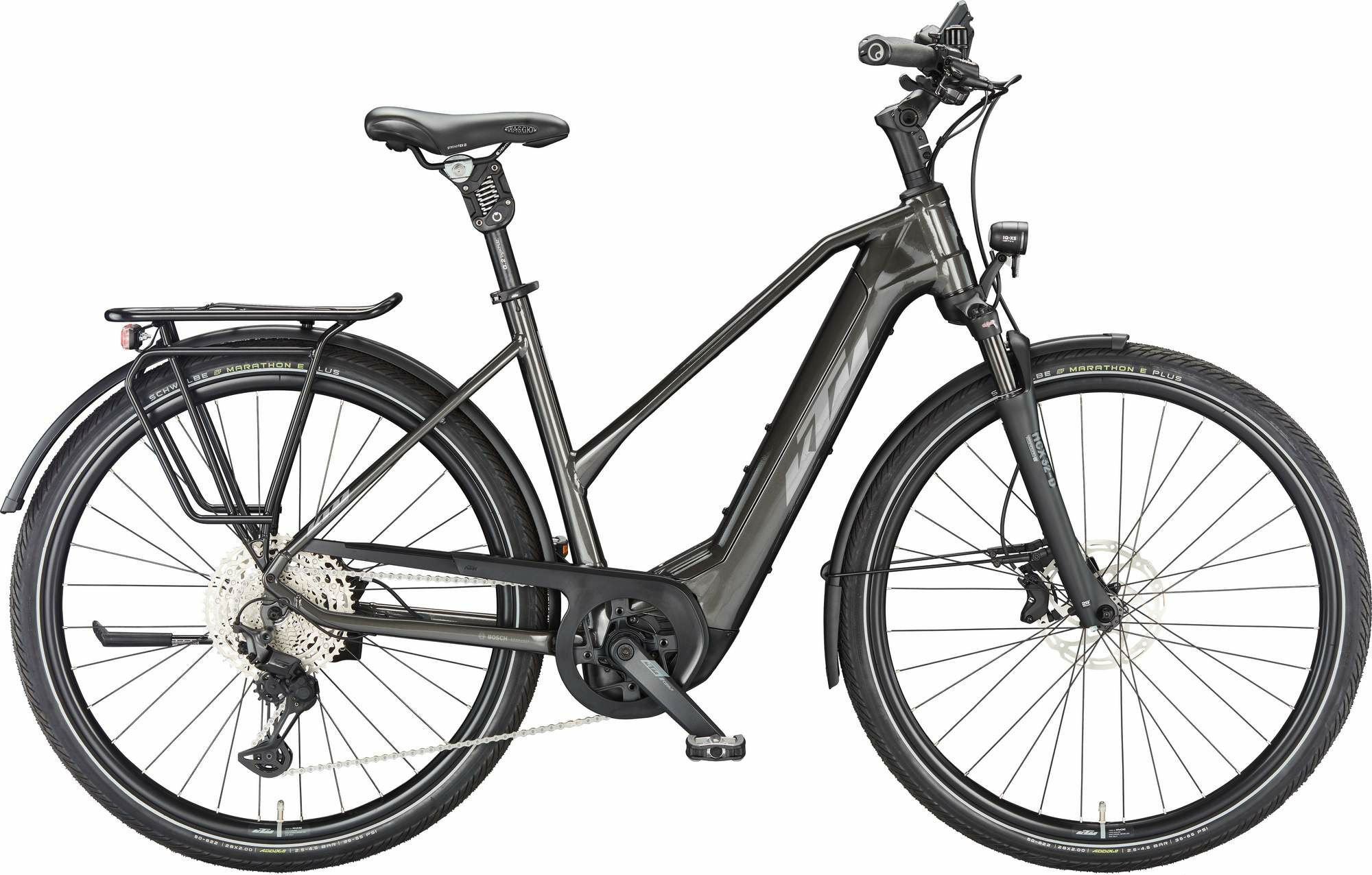 Versandkosten: 2 | Motorhersteller: Bosch | Rahmenform: Trapez | Rücktritt/Freilauf: Freilauf | Rahmenmaterial: Aluminium | Bremsscheibe hinten (mm): 180 | Bremsscheibe vorne (mm): 180 | Bremssystem: Scheibenbremse | Motorposition: Mittelmotor | Schaltungstyp: Kettenschaltung | Schaltungshersteller: Shimano | Akkuposition: intube | Motorleistung (Nm): 85 | Ganganzahl: 11 | Federung: luftgefedert | Akku-Kapazität (Wh): 750 | Laufradgröße hinten: 28 | Gabelhersteller: SR Suntour | Laufradgröße vorne : 28 | Maximales Gesamtgewicht (kg): 170 | Farbe: Anthrazit | Federweg (mm): 63 | Motor: Bosch Performance CX Gen4 Smart System | Akku: Bosch PowerTube 750 Smart System | Steuersatz: Acros AICR internal 1.1/8″-1.5″ angle limit | Display: Bosch LED remote / KIOX 300 TFT Display SMART SYSTEM | Pedale: Trekking-Pedal VP-616 anti-slip | Kurbelsatz: KTM E-COMP ISIS 170mm Q16 | Schutzbleche: SKS A55K 55mm | Griffe: Ergon GP1 SD | Rückleuchte: B&M Toplight 2C LED | Ständer: KTM 28″ adjustable | Sattelklemmung: KTM Line JD-SC99 – 34,9mm | Schaltung: Shimano Deore XT M8130-11 LG shadow+ | Kette: KMC e11 Sport EPT e-bike | Schalthebel: Shimano Deore XT M8130-11 LG | Rahmengröße: 51 cm | Gepäckträger: KTM tour (snap-it 1.0) | Bremse: Tektro TKD-139 / HD-E730 4-Piston | Reifen: Schwalbe Marathon E-Plus Perf. DualGuard 50-622 | Sattelstütze: bySchulz G.2 ST suspension 30.9/350 | Scheinwerfer: B&M Lumotec IQ-XS LED 80Lux | Gewicht ca. (kg): 28.8 | Gabel: Suntour NCX32-D coil LO 63mm (Heay Duty) | Reifen vorne: Schwalbe Marathon E-Plus Perf. DualGuard 50-622 | Vorbau: Ergotec Swell RE70 adjust. | Reifen hinten: Schwalbe Marathon E-Plus Perf. DualGuard 50-622 | Lenker: Ergotec Lady Town GH16 630mm | Sattel: Selle Royal Viaggio HRC | Hersteller-Farbe: machine grey (silver+black)