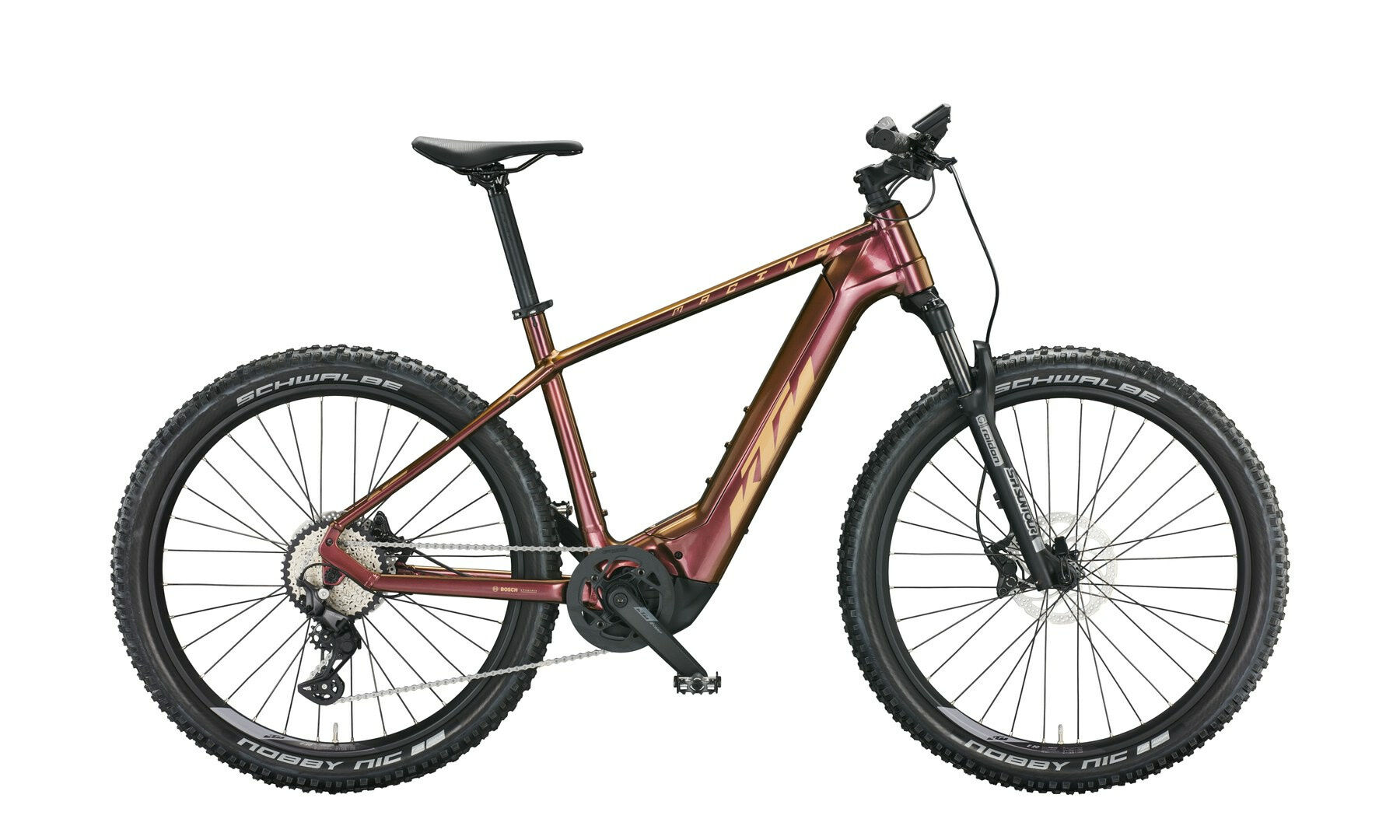Laufradgröße hinten: 27,5 | Motorleistung (Nm): 85 | Rahmenform: Diamant | Rahmenmaterial: Aluminium | Bremsscheibe hinten (mm): 180 | Bremsscheibe vorne (mm): 180 | Bremssystem: Scheibenbremse | Motorposition: Mittelmotor | Federung: luftgefedert | Schaltungstyp: Kettenschaltung | Gabelhersteller: SR Suntour | Akkuposition: intube | Versandkosten: 2 | Speichen: DT Champion 2.0 black | Motorhersteller: Bosch | Ganganzahl: 10 | Schaltungshersteller: Shimano | Kurbelsatz: KTM COMP ISIS 170mm Q16 | Sattelklemmung: KTM Line JD-SC99 – 34,9mm | Schalthebel: Shimano Deore M5130-10 LG display | Kette: Shimano LG500 | Schaltung: Shimano Deore M5130-10 LG shadow+ | Akku-Kapazität (Wh): 750 | Laufradgröße vorne : 27,5 | Farbe: Bronze | Federweg (mm): 100 | Griffe: KTM Comp Lock | Gewicht ca. (kg): 24 | Sattel: KTM Line Sport | Gabel: Suntour Raidon 34 Air 27.5″ LOR 100mm 15×110 taper | Naben vorne: Shimano MT410B CL 32H 110-15TA | Felgen: Ambrosio E30 Trail 32H 584x30TC | Pedale: MTB-Pedal VP-195E alloy | Steuersatz: Acros AICR internal 1.1/8>1.5″ angle limit | Sattelstütze: KTM Comp 30.9/350 | Motor: Bosch PERFORMANCE CX Gen.4 SMART SYSTEM – 25km/h / 85Nm | Display: Bosch KIOX TFT Display SMART SYSTEM | Akku: Bosch PowerTube 750Wh SMART SYSTEM hor. | Naben hinten: Shimano MT400B CL 32H 148-12TA | Bremse vorne: Shimano MT401 / MT420 4-Piston | Bremse: Shimano MT401 / MT420 4-Piston | Bremse hinten: Shimano MT401 / MT420 4-Piston | Vorbau: KTM Team MTB 7° | Rahmengröße: 43 cm | Hersteller-Farbe: sunset (gold) | Reifen hinten: Schwalbe Nobby Nic Perf. Folding 65-584 | Reifen vorne: Schwalbe Nobby Nic Perf. Folding 65-584