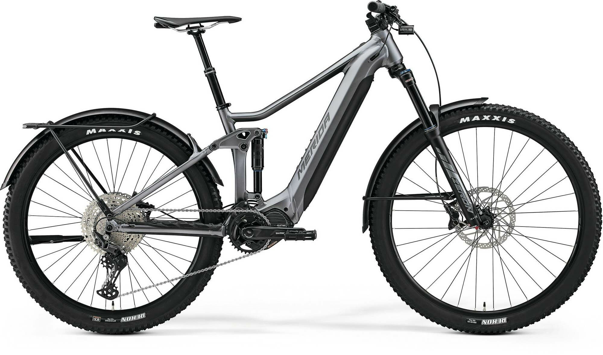 Versandkosten: 2 | Laufradgröße hinten: 27,5 | Rahmenform: Diamant | Ganganzahl: 11 | Rahmenmaterial: Aluminium | Motorposition: Mittelmotor | Federung: luftgefedert | Schaltungstyp: Kettenschaltung | Laufradgröße vorne : 29 | Schaltungshersteller: Shimano | Bremsscheibe hinten (mm): 203 | Akkuposition: intube | Bremsscheibe vorne (mm): 203 | Rahmengröße: XL | Gabelhersteller: SR Suntour | Motorleistung (Nm): 85 | Motorhersteller: Shimano | Bremssystem: Scheibenbremse | Akku-Kapazität (Wh): 750 | Naben hinten: Shimano MT400-B | Naben vorne: Shimano MT400-B | Federweg (mm): 140 | Farbe: Silber | Scheinwerfer: Herrmans H-Cargo integrated in MERIDA MIK carrier | Hersteller-Farbe: Silk Dark Silver | Gabel: Suntour ZERON 35-Boost LOR | Griffe: MERIDA EXPERT EC | Schalthebel: Shimano Deore M5100 11 | Gepäckträger: MERIDA MA006 | Steuersatz: MERIDA-8152 | Innenlager: included | Schutzbleche: Fender:FA311-70A / 75E3 with SW803V-70 / 75, fender stay MA007, alloy rail | Reifen: MAXXIS REKON/MAXXIS REKON | Bremse: Shimano M4100 | Kurbelsatz: Shimano FCEM600 | Motor: Shimano EP8 | Vorbau: MERIDA EXPERT eTRII | Reifen hinten: MAXXIS REKON | Bremshebel: Shimano M4100 | Rückleuchte: LEZYNE E-BIKE POWER STVZO E115, reverse MERIDA Custom Mount+9! | Sattel: MERIDA EXPERT CC | Kassette: Shimano M5100 | Lenker: MERIDA EXPERT eTR | Akku: Simplo Internal Battery | Speichen: Black stainless | Pedale: VP VPE-537 | Reifen vorne: MAXXIS REKON | Schaltung: Shimano Deore RDM5100 11 | Display: Shimano SC-E5003A | Felgen: MERIDA COMP TR | Kette: KMC e11S EPT | Sattelstütze: MERIDA COMP TR