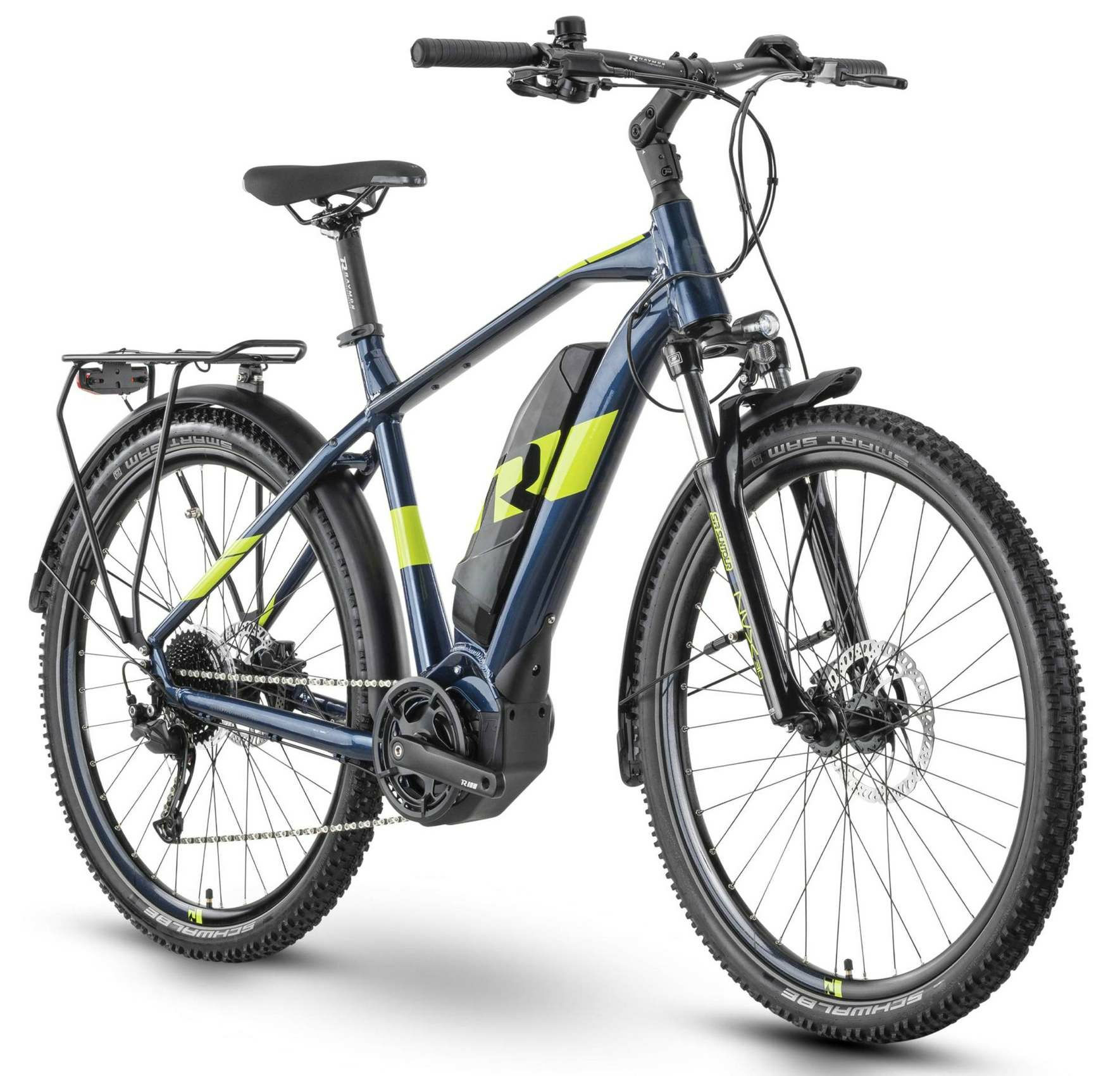 Versandkosten: 2 | Akkuposition: ontube | Rahmenmaterial: Aluminium | Bremsscheibe vorne (mm): 180 | Motorposition: Mittelmotor | Bremssystem: Scheibenbremse, hydraulisch | Rücktritt/Freilauf: Freilauf | Motorhersteller: Yamaha | Gabelhersteller: SR Suntour | Rahmengröße: L | Federung: stahlgefedert | Rahmenform: Diamant | Ganganzahl: 9 | Schaltungstyp: Kettenschaltung | Laufradgröße hinten: 27,5 | Laufradgröße vorne : 27,5 | Maximales Gesamtgewicht (kg): 130 | Bremsscheibe hinten (mm): 160 | Bremse: Tektro HD-T275 | Reifen: Schwalbe Smart Sam, Active, Reflex, 54-584, 27.5×2.1 | Schaltungshersteller: Tektro | Motor: Yamaha PW-TE, 250 W | Gabel: SR SUNTOUR NVX | Hersteller-Farbe: dark blue/limegreen gloss | Akku: Yamaha DT500, 36 V | Akku-Kapazität (Wh): 500 | Gepäckträger: R Raymon Tour, CarryMore, 15 kg belastbar | Gewicht ca. (kg): 24.1 | Scheinwerfer: AXA Compactline 20, 20 lx, Standlicht | Motorleistung (Nm): 60 | Rückleuchte: AXA Blueline E, Standlicht | Sattelstütze: R Raymon, 31,6 mm, 350 mm, Patent | Vorbau: Husqvarna 31.8, Ahead, einstellbar | Naben hinten: R Raymon JA251R, 6-Loch, 9×141 mm, Schnellspannachse, HG | Schutzbleche: Eurofender Tempo | Schalthebel: Tektro SL-M350R | Griffe: R Raymon Ergo, Schraubgriffe | Pedale: R Raymon, Aluminium | Steuersatz: R Raymon ZS44/ZS56 | Display: Yamaha Display A, LCD-Display, Micro-USB | Speichen: Mach1, Edelstahl | Lenker: R Raymon Riser 31,8 mm, 700 mm, Sweep: 9 °, Rise: 12 mm | Felgen: Mach 1 640E, geöst | Ständer: Ursus MOOI, Hinterbauständer KSA40, einstellbar | Sattel: R Raymon Ergo | Kassette: Tektro CS-M350, 11-46 T | Schaltung: Tektro RD-T350, 9-S | Farbe: Dunkelblau | Kette: KMC e9S | Naben vorne: R Raymon JA159F, 6-Loch, 9×100 mm, Schnellspannachse | Federweg (mm): 80