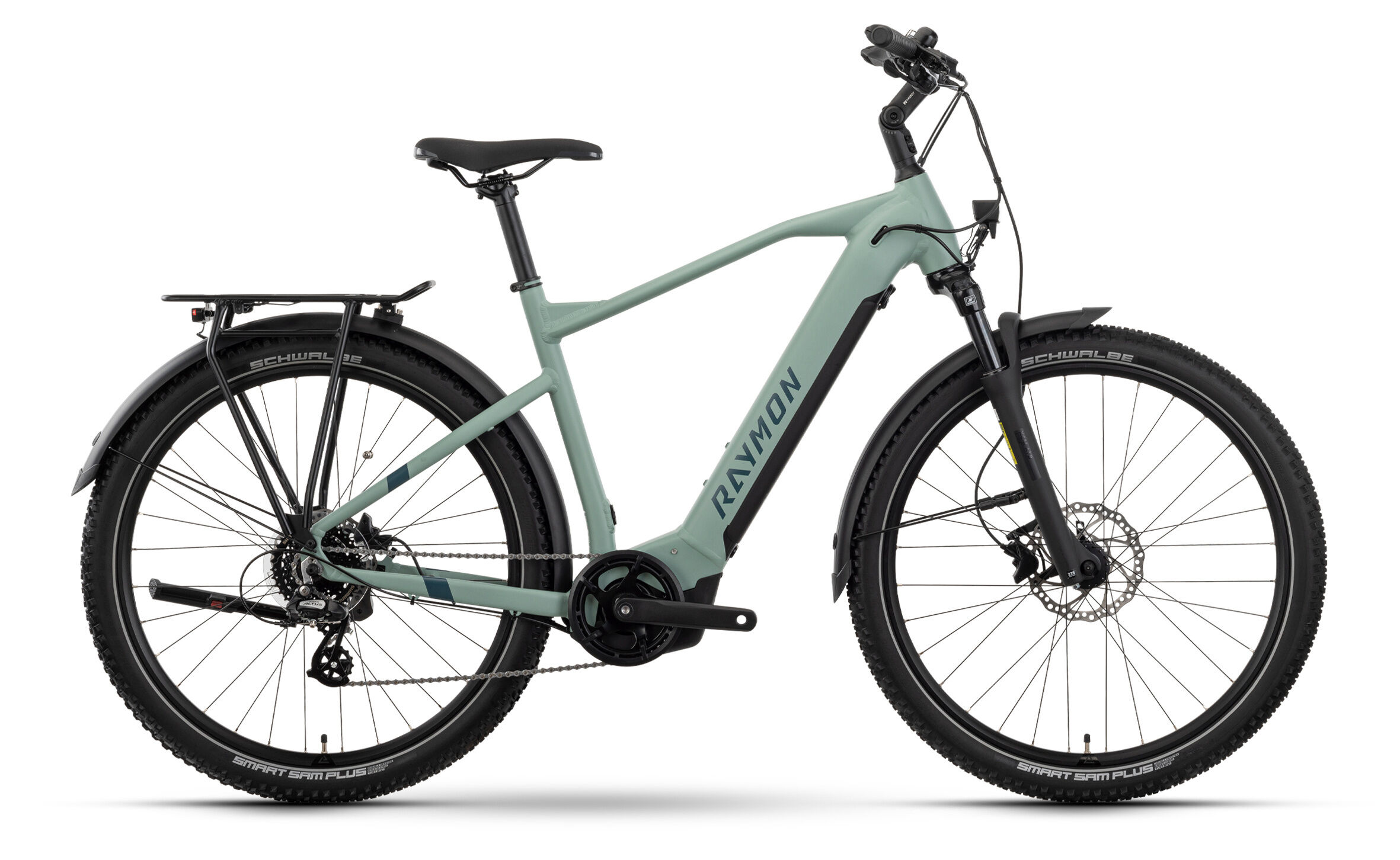 Schutzbleche: SKS PET | Bremssystem: Scheibenbremse, hydraulisch | Vorbau: Raymon 31.8, Ahead, adjustable | Griffe: Raymon Ergo, lock on | Pedale: Raymon, thermoplastic | Scheinwerfer: AXA Nxt 30, 30 lx | Gabel: SR Suntour XCM32-ATB, coil, 80 mm, tapered | Reifen: Schwalbe Advancer Hybrid, Reflex, 57-584, 27.5×2.25 | Bremse: Tektro Vela | Kette: KMC e8S | Steuersatz: FSA NO.55R/57SC/57B | Lenker: Raymon Riser 31,8 mm, Sweep: 15 °, Rise: 30 mm | Ständer: Raymon, KSA40, adjustable | Versandkosten: 2 | Laufradgröße hinten: 27,5 | Federung: stahlgefedert | Federweg (mm): 80 | Rahmenform: Diamant | Rücktritt/Freilauf: Freilauf | Maximales Gesamtgewicht (kg): 130 | Ganganzahl: 8 | Rahmenmaterial: Aluminium | Bremsscheibe vorne (mm): 180 | Schalthebel: Shimano SL-M315, Rapidfire Plus | Laufradgröße vorne : 27,5 | Motorposition: Mittelmotor | Motorhersteller: Yamaha | Schaltungstyp: Kettenschaltung | Gabelhersteller: SR Suntour | Schaltungshersteller: Shimano | Akkuposition: intube | Rahmengröße: L | Farbe: Hellgrün | Gepäckträger: Raymon, MIK, 25 kg | Sattelstütze: Raymon, 31,6 mm | Sattelklemmung: 34,9, hex screw | Motor: Yamaha PW-Series, 250/500 W, 70 Nm | Sattel: Raymon Tour classic | Akku: 630 Wh, 36 V | Kurbelsatz: Raymon, 38T, CG | Laufradsatz: Raymon VR24/DN619, 9×100/9×141 mm | Kassette: Shimano CS-HG31, 11-34T | Rückleuchte: AXA Juno E | Schaltung: Shimano Altus, RD-M310, 8-S | Akku-Kapazität (Wh): 630 | Motorleistung (Nm): 70 | Gewicht ca. (kg): 26.8 | Bremsscheibe hinten (mm): 160 | Hersteller-Farbe: Mint / Aqua / Cotton