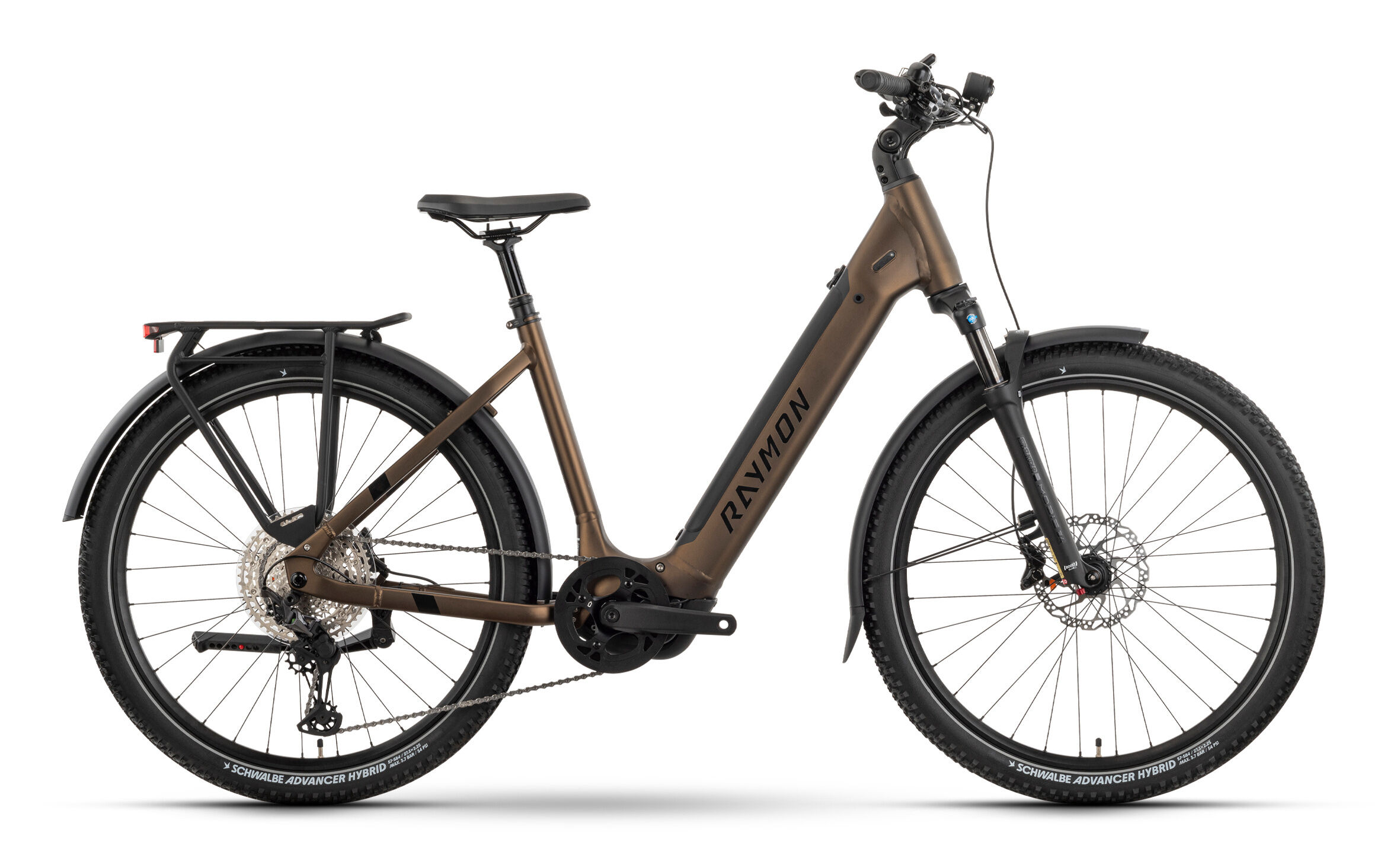 Versandkosten: 2 | Rücktritt/Freilauf: Freilauf | Rahmenmaterial: Aluminium | Bremsscheibe vorne (mm): 180 | Motorposition: Mittelmotor | Schaltungshersteller: Shimano | Akkuposition: intube | Rahmenform: Wave | Laufradgröße hinten: 27,5 | Laufradgröße vorne : 27,5 | Schaltungstyp: Kettenschaltung | Gabelhersteller: SR Suntour | Motorleistung (Nm): 85 | Maximales Gesamtgewicht (kg): 150 | Federung: luftgefedert | Display: Bosch Kiox 300 | Bremsscheibe hinten (mm): 180 | Ganganzahl: 12 | Rahmengröße: XL | Bremssystem: Scheibenbremse, hydraulisch | Bremse: Shimano BR-MT420 | Federweg (mm): 80 | Pedale: Raymon, Aluminium | Schaltung: Shimano Deore XT, RD-M8100, Shadow Plus, 12-S | Kassette: Shimano CS-M6100, 10-51T | Sattelstütze: Raymon, 34,9 mm, Dropper Post | Schalthebel: Shimano Deore, SL-M6100, Rapidfire Plus | Kette: Shimano CN-M6100 | Vorbau: Raymon 31.8, Ahead, adjustable | Griffe: Raymon Ergo, lock on | Sattel: Raymon MIMA VM fit | Sattelklemmung: 38,9, hex screw | Reifen: Schwalbe Advancer Hybrid, Reflex, 57-584, 27.5×2.25 | Steuersatz: FSA CR, Internal Cable Routing | Kurbelsatz: Raymon, Narrow Wide, 40T, CG | Lenker: Raymon Riser 31,8 mm, Sweep: 15 °, Rise: 30 mm | Ständer: Ursus MOOI, KSA40, adjustable | Gepäckträger: Raymon, MIK HD, 27 kg | Rückleuchte: Litemove TX3 Raymon | Schutzbleche: Curana Apollo | Motorhersteller: Yamaha | Motor: Yamaha PW-X3, 250/600 W, 85 Nm | Akku: 720 Wh, 36 V | Gabel: SR Suntour MOBIE34 Boost LO, air, 80 mm, tapered | Hersteller-Farbe: Tenmoku / Black | Laufradsatz: Raymon VR24/DT210, 15×110/12×148 mm | Scheinwerfer: Litemove SEC-150, 150 lx | Akku-Kapazität (Wh): 720 | Farbe: Bronze | Gewicht ca. (kg): 27.2