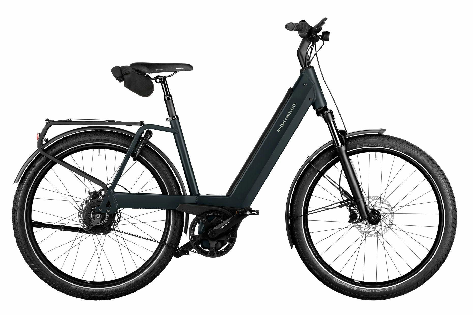 Versandkosten: 2 | Laufradgröße hinten: 27,5 | Motorleistung (Nm): 85 | Motorhersteller: Bosch | Rücktritt/Freilauf: Freilauf | Rahmenmaterial: Aluminium | Laufradgröße vorne : 27,5 | Motorposition: Mittelmotor | Federung: luftgefedert | Gabelhersteller: SR Suntour | Akku-Kapazität (Wh): 625 | Akkuposition: intube | Rahmenform: Wave | Klingel: Billy | Speichen: Sapim Leader 2,0 mm, Inox, black | Felgen: Rodi Tryp35 Evo 27,5″ | Sattelklemmung: Kalloy SC-201, 40,0 mm | Schloss: ABUS Shield X+ | Schutzbleche: SKS A69R | Motor: Bosch Performance Line CX (smart system) | Naben vorne: Novatec Disc 32H | Bremssystem: Scheibenbremse | Steuersatz: Acros Integration X, block lock | Gepäckträger: Riese & Müller, MIK | Kurbelsatz: FSA/Riese & Müller, 170 mm, 55T, for Gates drive belt CDX | Display: Bosch Intuvia 100 | Schalthebel: Enviolo grip shift Twist Display Pure, continuous | Kette: Gates drive belt CDX | Kassette: 24T, for Gates drive belt CDX | Schaltungstyp: Nabenschaltung | Schaltungshersteller: Enviolo | Ganganzahl: stufenlos | Schaltung: Enviolo Trekking | Naben hinten: Enviolo Trekking | Farbe: Anthrazit | Rahmengröße: 47 cm | Akku: Bosch PowerTube 625 Horizontal | Rückleuchte: Busch & Müller Toplight 2C LED | Ständer: Ursus R78 King 2 Kickstand | Scheinwerfer: Supernova mini 2 | Griffe: Herrmans Grips Line | Bremse: Magura MT4 | Hersteller-Farbe: dark grey matt | Kettenschutz: Riemenschutzring | Vorbau: Humpert ergotec Barracuda Evo, 90 mm, 20° | Reifen: Schwalbe Super Moto-X 62-584 Reflex | Lenker: Humpert ergotec Ergo XXL | Sattelstütze: Satori Elegance-LT OV | Sattel: Selle Royal Essenza Moderate | Gabel: Suntour XCR32 | Pedale: M-Wave Steady Flat