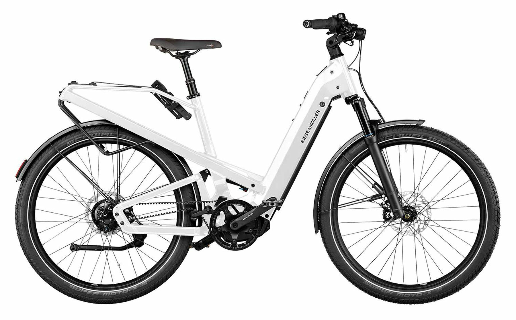 Bremssystem: Scheibenbremse, hydraulisch | Versandkosten: 2 | Motorhersteller: Bosch | Rücktritt/Freilauf: Freilauf | Federweg (mm): 100 | Rahmenmaterial: Aluminium | Motorposition: Mittelmotor | Federung: luftgefedert | Gabelhersteller: SR Suntour | Akkuposition: intube | Schaltungstyp: Nabenschaltung | Rahmenform: Wave | Laufradgröße hinten: 27,5 | Laufradgröße vorne : 27,5 | Farbe: Weiß | Akku-Kapazität (Wh): 625 | Schaltung: Enviolo | Schaltungshersteller: Enviolo | Ganganzahl: stufenlos | Display: Bosch Kiox 300 | Bremse: Magura MT4/MT5 | Speichen: Sapim Leader 2,0 mm, Inox, black | Felgen: Rodi Tryp35 Evo 27,5″ | Steuersatz: Acros Integration X, block lock | Scheinwerfer: Supernova M99 Mini Pro-25 | Akku: Bosch PowerTube 625 Horizontal | Klingel: Billy | Kettenschutz: Belt guard | Kurbelsatz: FSA/Riese & Müller, 170 mm, 55T, for Gates drive belt CDX | Reifen: Schwalbe Super Moto-X 62-584 Reflex | Rückleuchte: Supernova M99 integrated brake light | Naben hinten: Enviolo Trekking, Disc, 36H | Lenker: Satori R&M Custom, 25,4mm, Alu | Sattelstütze: Dropper Post X-Fusion Manic 70 | Ständer: Pletscher Comp 40 Flex Evo | Schalthebel: Enviolo grip shift Twist Display Pure, continuous | Gabel: SR Suntour Mobie 34, Air, tapered | Schutzbleche: SKS A69R | Kette: Gates drive belt CDX | Sattel: Selle Royal New Lookin Male Eco | Motor: Bosch Performance Line CX (smart system) | Naben vorne: Novatec Disc 32H | Kassette: 24T, for Gates drive belt CDX | Pedale: VP R&M Custom | Vorbau: Satori R&M Custom, cable integration, adjustable angle, Alu | Griffe: Ergon ergonomic | Hersteller-Farbe: pearl white | Dämpfer: Suntour RS-19 190×40 | Rahmengröße: 49 cm