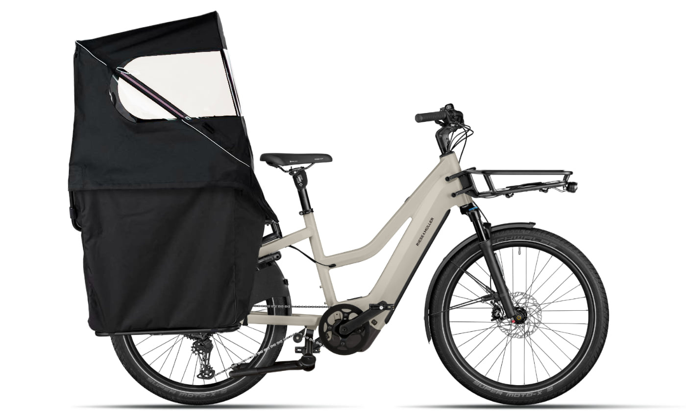 Riese & Müller Multicharger3 Mixte vario – desert/black matt Das Riese & Müller Multicharger3 Mixte vario kombiniert beeindruckende Transportkraft mit dem agilen Fahrverhalten eines klassischen E-Bikes. Dank des abgesenkten Oberrohrs gelingt das Auf- und Absteigen besonders komfortabel – ideal für Alltag, Familie und Freizeit. Mit dem Family Kit Plus wird es zum sicheren und vielseitigen E-Taxi für Kinder oder Lasten. Im Herzen arbeitet der Bosch Cargo Line Motor mit kräftigem Drehmoment und harmonischer Unterstützung, gespeist vom PowerTube Akku mit 750 Wh. Die stufenlose Enviolo Nabenschaltung mit Gates CDX Riemenantrieb sorgt für wartungsfreien Fahrkomfort und flüsterleises Gleiten – perfekt abgestimmt auf den urbanen und familiären Einsatz. Family Kit Plus – Sicherheit und Komfort für unterwegs Das Family Kit Plus verwandelt das Multicharger in ein komfortables E-Taxi für bis zu zwei Kinder (freigegeben bis max. 50 kg). Es besteht aus einer bequemen Sitzfläche mit Safety Bar, Rückenlehne und Sitzkissen sowie einem robusten Rundum-Wetterschutz. Der stabile Zweibeinständer sorgt für sicheren Stand beim Ein- und Aussteigen. Alternativ lässt sich auf dem Heck eine Kiste mit den Maßen 60 × 40 cm befestigen – ideal für Einkauf oder Gepäck. Der integrierte Sideloader dient als Fußstütze oder Transporthilfe für sperrige Gegenstände. Die hochwertigen Materialien und der bewusste Verzicht auf PVC machen das Family Kit Plus besonders langlebig und umweltfreundlich. Rahmen: Aluminiumrahmen, Mixte-Design mit abgesenktem Oberrohr Gabel: SR Suntour Mobie34, 80 mm Federweg Motor: Bosch Cargo Line, 25 km/h Akku: Bosch PowerTube 750 Wh Display: Bosch Kiox 500 Schaltung: Enviolo stufenlose Nabenschaltung Antrieb: Gates CDX Carbonriemen Bremsen: Magura MT4, hydraulische Scheibenbremsen Federgabel: SR Suntour Mobie34, 80 mm Sattelstütze: by.Schulz G.2 ST gefedert Scheinwerfer: Supernova Mini 3 Pro Rücklicht: Axa Juno Signal LED Reifen: Schwalbe Super Moto-X 62-559 Reflex Gewicht: ca. 31,1 kg Max. Systemgewicht: 175 kg Farbe: desert / black matt Inklusive: Family Kit Plus und RX Chip Mit seinem durchdachten Konzept, der starken Bosch-Motorisierung und dem hochwertigen Family Kit Plus ist das Multicharger3 Mixte vario der perfekte Begleiter für Familien, Pendler und Abenteurer, die Alltag und Freizeit souverän meistern wollen.