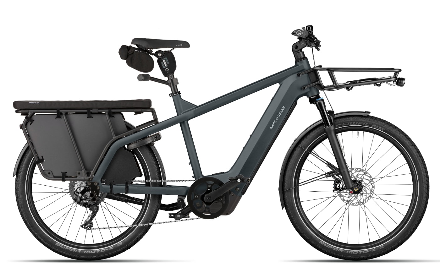 Riese & Müller Multicharger3 touring – utility grey/black matt Das Riese & Müller Multicharger3 touring kombiniert beeindruckende Transportleistung mit sportlichem Fahrverhalten und durchdachter Alltagstauglichkeit. Mit seinem robusten Diamantrahmen und den breiten 26-Zoll-Reifen fährt es sich so agil wie ein klassisches E-Bike – und transportiert dabei mühelos Kinder, Gepäck oder den Wochenendeinkauf. Ausgestattet mit dem starken Bosch Cargo Line Motor und dem PowerTube Akku mit 750 Wh bietet das Multicharger3 reichlich Reichweite und Drehmoment für jede Steigung. Die präzise Shimano 11-Gang-Schaltung sorgt für effizientes Schalten, während Magura MT4 Scheibenbremsen zuverlässige Kontrolle bei jeder Geschwindigkeit garantieren. Passenger Kit – sicherer Kindertransport leicht gemacht Das Passenger Kit verwandelt das Multicharger3 in ein praktisches E-Taxi für bis zu zwei Kinder (freigegeben bis max. 65 kg). Es umfasst eine bequeme Sitzfläche aus Schaumstoff, stabile Haltegriffe und klappbare Fußrasten. Der integrierte Zweibeinständer sorgt für sicheren Stand beim Ein- und Aussteigen, und der serienmäßige Speichenschutz schützt Füße und Gepäck zuverlässig. Rahmen: Aluminiumrahmen, Diamant-Design Gabel: SR Suntour Mobie34, 80 mm Federweg Motor: Bosch Cargo Line (Smart System), 25 km/h Akku: Bosch PowerTube 750 Wh Display: Bosch Kiox 500 Schaltung: Shimano CUES 11-Gang Kettenschaltung Antrieb: KMC X11 Kette Bremsen: Magura MT4, hydraulische Scheibenbremsen Sattelstütze: by.Schulz G.2 ST gefedert Sattel: Selle Royal Essenza Moderate Scheinwerfer: Supernova Mini 3 Pro Rücklicht: Axa Juno Signal LED Reifen: Schwalbe Super Moto-X 62-559 Reflex Schloss: ABUS Shield X+ mit Adaptor Chain 2.0 (130 cm) Gewicht: ca. 30,1 kg Max. Systemgewicht: 175 kg Farbe: utility grey / black matt Inklusive: Passenger Kit und RX Chip Das Multicharger3 touring ist die perfekte Wahl für alle, die ein vielseitiges, leistungsstarkes und familienfreundliches E-Bike suchen. Ob Kindertransport, Pendelstrecke oder Wochenendabenteuer – dieses Modell meistert jede Aufgabe mit Stil, Sicherheit und Komfort.