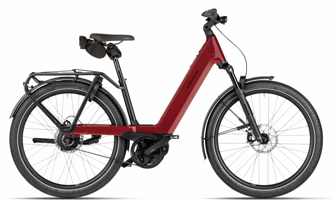 Riese und Müller Nevo5 vario – ruby red Das Riese und Müller Nevo5 vario in ruby red ist ein eleganter Tiefeinsteiger, der Komfort, Alltagstauglichkeit und hochwertige Technik ideal verbindet. Mit seinem harmonischen Fahrgefühl und der aufrechten Sitzposition ist es perfekt für tägliche Strecken und entspannte Touren. Komfortabel und alltagstauglich Die gefederte Gabel und die gefederte Sattelstütze sorgen auf unterschiedlichen Untergründen für ein angenehmes, sicheres Fahrerlebnis. Der tiefe Einstieg ermöglicht besonders leichtes Auf- und Absteigen, während die ergonomischen Griffe und der verstellbare Vorbau optimalen Komfort gewährleisten. Stufenlos und wartungsarm unterwegs Die Enviolo Nabenschaltung ermöglicht stufenloses Schalten ohne Gangstufen und passt sich fließend Ihrem Fahrstil an. Der langlebige Gates Riemenantrieb arbeitet leise, sauber und nahezu wartungsfrei. Starker Motor und große Reichweite Der Bosch Performance Line CX Motor bietet kraftvolle Unterstützung bis 25 km/h. In Kombination mit dem 800 Wh PowerTube Akku genießen Sie eine beeindruckende Reichweite für Alltag und längere Ausfahrten. Die Bedienung erfolgt über das moderne Bosch Kiox 500 Display. Hochwertige Ausstattung Supernova und Axa Beleuchtung, SKS Schutzbleche, pannensichere Schwalbe Super Moto-X Reifen, ein robuster MIK-Gepäckträger und ein integriertes Schloss runden die hochwertige Gesamtausstattung ab. Stufenlose Enviolo Nabenschaltung Bosch Performance Line CX Motor bis 25 km/h 800 Wh PowerTube Akku für hohe Reichweite Gates CDX Riemenantrieb Gefederte Gabel und gefederte Sattelstütze Supernova Frontlicht und Axa Rücklicht Komfortabler Tiefeinstieg und verstellbarer Vorbau Das Riese und Müller Nevo5 vario überzeugt mit starkem Komfort, zuverlässiger Technik und moderner Optik – ideal für Alltag, Touren und entspanntes Fahrvergnügen. Video: Das neue Riese & Müller Nevo5