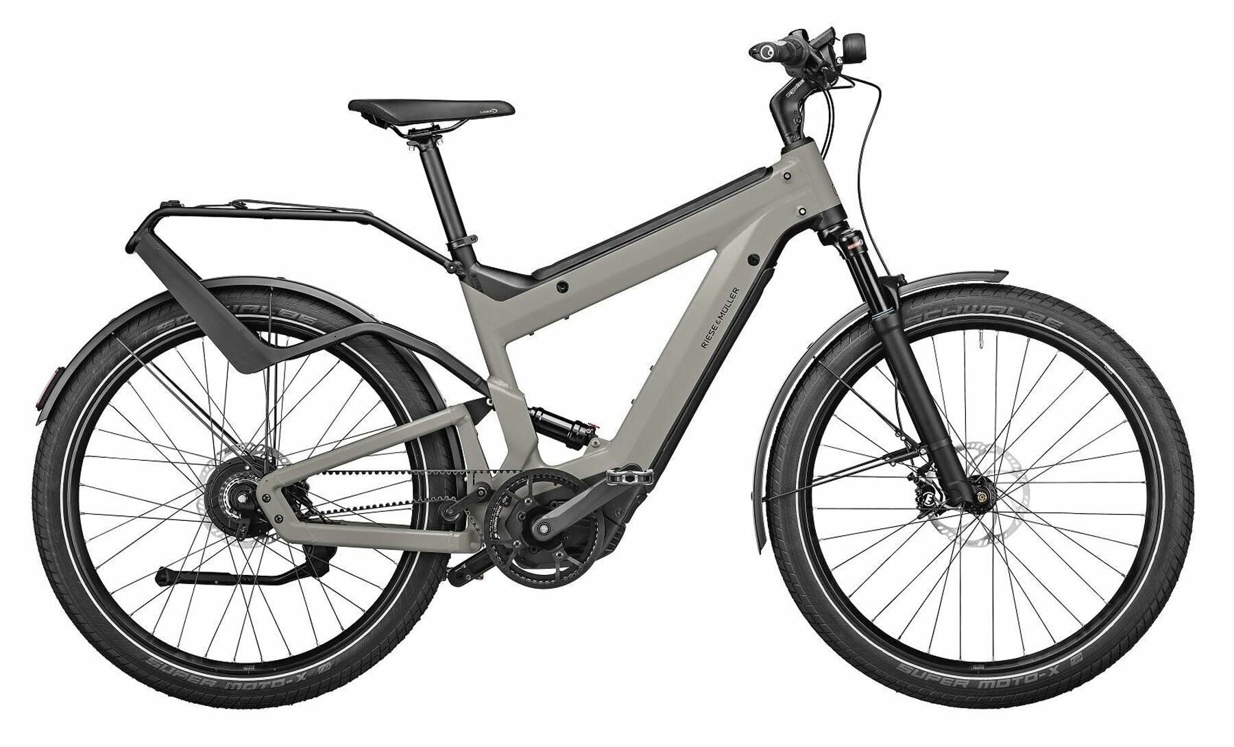 Bremssystem: Scheibenbremse, hydraulisch | Versandkosten: 2 | Rahmenform: Diamant | Rücktritt/Freilauf: Freilauf | Motorposition: Mittelmotor | Federung: luftgefedert | Akkuposition: intube | Bremse: Magura MT4/MT5 | Speichen: Sapim Leader 2,0 mm, Inox, black | Felgen: Rodi Tryp35 Evo 27,5″ | Laufradgröße hinten: 27,5 | Motorhersteller: Bosch | Motor: Bosch Performance Line CX (Gen4) | Rahmenmaterial: Aluminium | Laufradgröße vorne : 27,5 | Farbe: Grau | Steuersatz: Acros Integration X, block lock | Scheinwerfer: Supernova M99 Mini Pro-25 | Klingel: Billy | Kettenschutz: Belt guard | Kurbelsatz: FSA/Riese & Müller, 170 mm, 55T, for Gates drive belt CDX | Rückleuchte: Supernova M99 integrated brake light | Ständer: Pletscher Comp 40 Flex Evo | Schalthebel: Enviolo grip shift Twist Display Pure, continuous | Gabel: SR Suntour Mobie 34, Air, tapered | Schaltung: Enviolo | Kette: Gates drive belt CDX | Sattel: Selle Royal New Lookin Male Eco | Kassette: 24T, for Gates drive belt CDX | Pedale: VP R&M Custom | Griffe: Ergon ergonomic | Schaltungstyp: Nabenschaltung | Gabelhersteller: SR Suntour | Schaltungshersteller: Enviolo | Ganganzahl: stufenlos | Dämpfer: Suntour RS-19 190×40 | Federweg (mm): 100 | Reifen: Schwalbe Johnny Watts 365 60-584 | Akku: Bosch PowerTube 500 Vertical + Bosch PowerTube 625 Vertical | Lenker: Humpert ergotec Ergo XXL, 31,8 mm | Naben vorne: Novatec 32H | Akku-Kapazität (Wh): 1125 | Schutzbleche: SKS | Gepäckträger: Riese & Müller | Display: Bosch Intuvia | Hersteller-Farbe: warm silver matt | Naben hinten: Enviolo Trekking | Rahmengröße: 47 cm