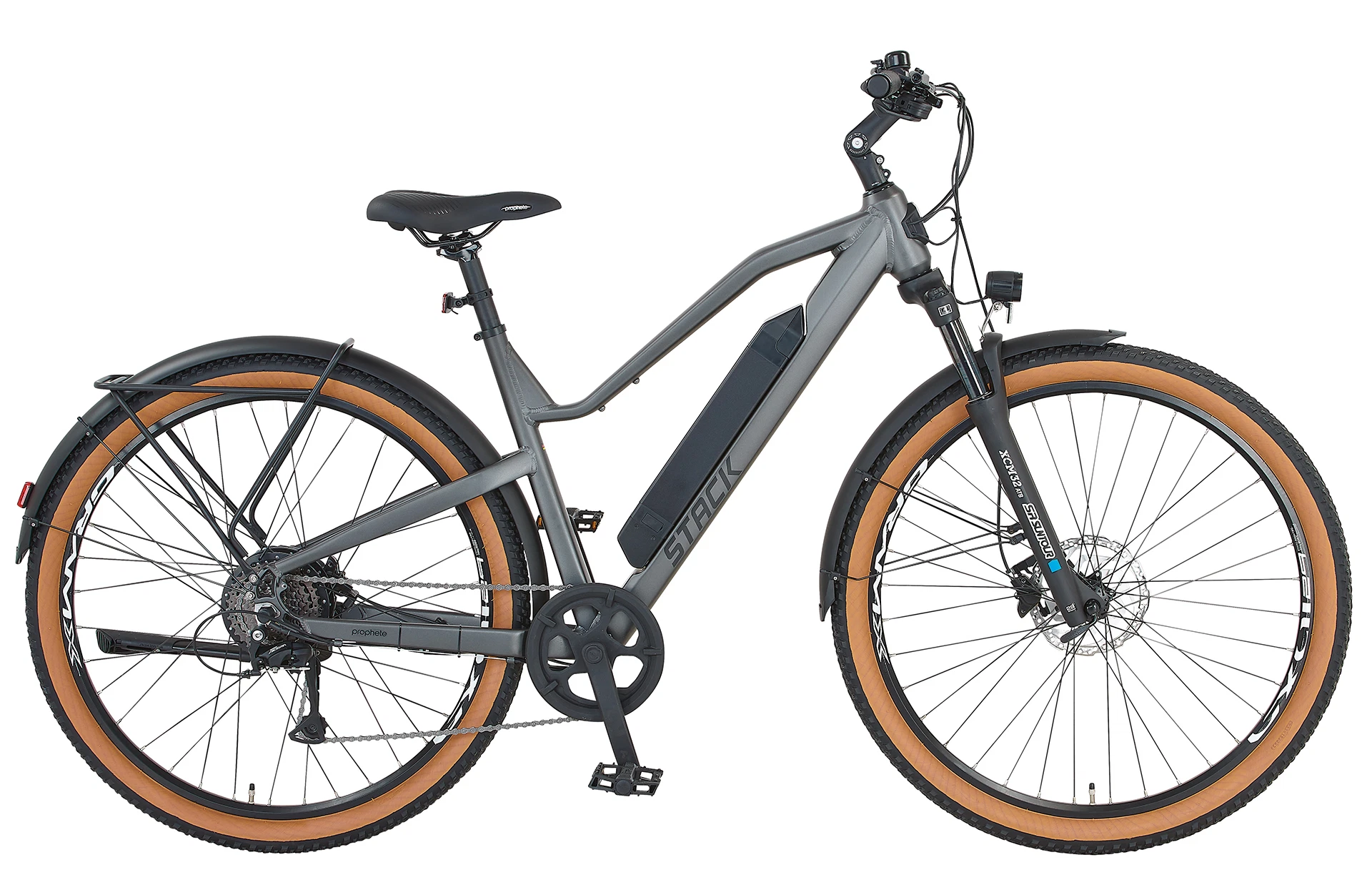 Volle Power auf dem Prophete E-SUV E-Bike als B-Ware in so gut wie jedem Gelände. Das stabile Bike kommt mit seinen 29“ Reifen und einer Rahmenhöhe von 48 cm. Ein hochwertiger Hardtail ATB (All Terrain Bike) Rahmen aus Aluminium bildet die Basis für das kraftvolle E-SUV von Prophete. Der halbintegrierte 36 Volt Akku mit 11,6 Ah (418 Wh) fügt sich nahtlos in das Design ein und versorgt den Heckmotor für bis zu 120 km mit Energie (je nach Fahrweise und Beschaffenheit des Untergrundes). Die Kenda Kadre Reflexbereifung greift dank der 250 Watt Motorunterstützung zuverlässig in den Boden und das maximale Drehmoment von 40 Nm schiebt Sie bei der Fahrt ordentlich an.