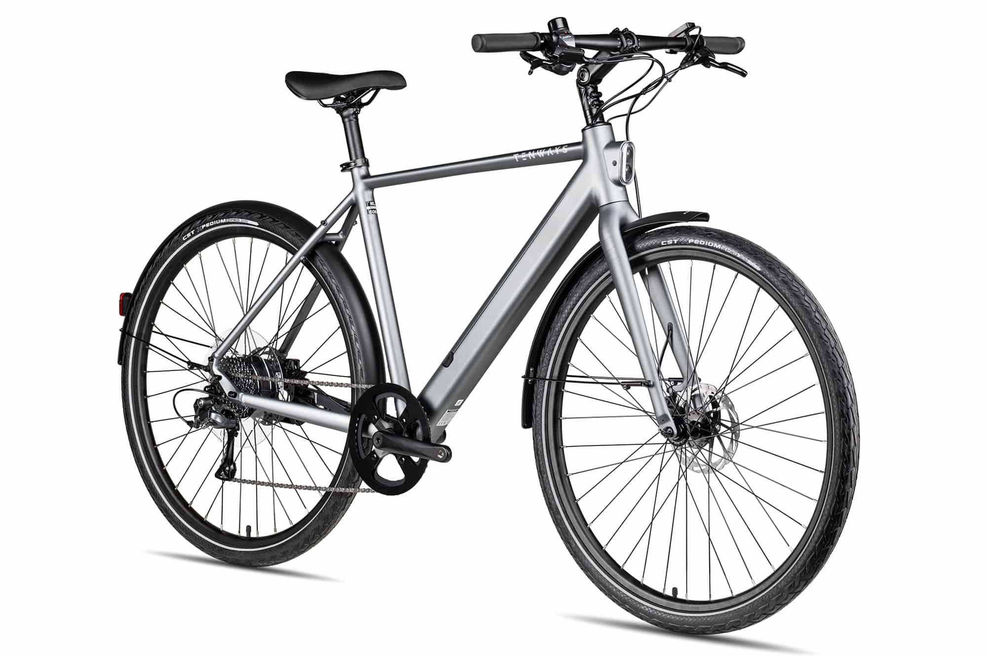 Wer ein leichtes und agiles City-E-Bike mit klarer Formensprache sucht, trifft mit dem Tenways CGO600 Plus die richtige Wahl., Ein 360 Wh Akku, harmonisch ins Rahmendesign integriert, sowie ein kompaktes Farbdisplay am Lenker runden das pure Konzept ab., Für sportive Schaltmanöver und gute Bremsleistung, ist das CGO600 PLUS mit einer 8-Gang Shimano Claris Schaltung und Tektro Scheibenbremsen ausgestattet., So bringt dich dieses besonders leichte E-Bike ohne Umwege auf Tempo., Für ein müheloses Fahrgefühl im Stadtverkehr setzt das Tenways CGO600 PLUS auf einen direkt an der Hinterachse positionierten, hauseigenen Nabenmotor mit bis zu 45 Nm Drehmoment., Sportiv, stilvoll und nur 18 kg leicht: Das Tenways CGO600 PLUS City-E-Bike mit Shimano Rennradschaltung.